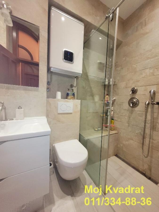Stari grad, Trg Nikole Pašića - Nušićeva 2.0, 47m2 (terasa 4m2), 3/5, EG, lift, telefon, interfon Izuzetna prilika u samom srcu Beograda – pešačka zona Nušićeve ulice, nadomak Terazija. Autentičan salonski, luksuzan dvosoban stan na trećem spratu uredne zgrade sa liftom. Dvostrano je orijentisan, sa obiljem prirodne svetlosti, a impozantna visina plafona od 3,15 m dodatno naglašava osećaj prostranosti i elegancije. Stan je kompletno renoviran po visokim standardima, uz očuvanje karaktera salonske gradnje. Tom prilikom zamenjene su elektro i vodovodne instalacije, ugrađena kvalitetna aluminijum-drvo stolarija, trešnjin parket, etažno grejanje, kao i klima-uređaj u dnevnoj sobi. Kupatilo i toalet imaju prirodnu ventilaciju. Funkcionalna struktura obuhvata: predsoblje sa garderoberom, kuhinju sa trpezarijom, prostran dnevni boravak sa izlazom na veliku terasu, hodnik, spavaću sobu, kupatilo i zaseban toalet. Stan se prodaje potpuno namešten i opremljen, sa vrhunskim dizajnerskim nameštajem i tehnikom (uvoz iz Francuske), spreman za useljenje bez ikakvih dodatnih ulaganja. Zahvaljujući prestižnoj lokaciji i izuzetnoj strukturi, stan je idealan kako za luksuzno stanovanje, tako i za izdavanje (dugoročno ili kratkoročno), kao i za poslovnu namenu. Stan se nalazi na lokaciji koja dugoročno zadržava vrednost i predstavlja siguran izbor kako za kvalitetan život, tako i za izuzetno isplativu investiciju. Uknjižen na 43m2 korisne površine, stvarna merena površina iznosi 47m2. Agencijska provizija 2% Agent: Sava Vuletić 062/14-57-616 (licenca br. 3573)