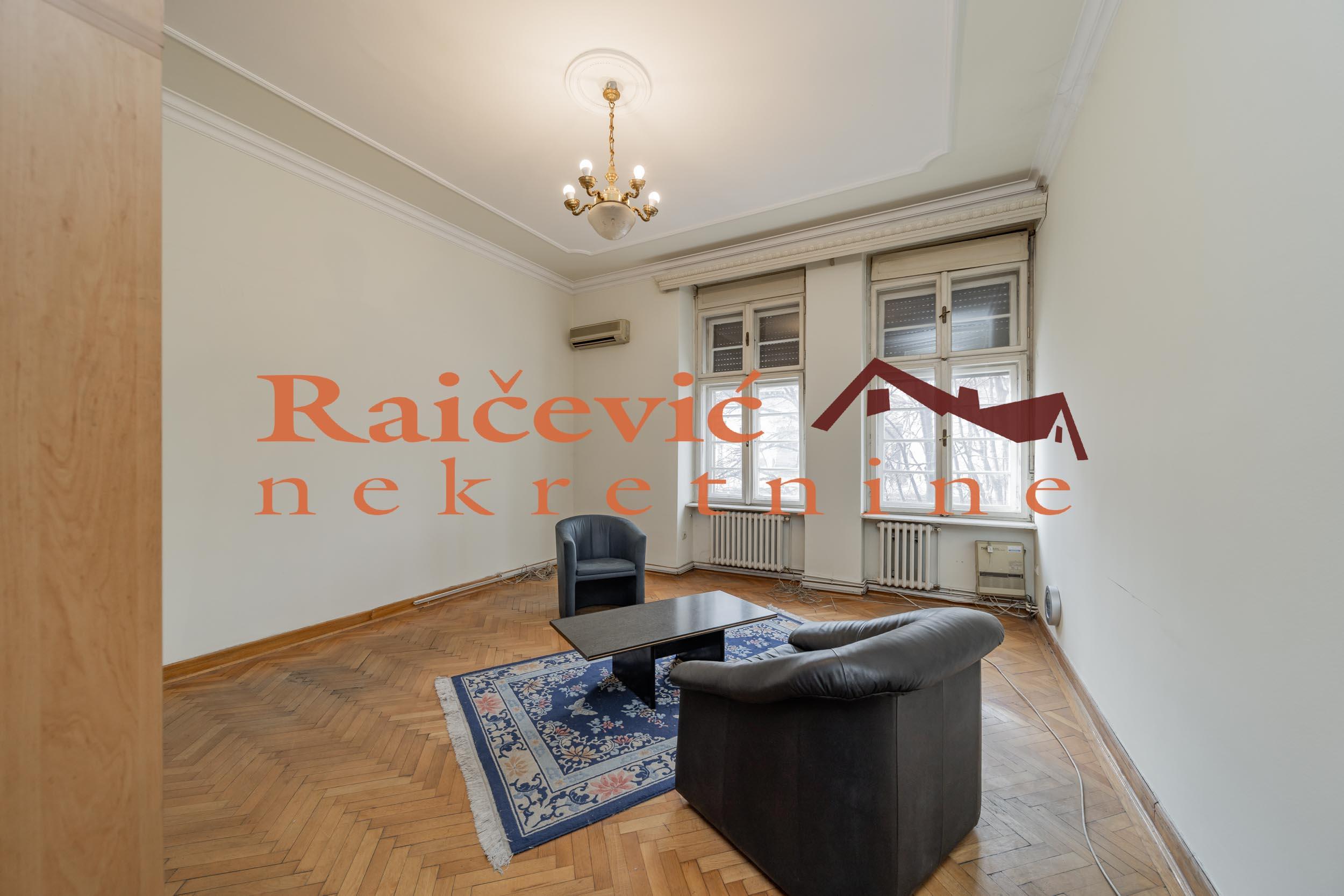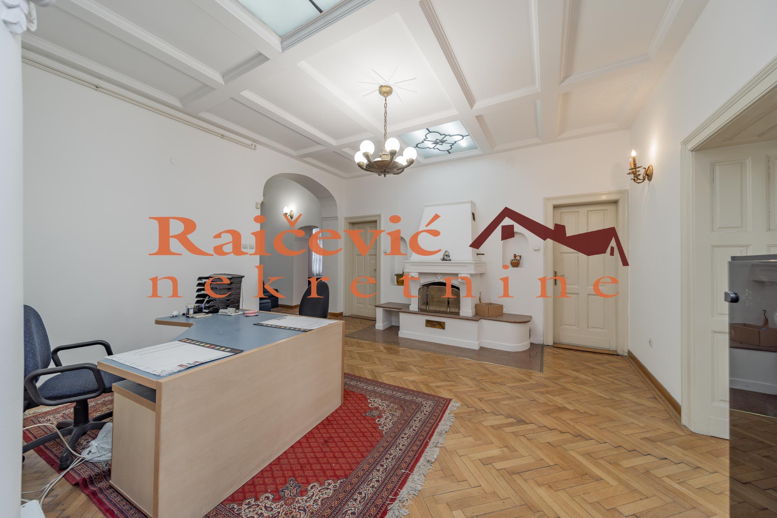 SVI NASI KUPCI DOBIJAJU VREDAN POKLON! Centar, Kneza Milosa, 6.0, 203 m2 sa 3 mala balkona, I od IV sprata, cg, lift, interfon, video nadzor, ktv, internet, klima, odmah useljiv, renoviran, kamin, uknjizen na 185 m2, salonac, starogradnja iz 1939. godine. Impozantan salonac u rezidencijalnom delu centra Beograda, pored ambasada, u luksuznoj, elegantnoj i kvalitetno gradjenoj vili iz 1939. godine, sa ornamentima i sa statusom kulturnog dobra. Poseduje izuzetno reprezentativan mermerni ulaz. Vrhunski materijali, mermer, kamen, kamin koji je u funkciji, keramika i dekorativne tavanice sa luksuznim lusterima i lampama. Visina tavanica je 3.37 m. Uknjizen je na 185 m2, a mereno ima 203 m2. Deljiv je u 2 poslovne ili stambene jedinice sa 2 zasebna ulaza kako je i nekada funkcionisao. Gleda na sve 4 strane sveta, odlicnog je rasporeda i izuzetne osvetljenosti zbog velikih prozora. Poseduje 2 kupatila. Zbog ekskluzivne lokacije u centru grada, idealan je za ambasade, rezidencije, korporacije, strana predstavnistva, kao i za stanovanje. Nesvakidasnje vredna nekretnina! Cena 855 000 evra. Kupite ovu nekretninu preko agencije Raicevic nekretnine i POKLANJAMO VAM idejno resenje dizajna enterijera! Pozovite nas za vise informacija. Agencijska provizija koju placa KUPAC iznosi 2 % od dogovorene kupoprodajne cene. Raicevic nekretnine 062/1889995