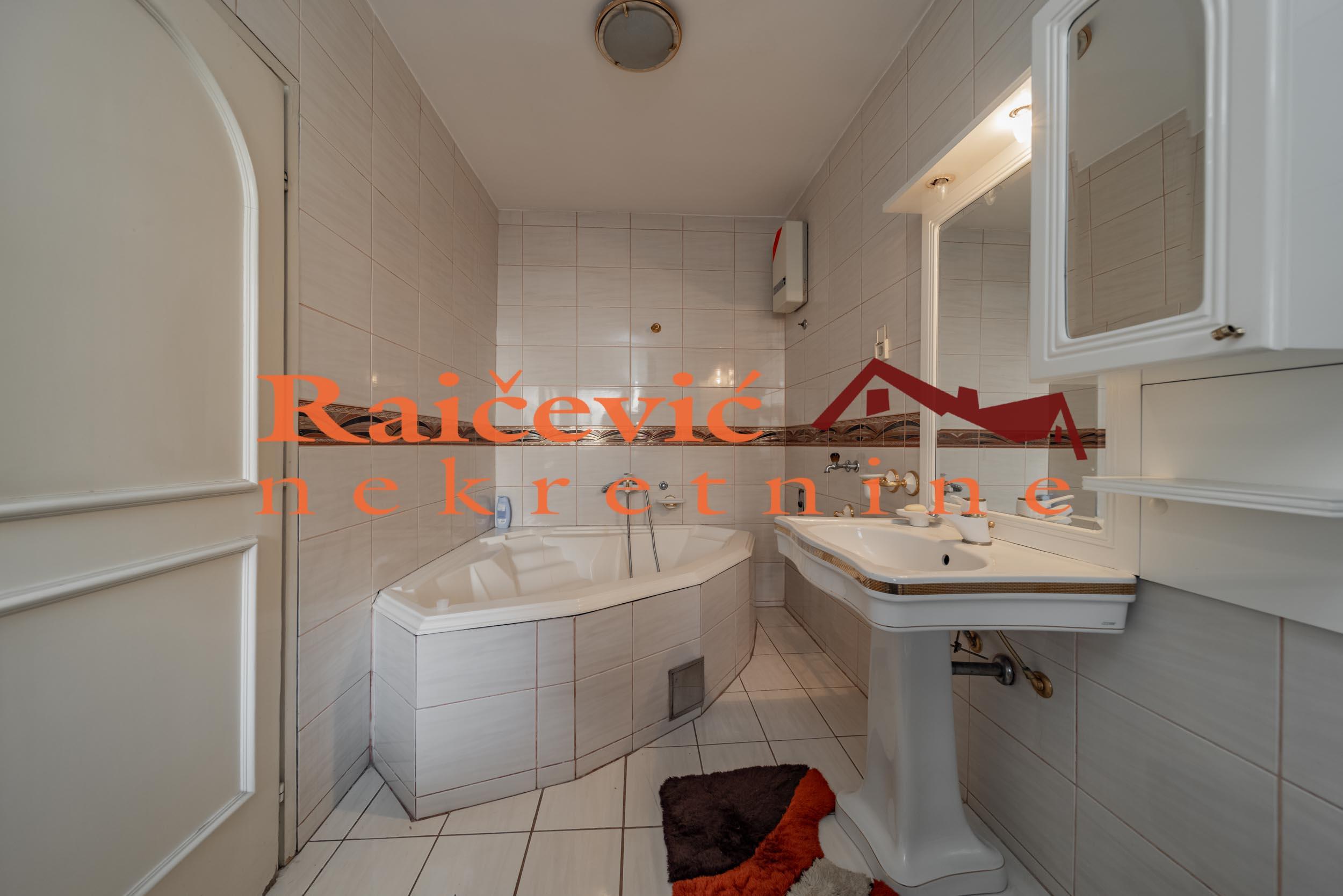 SVI NASI KUPCI DOBIJAJU VREDAN POKLON! Brace Jerkovic, Milovana Jankovica, 6.0 kuca od 273 m2, 2 lodje (12 m2 i 7 m2) i 2 manje terase, na placu od 0.74 ari, VPR + I + II + PTK, toplotne pumpe, interfon, brzo useljiva, uknjizena na 156 m2 korisne povrsine, uknjizena garaza od 18 m2, zidana 1984. godine. Kuca je u nizu, generalica, u lepoj i mirnoj ulici u Brace Jerkovic naselju, nedaleko od Zaplanjske i TC Stadion. VPR: predsoblje, kuhinja, dnevni boravak, mali toalet i vrata koja vode u donji nivo (garaza od 18 m2, pomocne prostorije i jedna garsonjera od 17.47 m2 koja nije usla u knjizni deo kvadrature, ali je izvorni deo kuce). I sprat: 2 spavace sobe, veliko kupatilo i jedna terasa. II sprat: velika spavaca soba, velika lodja (oko 12 m2) i veliko kupatilo, kao i spiralno stepeniste za gornje potkrovlje koje je naknadno uradjeno sa projektom i dokumentacijom predato na ozakonjenje. PTK: veliki jedinstven proctor sa izvedenom strujom, vodom i odvodom za mini kuhinju i vec ga je uz manje dopune moguce koristiti. Njegova povrsina je po projektu 42.12 m2. U garazi od 18 m2, koja je i uknjizena, ima dovoljno visine i sirine za vece modele automobila. Pored nje se nalazi pomocna prostorija (ostava), hodnik za garsonjeru koja ima izlaz i na zadnje dvoriste i cija je povrsina 17.74 m2. U dvorisnom delu garsonjera izlazi se na poplocanu veliku terasu i travnjak. Pored gipsanih radova, kupatila opremljenih modernom, skupocenom i elegantnom keramikom i sanitarijama, sa drvo-aluminijumskom stolarijom, rasporedom i funkcionalnoscu prostorija ova kuca spada u luksuzne kuce koje ne zastarevaju, pogotovo sto su i gradjevinski i estetski ostale potpuno nepromenjene vremenom, zbog kvalitetne fasade koja je delimicno od fasadne opeke a delimicno od kamena. Cena 420 000 evra. Kupite ovu nekretninu preko agencije Raicevic nekretnine i POKLANJAMO VAM idejno resenje dizajna enterijera! Pozovite nas za vise informacija. Agencijska provizija koju placa KUPAC iznosi 2 % od dogovorene kupoprodajne cene. Raicevic nekretnine 064/1959991