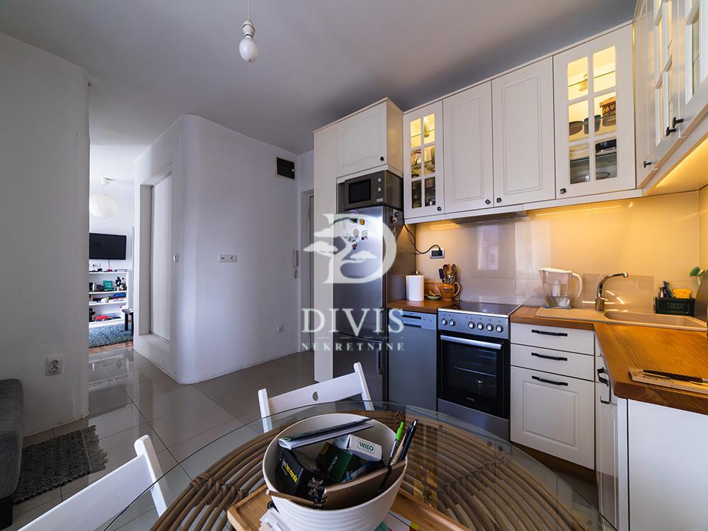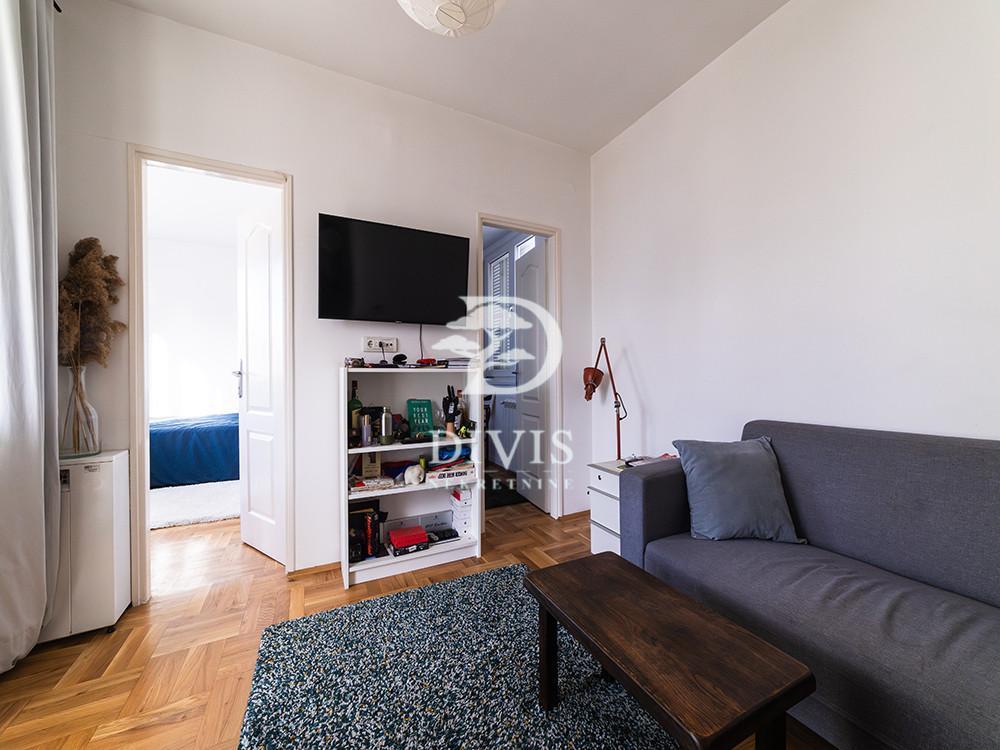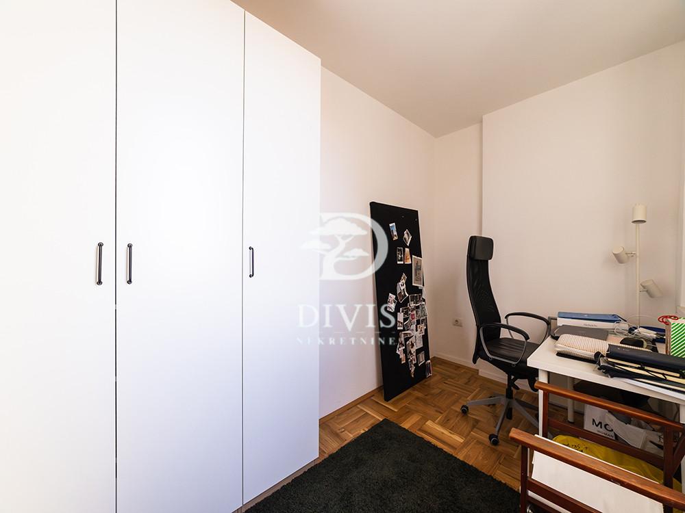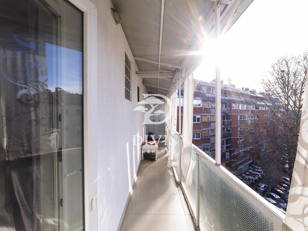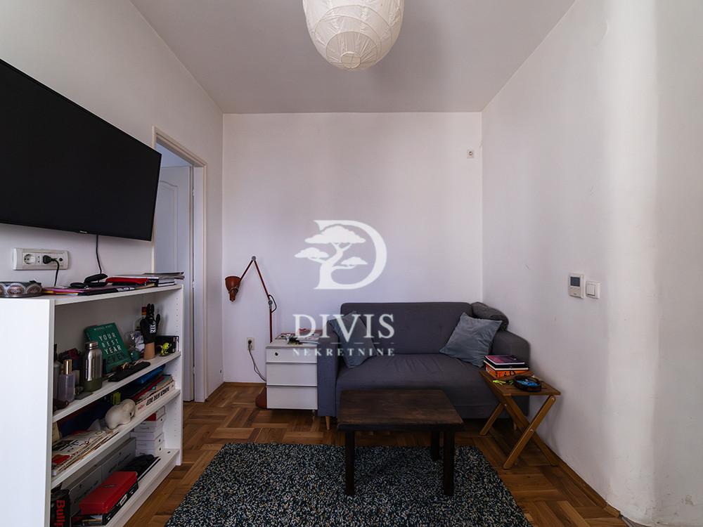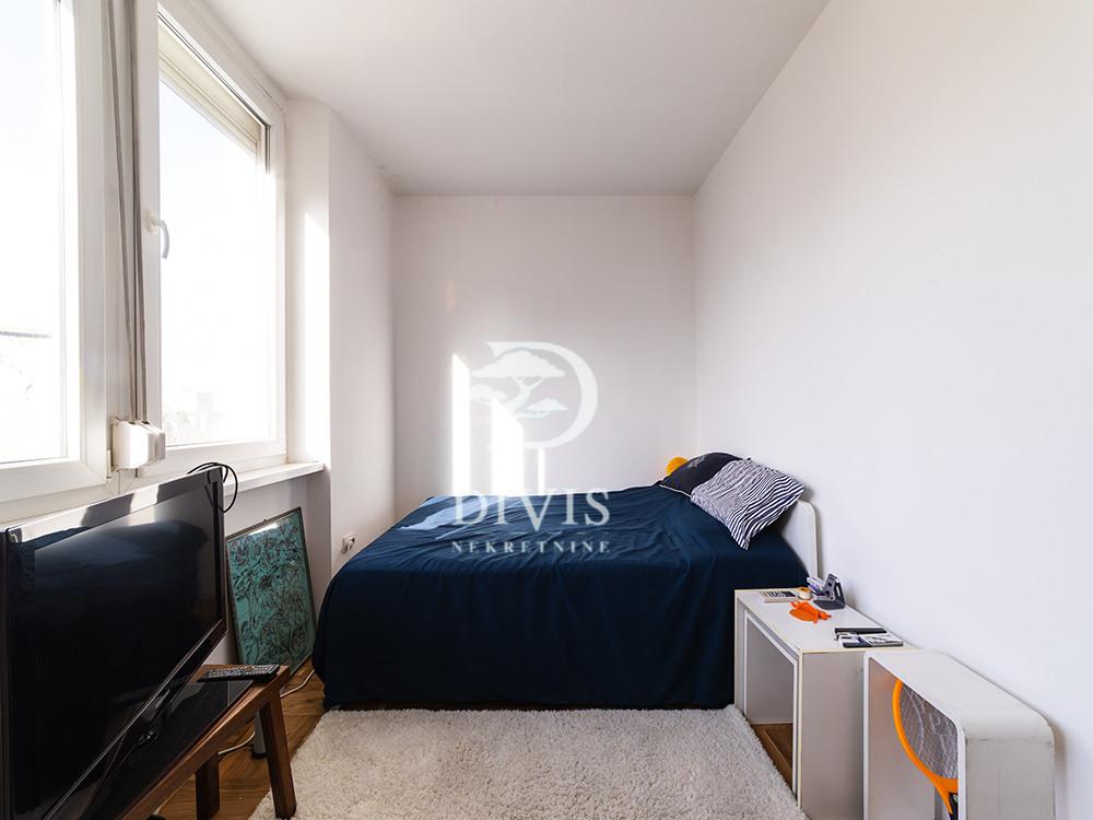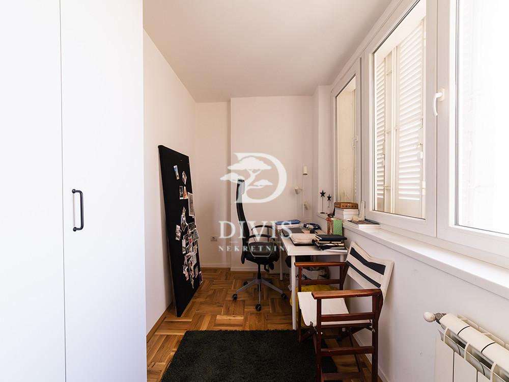 Prodajemo renoviran stan u Mileševskoj ulici, u neposrednoj blizini Crvenog krsta. Nalazi se na petom spratu zgrade sa malim brojem stanova, urednog i redovno održavanog ulaza. Stan se sastoji od kuhinjsko-trperijskog dela, dnevnog boravka, dve spavaće sobe, kupatila sa prirodnom ventilacijom, terase na koju je omogućen pristup iz trpezarije i dnevne sobe, kao i velike krovne terase od 25m2. Stan je izuzetno osvetljen tokom celog dana. Dvostrano je orijentisan, pretežno prema unutrašnjem dvorištu sa otvorenim pogledom na zelenilo. Prilikom renoviranja urađena je spoljna i unutrašnja termoizolacija, pažljivo je projektovan, korišćeni su kvalitetni materijali poput hrastovog parketa, Bosal sigurnosnih vrata, kvalitetne ugradne tehnike. Prodaje se namešten. Ugrađena su dva inverter klima uređaja, a omogućeno je i etažno grejanje. U dvosrištu zgrade obezbeđen je parking sa rampom za stanare zgrade. Poseduje pripadajući podrum veličine 10m2. Uknjižen je na 42m2, što čini njegovu grejnu površinu, dok mereno ima 51m2. Posrednička naknada se obračunava u skladu sa Opštim uslovima poslovanja agencije DIVIS NEKRETNINE DOO.