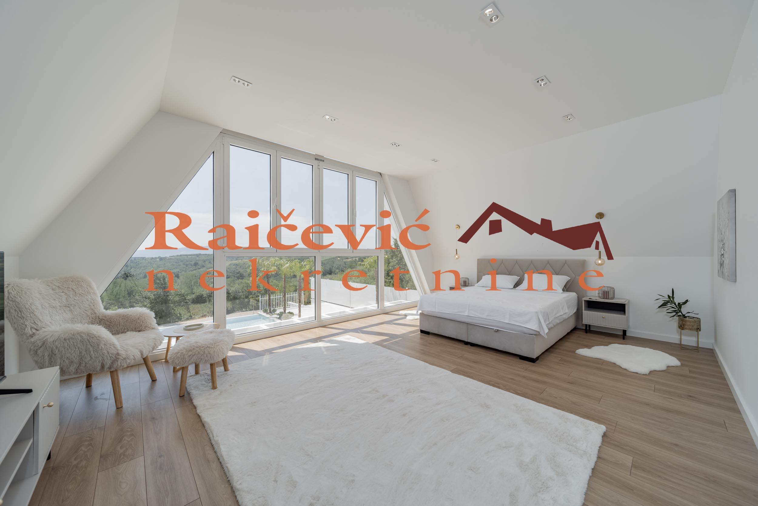 SVI NASI KUPCI DOBIJAJU VREDAN POKLON! LUX! Sopot, Mali Pozarevac, 5.0 kuca od 359.85 m2, prostrana terasa, na placu od 28.83 ara, PR + I, toplotne pumpe (podno grejanje), tel, bez lifta, interfon, video nadzor, bazen, letnjikovac od 63.25 m2 sa kupatilom i ostavom, brzo useljiva, gradjevinska dozvola, parking za 32 vozila, novogradnja iz 2025. godine. Smestena u predivnom okruzenju, u oazi mira i tisine pitome i valovite Sumadije, ova ocaravajuca i luksuzna kuca predstavlja pravi biser u neposrednoj blizini Beograda. Izvanredna arhitektonska resenja i besprekorno projektovani enterijeri ovu kucu svrstavaju u najvisi nivo estetike koji zadovoljava svetske standarde u gradnji i projektovanju zivotnog prostora. Kombinacija velikih staklenih povrsina i svetlih i modernih materijala daju posebnu draz izuzetno prostranoj dnevnoj sobi iz koje se pruza prelep pogled na uredjeno dvoriste, veliki prelivni bazen sa tri segmenta i toplotnom pumpom i na nepregledno zelenilo Sumadije. Cetiri sjajno opremljene spavace sobe i cetiri moderna kupatila obezbedjuju komforan zivotni prostor ili daju mogucnost za iznajmljivanje ove vile velikom broju gostiju. Prostorije: PR: predsoblje, veliki dnevni boravak sa kuhinjom i trpezarijom, kupatilo, sala za proslave sa toaletom za goste. Iz prizemlja se izlazi na prelepo dvoriste i bazen sa mobilijarom. I sprat: 3 spavace sobe i 2 kupatila. Kuca ima vrhunsku izolaciju, najkvalitetniju savremenu aluminijumsku stolariju i skrivena "Integra" sobna vrata. Podovi u prizemlju su uradjeni u modernoj, izdrzljivoj i veoma privlacnoj epoksidnoj smoli, a na spratu se nalazi parket vrhunskog kvaliteta. Podno grejanje je ukombinovano sa parapetnim fan coil sistemom distribucije postavljenim na toplotne pumpe, koji obezbedjuje podesavanje temperature u svakoj prostoriji posebno. Uzivanje u ovoj besprekornoj vili upotpunjuje bazen koji se sastoji iz tri segmenta: plitki, glavni i prelivni. Dimenzije bazena su 10 x 9.5 m. Na placu povrsine 28.83 ara nalaze se pazljivo projektovane zelene povrsine obogacene egzoticnim biljkama i mnostvom cveca, kao i letnjikovac povrsine 63.25 m2 sa kupatilom i ostavom. Ova besprekorna, luksuzna i vrhunski opremljena kuca sa energetskim pasosem predstavlja savrsen izbor za bezbrizni zivot u neposrednoj blizini Beograda ili za najbolju poslovnu investiciju sa maksimalnim povratom ulozenih sredstava. Kuca je moguce iznajmiti na dnevnom nivou, a u zavisnosti od toga kada se iznajmljuje i da li se iznajmljuje sa ili bez sale za proslave, cena se krece od 800 do 1600 evra. Cena 759 000 evra. Kupite ovu nekretninu preko agencije Raicevic nekretnine i POKLANJAMO VAM idejno resenje dizajna enterijera! Pozovite nas za vise informacija. Specijalna ponuda - BEZ PROVIZIJE KUPCA! Raicevic nekretnine 065/452-77-77
