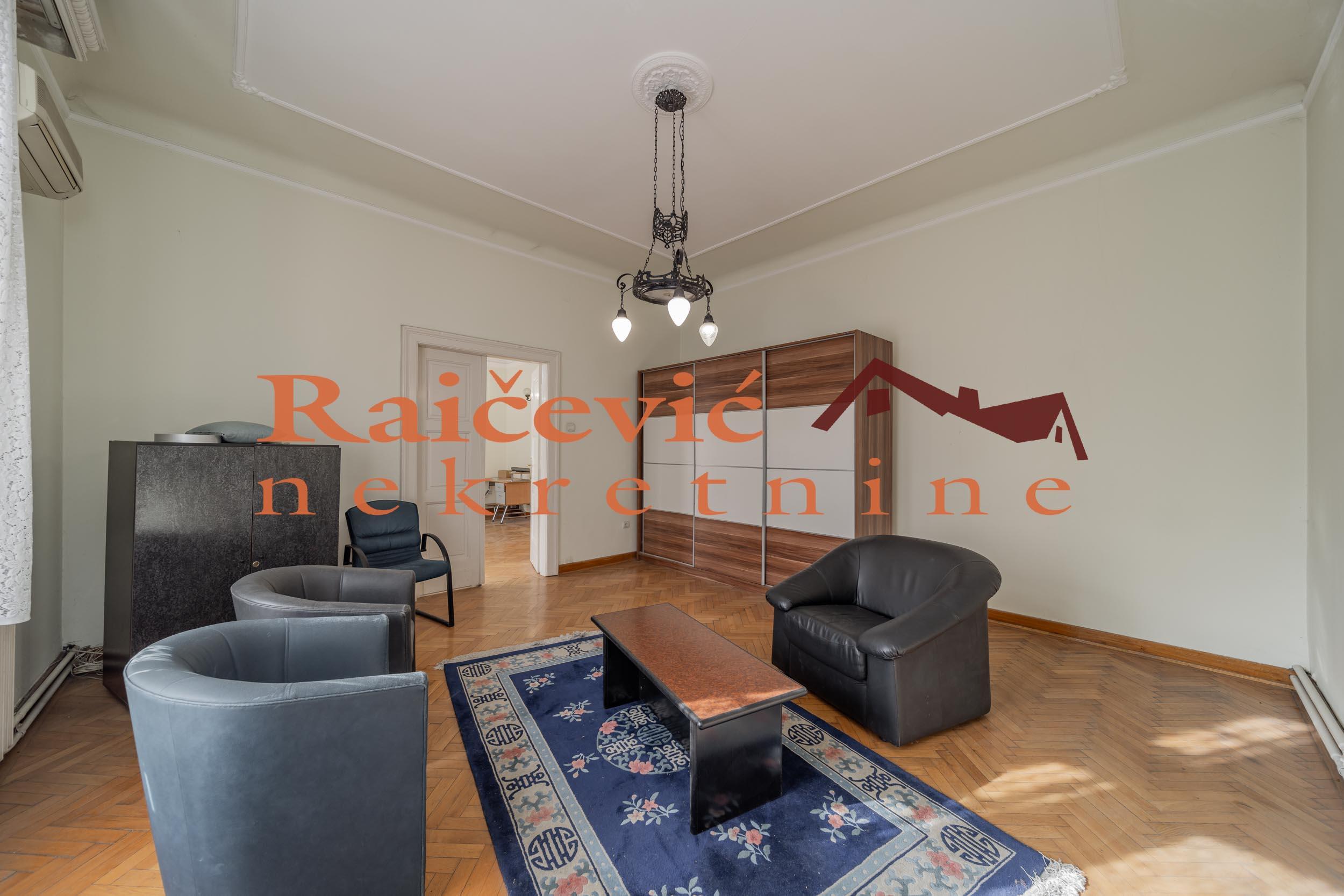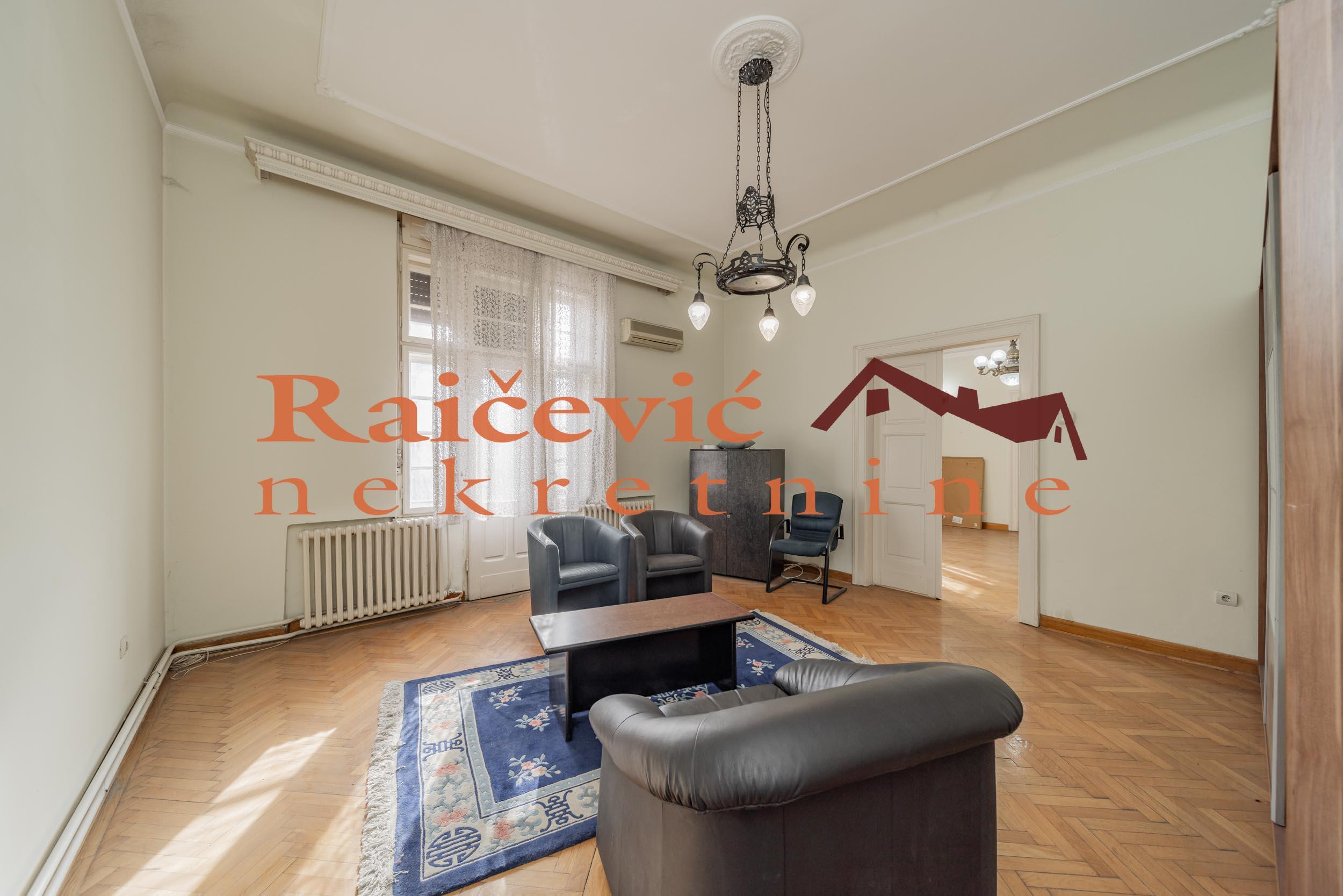 SVI NASI KUPCI DOBIJAJU VREDAN POKLON! Centar, Kneza Milosa, 6.0, 203 m2 sa 3 mala balkona, I od IV sprata, cg, lift, interfon, video nadzor, ktv, internet, klima, odmah useljiv, renoviran, kamin, uknjizen na 185 m2, salonac, starogradnja iz 1939. godine. Impozantan salonac u rezidencijalnom delu centra Beograda, pored ambasada, u luksuznoj, elegantnoj i kvalitetno gradjenoj vili iz 1939. godine, sa ornamentima i sa statusom kulturnog dobra. Poseduje izuzetno reprezentativan mermerni ulaz. Vrhunski materijali, mermer, kamen, kamin koji je u funkciji, keramika i dekorativne tavanice sa luksuznim lusterima i lampama. Visina tavanica je 3.37 m. Uknjizen je na 185 m2, a mereno ima 203 m2. Deljiv je u 2 poslovne ili stambene jedinice sa 2 zasebna ulaza kako je i nekada funkcionisao. Gleda na sve 4 strane sveta, odlicnog je rasporeda i izuzetne osvetljenosti zbog velikih prozora. Poseduje 2 kupatila. Zbog ekskluzivne lokacije u centru grada, idealan je za ambasade, rezidencije, korporacije, strana predstavnistva, kao i za stanovanje. Nesvakidasnje vredna nekretnina! Cena 855 000 evra. Kupite ovu nekretninu preko agencije Raicevic nekretnine i POKLANJAMO VAM idejno resenje dizajna enterijera! Pozovite nas za vise informacija. Agencijska provizija koju placa KUPAC iznosi 2 % od dogovorene kupoprodajne cene. Raicevic nekretnine 062/1889995