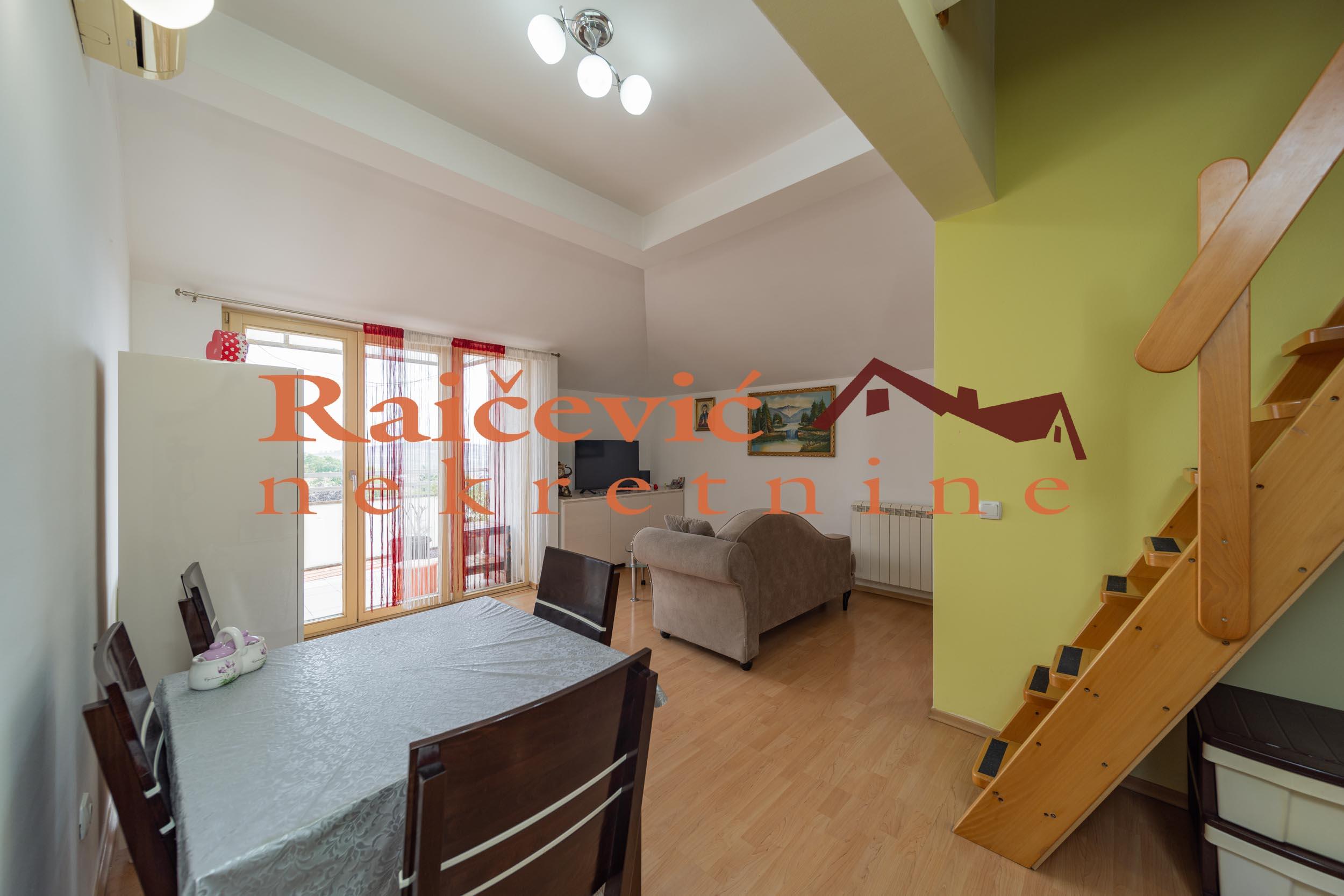 Kluz, Milana Rakica, 3.0, 65 m2 sa terasom, III i IV od IV sprata, dupleks, cg, bez lifta, interfon, ktv, internet, klima, odmah useljiv, izvorno stanje, opremljen, uknjizen na 37 m2, novija zgrada iz 2007. godine, depozit obavezan. Funkcionalan stan na lepoj lokaciji. Dupleks sa 2 mokra cvora. Uknjizen na 37 m2, po kupoprodajnom ugovoru 65 m2. Niski rezijski troskovi. Prostorije: I nivo: hodnik, dnevna soba sa kuhinjom i trpezarijom, terasa, spavaca soba, kupatilo sat us kabinom; II nivo: hodnik, spavaca soba i kupatilo sa kadom. Objekat se nalazi u blizini skole, Olimpa, Bulevara kralja Aleksandra, mnogih trgovackih i usluznih delatnosti. Cena 650 evra + depozit. Agencijska provizija koju placa ZAKUPAC iznosi: 50 % od prve mesecne zakupnine za zakup u trajanju od 1 do 12 meseci. 75 % od prve mesecne zakupnine za zakup u trajanju od 13 do 59 meseci. 100 % od prve mesecne zakupnine za zakup u trajanju od 60 meseci (5 godina) i vise. prostorije Raicevic nekretnine 064/1959991