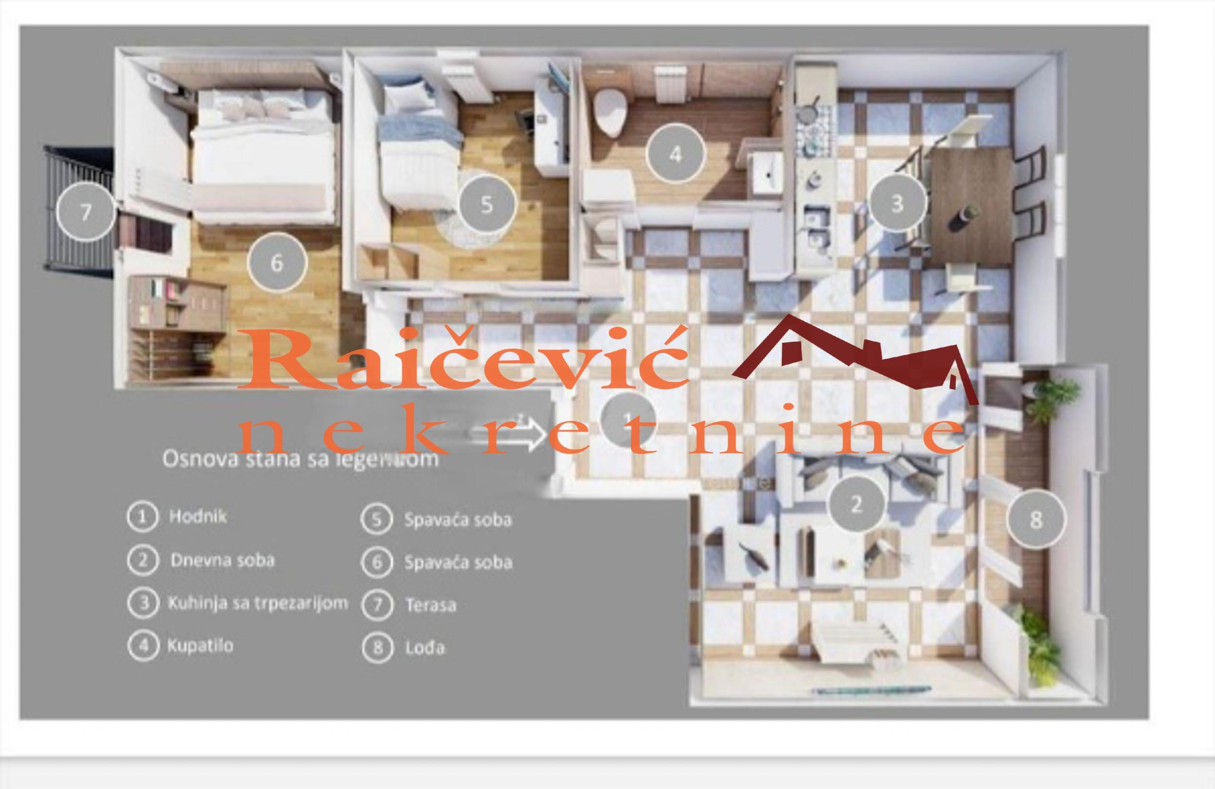 SVI NASI KUPCI DOBIJAJU VREDAN POKLON! Profesorska kolonija, Mise Vujica, 3.0, 83 m2 sa terasom i lodjom, III od III sprata, podno grejanje, bez lifta, interfon, video nadzor, inverter klima, odmah useljiv, renoviran, izvrsen tehnicki prijem (predato za upotrebnu dozvolu), po gradjevinskoj dozvoli se vodi na 67.72 m2, placeni doprinosi za gradjevinsko na 70 m2, starogradnja (adaptirano potkrovlje u starijoj zgradi, dogradjeno i pretvoreno u stambeni prostor). Prostorije: dnevni boravak, kuhinja sa trpezarijom, dve spavace sobe, kupatilo, terasa i lodja. Dvostrano je orijentisan, svetao, sa pogledom na park Hale pionir. U stanu je ugradjena kvalitetna PVC stolarija sa elektro motorima i komarnicima. U spavacim sobama je postavljen tarket. Kupatilo je modernog izgleda i dizajna, sa ugradnim elementima. Keramika je granitna visokog kvaliteta, a grejanje je podno. Postavljena je inverter klima. Cena 237 500 evra. Kupite ovu nekretninu preko agencije Raicevic nekretnine i POKLANJAMO VAM idejno resenje dizajna enterijera! Pozovite nas za vise informacija. Agencijska provizija koju placa KUPAC iznosi 2 % od dogovorene kupoprodajne cene. Raicevic nekretnine 060/3056057