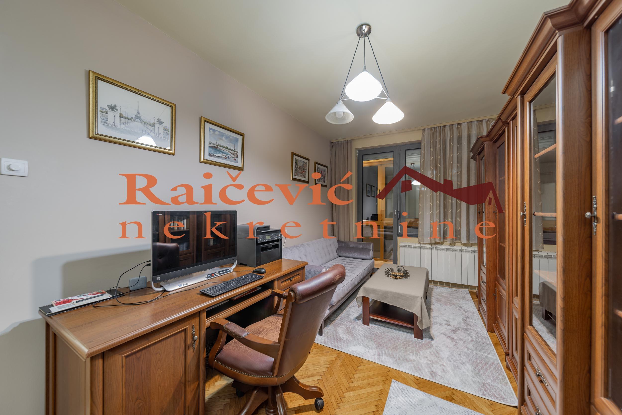 SVI NASI KUPCI DOBIJAJU VREDAN POKLON! Gradska bolnica, Cingrijina, 4.0, 104 m2 sa zastakljenom terasom, III od VI spratova, cg, lift, interfon, ktv, internet, odmah useljiv, renoviran, uknjizen 104 m2 gradjevinske, odnosno na 91 m2 korisne povrsine, podrum, starogradnja iz 1972. godine. Funkcionalan, prostran, porodican stan na lepoj lokaciji. Trostrano orijentisan, u mirnom kraju, okruzen zelenilom i parkovima. Kompletno je renoviran 2024. godine: ulazna vrata Bosal sa sef bravom, spoljasnja troslojna alu stolarija (termoizolacioni sloj, termo vakum barijera). Izdvojen dnevni i spavaci blok. Zastakljena terasa sa grejanjem (13 m2), 2 mokra cvora, ostava. Prostorije: ulazni hodnik 22 m2, dnevni boravak 26 m2 (ulicno orjentisan), sa izlaskom na terasu, gostinjski toalet, kuhinja sa trpezarijom, ostava, 3 spavace sobe (dvorisno orjentisane), sa izlaskom na terasu i kupatilo. Postoji mogucnost kupovine i opremljenog stana. Zgrada se nalazi u blizini Gradske bolnice, skole, SC Olimp, mnogih komercijalnih, usluznih i trgovackih delatnosti. Cena 348 000 evra. Kupite ovu nekretninu preko agencije Raicevic nekretnine i POKLANJAMO VAM idejno resenje dizajna enterijera! Pozovite nas za vise informacija. Agencijska provizija koju placa KUPAC iznosi 2 % od dogovorene kupoprodajne cene. Raicevic nekretnine 064/1959991