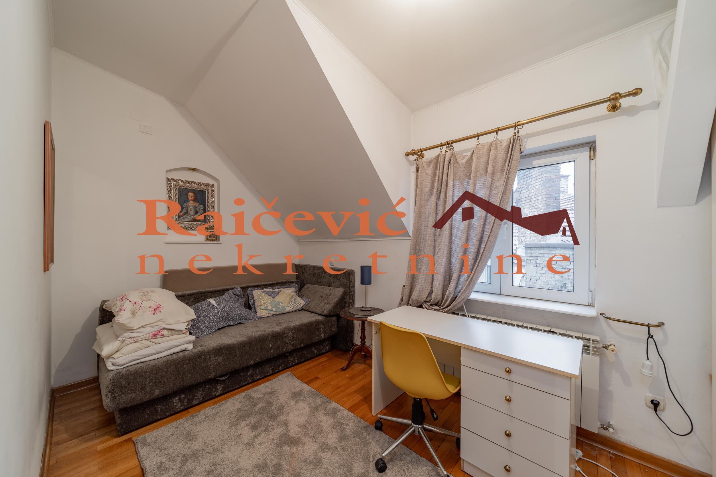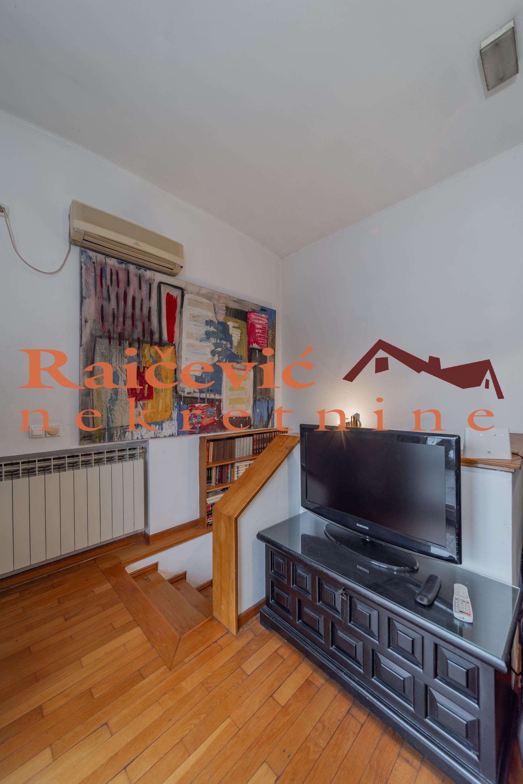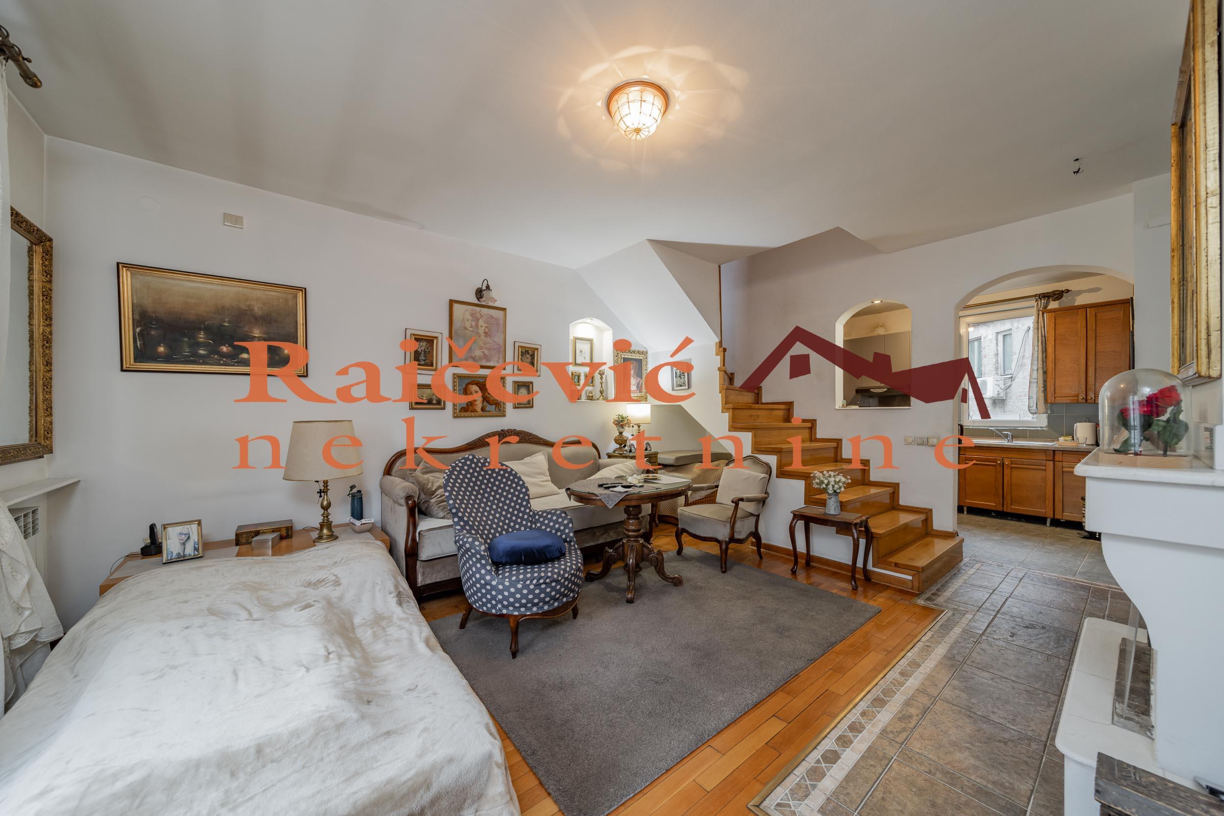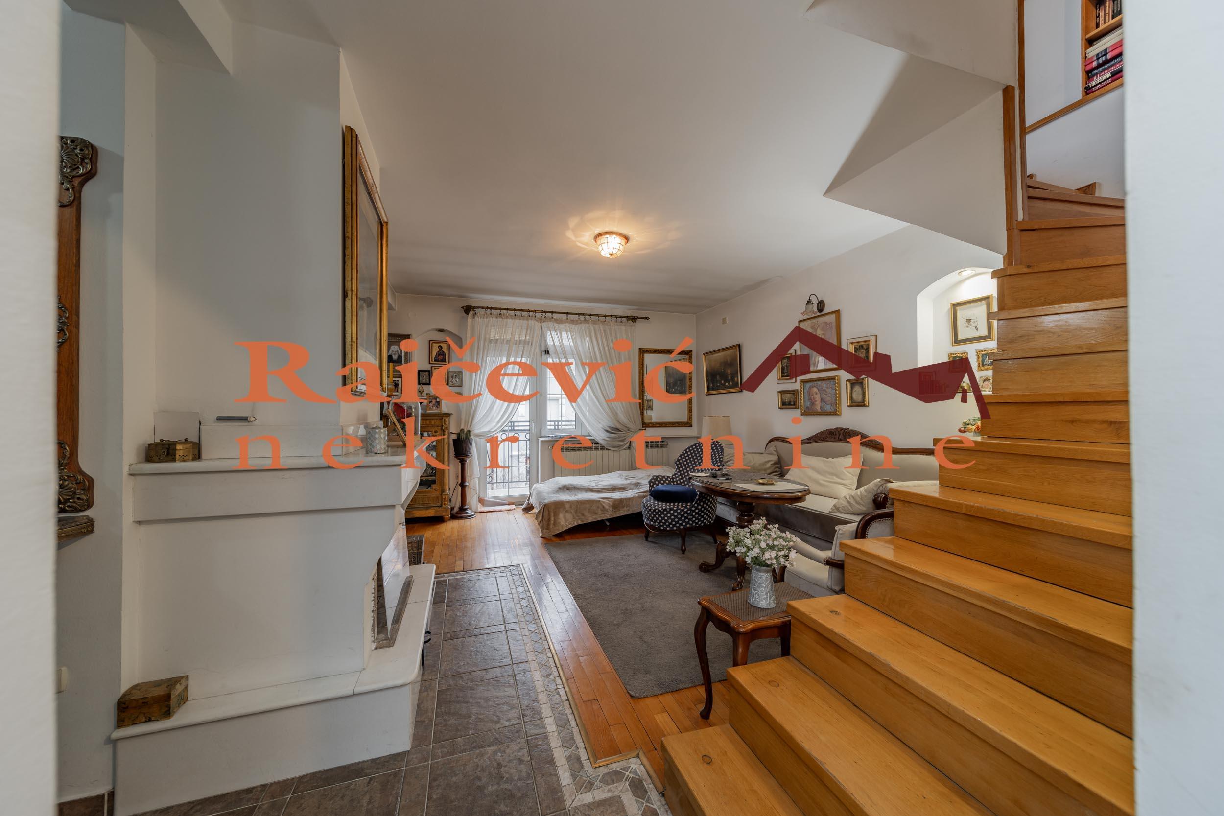 SVI NASI KUPCI DOBIJAJU VREDAN POKLON! Centar, Skupstina, Palmoticeva, 5.0, 108 m2 sa terasom i lodjom, III od IV sprata, dupleks, cg, bez lifta (mogucnost ugradnje), interfon, ktv, internet, klima, odmah useljiv, uknjizen na 96 m2, nadogradnja iz 2001. godine. U centru opstine Stari grad, neposredno u blizini Skupstine, Trga Republike, Ateljea 212, Skadarlije i svih drugih vaznih infrastrukturnih objekata, blizu ugla ulica Palmoticeve i Hilandarske, prodaje se petosoban, uknjizen dvoetazni stan koji se svojim izgledom i kvalitetom potpuno uklapa i predstavlja elitni deo grada u kome je lociran. Nalazi se u starijoj urednoj zgradi sa dva ulaza, novom fasadom i sirokim stepenistem. Sa jos 3 stana cini nadogradnju izgradjenu od kvalitetnih materijala u luksuznom stilu, uklopljenu u eksterijer i useljenu 2001. godine. Stan je na 3 i 4. spratu, bez lifta, sa tehnickim mogucnostima da se isti ugradi. Prostorije: I nivo (53 m2): predsoblje, dnevni boravak sa izlazom na terasu, kuhinja sa trepezarijom, spavaca soba i kupatilo. II nivo (55 m2): dnevni boravak sa izlazom na lodju, 2 spavace sobe i kupatilo. Dvostrano je orijentisan. Visina plafona je od 2.7 m do 3 m sa blagim kosinama u 2 spavace sobe. Svaka prostorija ima prozor, odnosno prirodnu ventilaciju. Opremljen je PVC stolarijom, sigurnosnim vratima, klima uredjajima, kaminom na drva, optickom mrezom (internet, kablovska TV). Podne obloge su od kvalitetnog hrastovog parketa i granitne keramike. Grejanje je centralno. U kupatilima, kuhinji i trpezariji i hodniku je podno grejanje dok je ostatak stana opremljen radijatorima. Struktura stana, raspored i velicina prostorija, kao i kvalitet izgradnje cine ga luksuznim i izuzetno funkcionalnim, sto pruza visok nivo komfora za svakodnevni zivot viseclane porodice. Stan je za svaku preporuku. Cena 499 000 evra. Kupite ovu nekretninu preko agencije Raicevic nekretnine i POKLANJAMO VAM idejno resenje dizajna enterijera! Pozovite nas za vise informacija. Agencijska provizija koju placa KUPAC iznosi 2 % od dogovorene kupoprodajne cene. Raicevic nekretnine 060/3056068