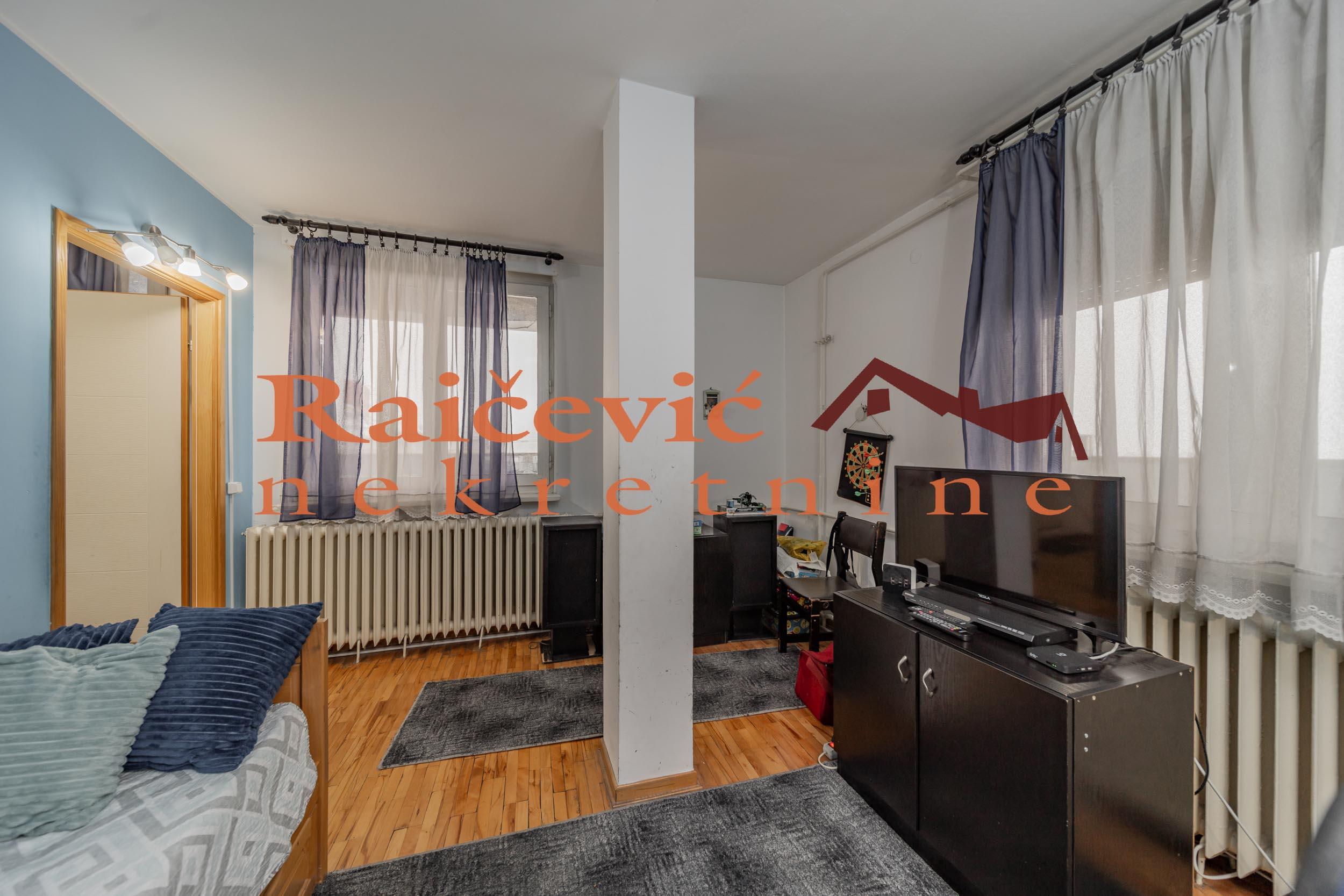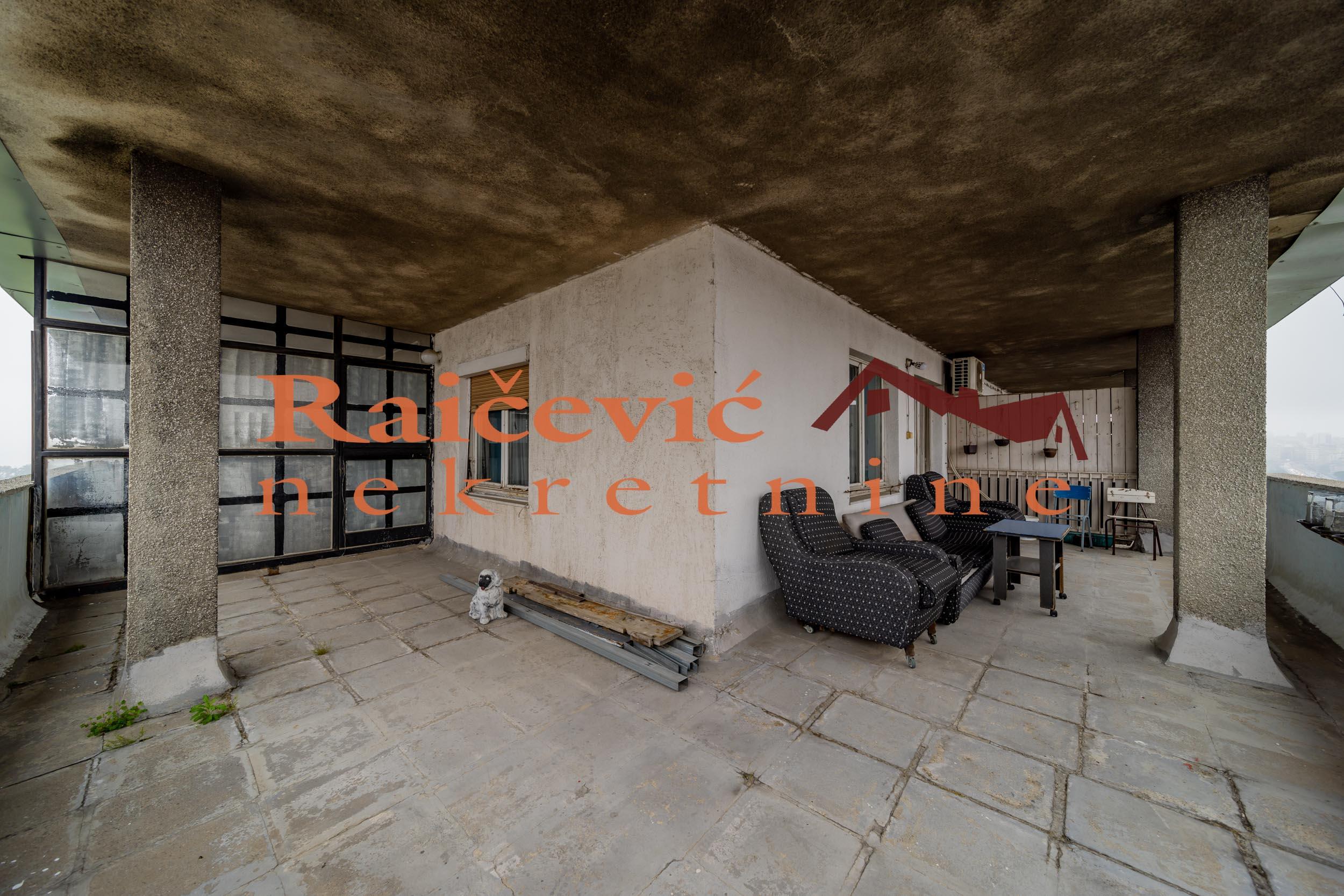 SVI NASI KUPCI DOBIJAJU VREDAN POKLON! Novi Beograd, Blok 21, Bulevar Mihajla Pupina, 2.0, 114 m2 sa terasom od 66 m2, XVII od XVII spratova, cg, 2 lifta, interfon, ktv, internet, odmah useljiv, izvorno stanje, uknjizen na 48 m2, podrum od 2 m2, starogradnja. Jedinstven stan sa velikom terasom i predivnim pogledom na usce Save u Dunav, Kalemegdan, Stari grad. Dvosoban stan na jednoj od prestiznih beogradskih lokacija, u Bloku 21, u dobro odrzavanoj zgradi sa 2 lifta. Zgrada je okruzena zelenim povrsinama, decijim igralistem i velikim parking prostorom. U blizini se nalaze svi sadrzaji potrebni za svakodnevni udoban zivot (skola, vrtici, trzni centar, market, posta, veliki broj linija gradskog prevoza), kao i vazni infrastrukturni objekti: Sava centar, TC Usce, Beogradska arena, hotel Hajat, park Usce, Savski kej. Dvostrano je orijentisan, svetao, za kompletno je renoviranje, sa velikim potencijalom i mogucnostima da se prosiri na celokupnu terasu od 66 m2 i na taj nacin dobije stambeni prostor od 114 m2. Terasa je u potpunosti natkrivena sa kvalitetnom betonskom plocom koja je opsivena limenim profilima kako bi bila u celosti zasticena od udara vetra. Prostorije: hodnik iz kog se ulazi u sve prostorije, odvojena kuhinja sa prirodnom ventilacijom, dnevna soba sa trpezarijom i izlazom na terasu, spavaca soba sa izlazom na terasu, kupatilo i ostava. Ima pripadajuci podrum. Ovome stanu je trenutno pripojen i deo stambenih zajednickih prostorija od 29 m2 sa terasom od 40 m2 tako da vlasnik stana placa cg i porez na imovinu na ukupnih 77 m2 i koristi terasu od 106 m2. Zajednicki prostor od 29 m2 vlasnik stana je renovirao u dve spavace sobe koje imaju izlaz na terasu. Vazna napomena: zajednicka prostorija od 29 m2 sa terasom od 40 m2 koji ovaj stan korist od 1991. godine nije imovinsko - pravno resena sa Skupstinom stanara Stambene zajednice. Stan je uknjizen, ima urednu dokumentaciju, bez tereta i zabelezbi. Vredi pogledati. Cena 215 000 evra. Kupite ovu nekretninu preko agencije Raicevic nekretnine i POKLANJAMO VAM idejno resenje dizajna enterijera! Pozovite nas za vise informacija. Agencijska provizija koju placa KUPAC iznosi 2 % od dogovorene kupoprodajne cene. Raicevic nekretnine 060/3056068