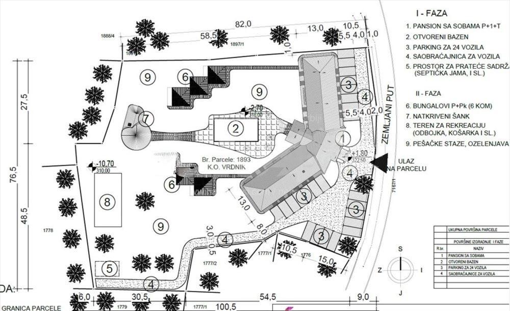Plac, povrsine 6308 kvadrata, se nalazi u srcu nacionalnog parka Fruske Gore na nadmorskoj visini 360 m. Dozvoljeno je graditi stambeno-poslovni objekat spratnosti P+3+PK na osnovu informacije o lokaciji dobijene od sluzbe za zastite zivotne sredine i urbanizma Dozvoljen indeks zauzetosti parcele u osnovi je 50 posto od velicine placa sto znaci da se moze graditi cca 12000 kvadrata stambenog i poslovnog prostora. Panorama Star DOO, firma u mom vlasnistvu, poseduje idejni projekat pansiona 1200 kvadrata; bungalovi, bazen i otvoreni bar- 850 kvadrata. Za idejni projekat ovog kompleksa su dobijeni urbanisticko tehnicki uslovi. Na placu je uradjena busotina bunara termalne vode do 405 m gde je pronadjena termalna voda, cca 32 stepena. Busotina nije zavrsena. Posedujemo sve potrebne dozvole sto se tice gradjevinskog projekta i busotine termalne vode. Dodatne informacije na https://banemilosavljev.wixsite.com/panoramastar Kontakt:063514984