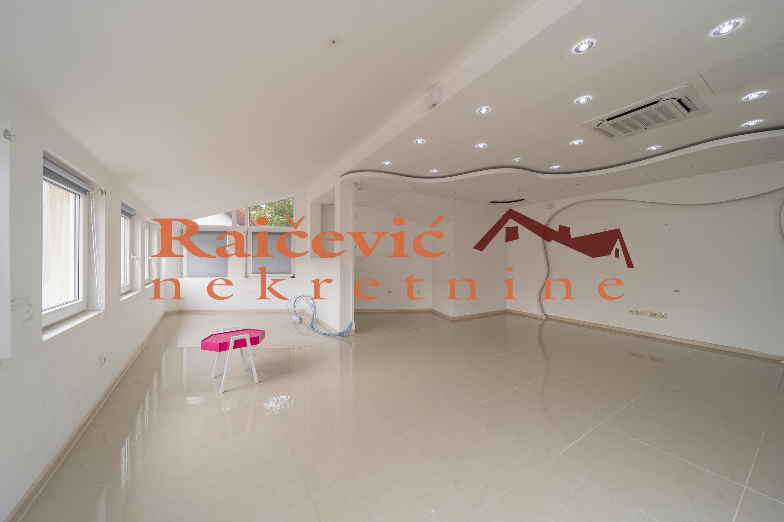 Lekino brdo, Bakiceva, 5.0 poslovni prostor od 180 m2 sa terasom od 2 m2, PR i I sprat od I sprata, norveski radijatori, bez lifta, renoviran, odmah useljiv, uknjizen. Veliki, luksuzni poslovni prostor u kuci, nalazi se u blizini Tempa. U prizemlju se nalaze kupatilo, kuhinja i velika soba dok se na I spratu nalaze 4 sobe, kuhinja, kupatilo i terasa. Izdaje se prazan na duzi vremenski period. Cena 1 200 evra + depozit. Agencijska provizija koju placa ZAKUPAC iznosi: 50 % od prve mesecne zakupnine za zakup u trajanju od 1 do 12 meseci. 75 % od prve mesecne zakupnine za zakup u trajanju od 13 do 59 meseci. 100 % od prve mesecne zakupnine za zakup u trajanju od 60 meseci (5 godina) i vise. prostorije Raicevic nekretnine 069/1659266