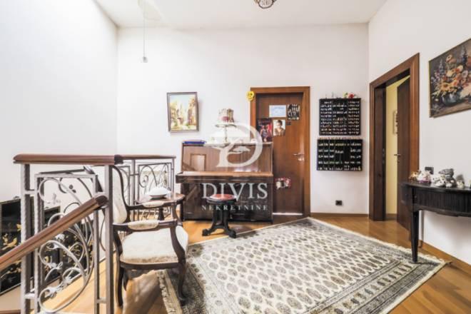 Prodajemo izuzetan petosobni dupleks/penthouse u najlepšem delu ulice Svetozara Markovića. Stan je izuzetno svetao, sa impresivnim panoramskim pogledom koji obuhvata gotovo čitav grad – od Crkve Svetog Marka do Hrama Svetog Save. Donju etažu čini komforna i funkcionalno organizovana celina: prostrani dnevni boravak povezan sa trpezarijom i kuhinjom, gostinski toalet, kao i master soba sa sopstvenim kupatilom, garderoberom i izlazom na terasu. Ovaj nivo stana pruža potpun komfor i privatnost, uz obilje prirodne svetlosti tokom celog dana. Gornja etaža rezervisana je za spavaći blok sa tri komforne sobe, od kojih svaka ima izlaz na terasu. Dve sobe poseduju sopstvene garderobere i kupatila, što ovu nekretninu čini idealnom za veću porodicu ili one koji žele dodatni prostor za rad i goste. Stan je kompletno klimatizovan i ne zahteva dodatna ulaganja. Uknjižen je na 217m², dok je realna površina približno 250m². Zgrada je predratna, reprezentativna, sa mermernim ulazom i pod zaštitom države. Nalazi se u neposrednoj blizini Cvetnog trga i Tašmajdana, što ovu lokaciju čini jednom od najpoželjnijih u gradu. Postoji mogućnost rente parking mesta u neposrednoj blizini zgrade, što dodatno doprinosi komforu stanovanja u centru grada. Retka i autentična nekretnina na tržištu, za svaku preporuku. Posrednička naknada se obračunava prema Opštim uslovima poslovanja agencije "DIVIS NEKRETNINE" d.o.o.