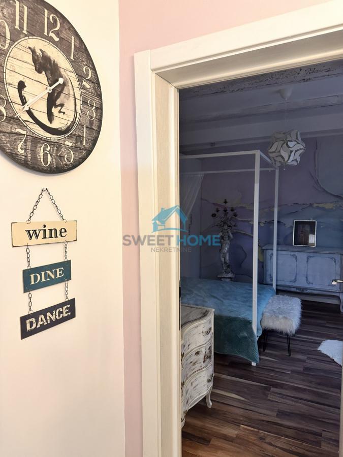 Stan u kuci na I spratu 53m2 sa polukruznim balkonom. Spavaca, dnevna , veliko kupatilo i trpezarija/ kuhinja Kompletno namesten, grejanje norveski radijatori i dve klime. Useljiv od 01.03. Ag provizija 50%