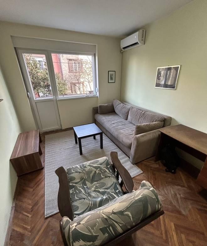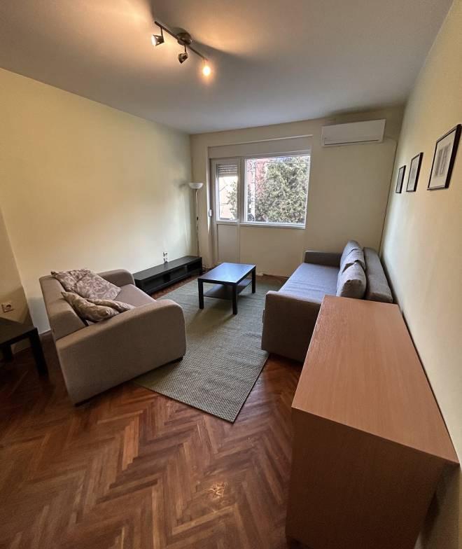 Izdajemo dvosoban stan na prvom spratu očuvane zgrade sa liftom koja se nalazi na dobroj lokaciji u blizini svih nephodnih sadržaja. Stan se sastoji od ulaznog hodnika iz koga se ulazi u sve prostorije, dnevnog boravka, kuhinje sa trpezarijom, ostavom i izlazom na jednu terasu, kupatila i druge terase koja ima pristup i iz dnevnog boravka i iz spavaće sobe. Kupatilo je kompletno renovirano, grejanje je putem inverter klima i norveških radijatora. Stan se izdaje namešten. Posrednička naknada je u skladu sa Opštim uslovima poslovanja Posrednika "DIVIS NEKRETNINE" d.o.o