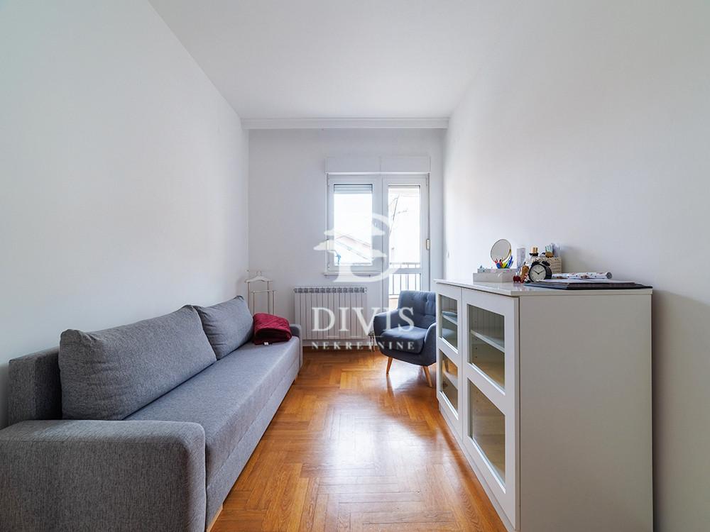 Prodaje se odličan trosoban stan na Vračaru, u Mileševskoj ulici, u neposrednoj blizini Kalenić pijace. Stan se nalazi na prvom spratu kvalitetne i održavane zgrade iz 2005. godine sa liftom, video nadzorom i reprezentativnim mermernim ulazom. Po strukturi je trosoban i sastoji se od ulaznog hodnika, prostranog dnevnog boravka sa trpezarijom, kuhinje, dve spavaće sobe, dva kupatila, ostave i terase. Visina plafona od 2,9 m dodatno doprinosi osećaju komfora i prostranosti, što ovu nekretninu izdvaja u odnosu na standardnu gradnju. Stan je opremljen kvalitetnim materijalima: aluminijumska spoljna stolarija sa roletnama, unutrašnja drvena stolarija, hrastov parket, sigurnosna vrata, kao i kamin u dnevnom boravku koji je u funkciji. Grejanje je centralno. Orijentisan je ka dvorišnom delu zgrade, veoma je svetao tokom dana i potpuno izolovan od gradske buke, što pruža mir i privatnost u jednoj od najtraženijih lokacija u Beogradu. Zahvaljujući odličnoj lokaciji, u blizini Kalenić pijace, brojnih prodavnica, škola, vrtića, restorana i svih važnih sadržaja, stan predstavlja idealnu priliku kako za porodični život, tako i kao investiciju za izdavanje. Prodaje se kompletno namešten. Uknjižen na vlasnika, bez tereta i zabeležbi. Posrednička naknada se obračunava u skladu sa Opštim uslovima poslovanja agencije ''DIVIS NEKRETNINE'' d.o.o