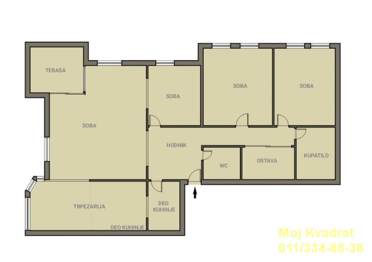 Savski venac, Dedinje - Veljka Lukića Kurjaka 4.0, 102m2 (terasa 9m2), 4/5, CG, lift, telefon, interfon, podrum Četvorosoban, izuzetan stan na odličnoj lokaciji na Dedinju. Nalazi se u dobro održavanoj zgradi okruženoj zelenilom, a u neposrednoj blizini glavnih saobraćajnica i svih sadržaja neophodnih za život. Sastoji se od ulaznog hodnika, dnevne sobe iz koje se izlazi na terasu, kuhinje sa trpezarijom, odvojenog spavaćeg dela sa tri sobe, kupatila, toaleta i ostave. Takođe, poseduje i pripadajući podrum. Delimično je renoviran i useljiv bez većih ulaganja. Uknjižen na 102m2. Agencijska provizija 2% Agent: Višnja Stanković 065/66-55-456 (licenca br.5554)