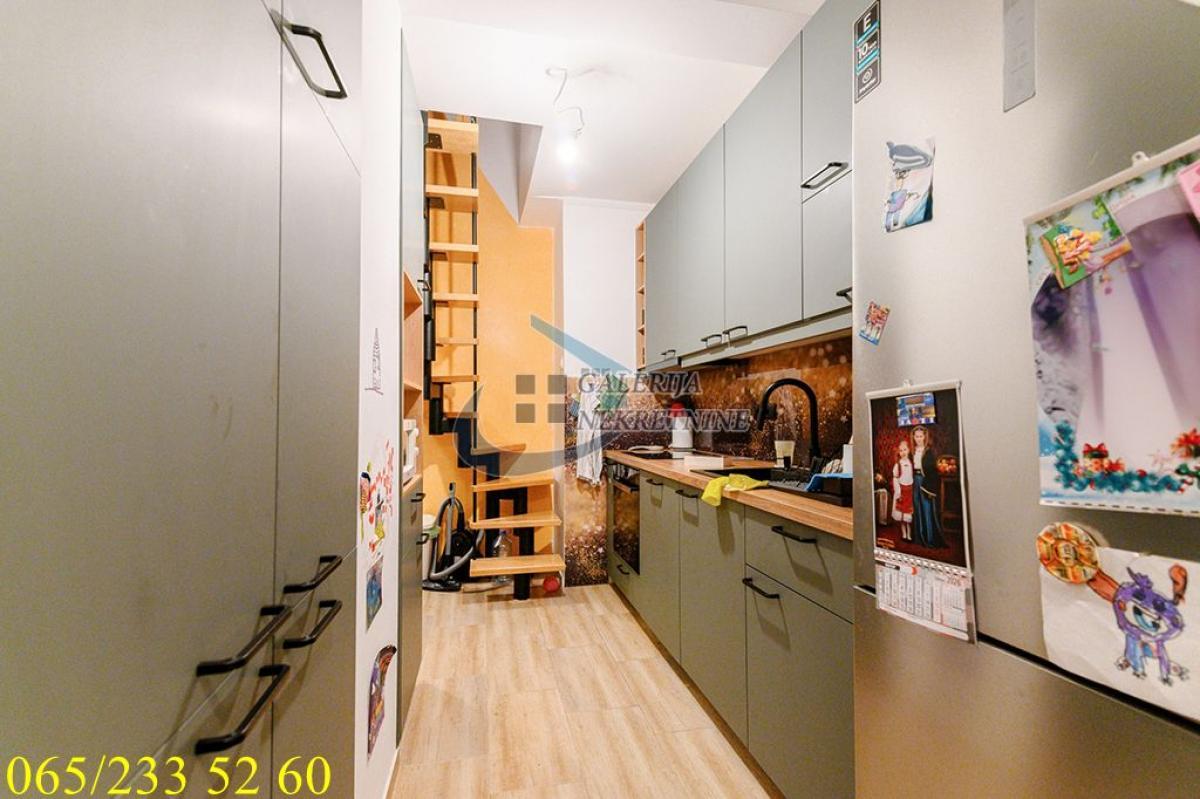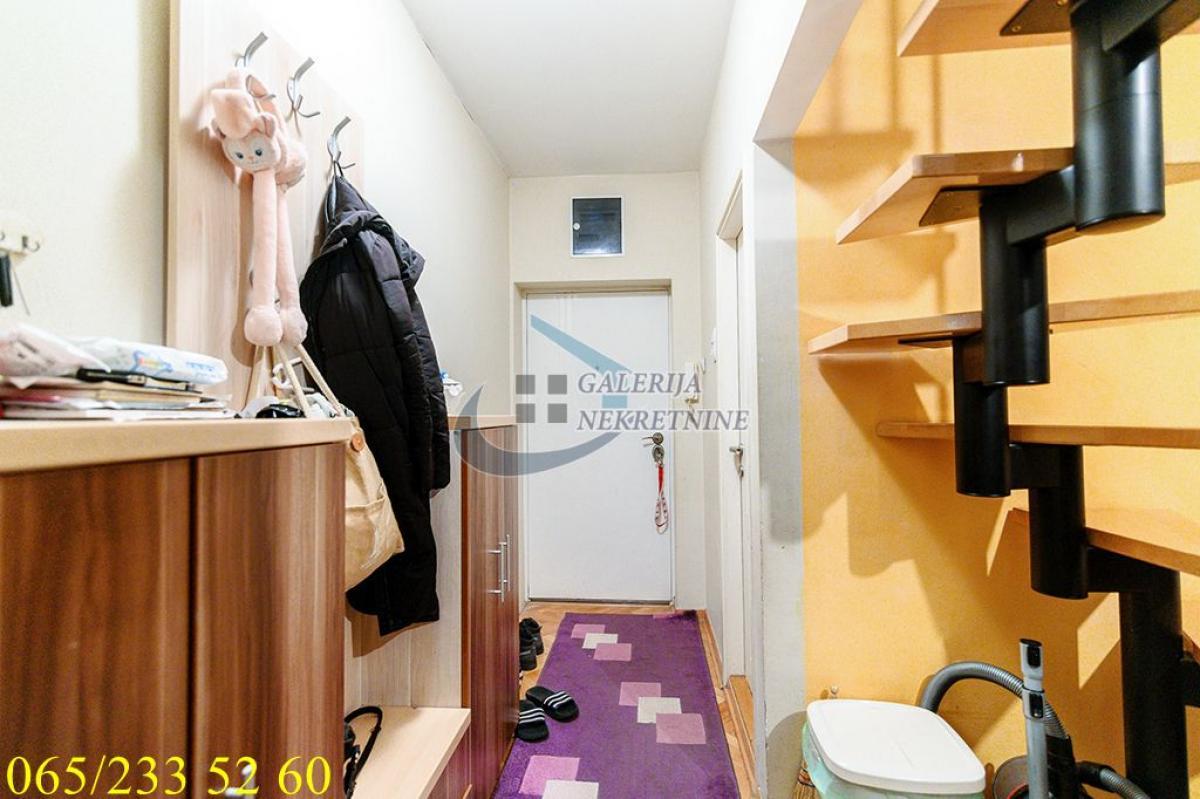 3.0, 72m2(terasa), 4/5, duplex, TA, klima, interfon, video nadzor, ktv, podrum. Karaburma je naselje u Beogradu, koje se nalazi na teritoriji opštine Palilula. Područje je pretežno stambeno, a poslednjih nekoliko godina se na toj lokaciji otvaraju poznati tržni centri. Jedno je od naseljenijih krajeva Beograda. Ulica Dr Đorđa Joanovića nalazi se u neposrednoj blizini stare okretnice te je povezanost sa centrom grada odlična. U prilici smo da vam ponudimo konforan trosoban stan na četvrtom i petom spratu uredne i održavane zgrade bez lifta, u ulici Dr Đorđa Joanovića. Stan je koncipiran kao duplex, nastao je tako što je tavanski prostor iznad stana 2000-te godine adaptiran i pripojen stanu kao drugi nivo. Dvostrano je orijentisan, okružen zelenilom, izuzetno svetao i bez buke. Perfektno je projektovan i organizovan do najsitnijih detalja, zadovoljavajući estetske i funkcionalne zahteve savremenog stanovanja. U skladu sa modernim trendovima na donjem nivou je kuhinjsko trpezarijski prostor, dnevni boravak sa izlazom na zastakljenu terasu, a na gornjem nivou su dve spavaće sobe i kupatilo. Bez krovnih prozora a postojeće kosine na gornjem nivou ne remete na funkcionalnosti prostora. Konforu dodatno doprinose kupatila, dok grejanje na struju omogućava racionalizaciju troškova. Stan ima i pripadajući podrum. Apsolutno stan za svaku preporuku, idealan za porodice. Od prostorija: I nivo: hodnik, kuhinja, trpezarija, dnevni boravak, kupatilo, terasa. II nivo: predsoblje, dve spavaće sobe, kupatilo. Uknjižen na 72m2 korisne površine, brzo useljiv. Agent prodaje: Zorana Novičić 065/520 32 80