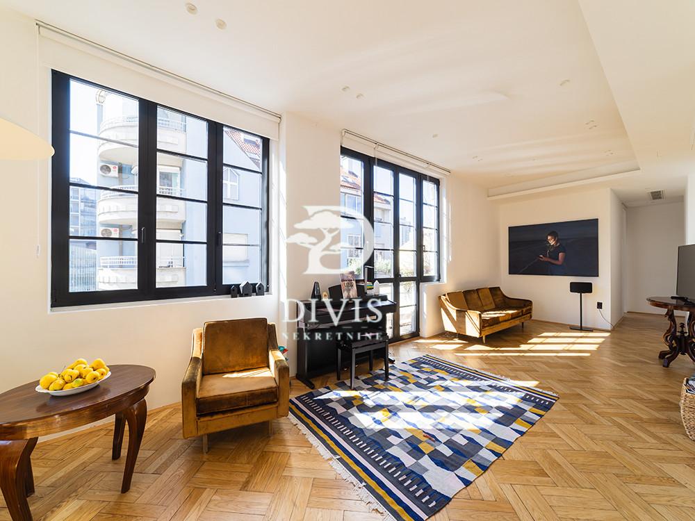 Prodajemo odličan četvorosoban, salonski stan na drugom spratu predratne zgrade iz 1936 godine. Sastoji se od ulaznog dela, dnevnog boravka sa trpezarijskim delom, kuhinje, tri spavaće sobe, dva kupatila i dve terase. Stan je kompletno renoviran i tom prilikom je postavljena REHAU spoljna ALU stolarija, restauriran hrastov parket, zamenjene elektro i vodovodne instalacije, postavljena rasveta u celom stanu. Kupatila su sređena modernim i najkvalitetnijem materijalima. Visina plafona 3m. Stan je korisne površine 122m2 i ima dodatnih 8m2 terasa. U stanu je postavljena centralna klima. Etažno grejanje na kotao. Stan poseduje podrumsku prostoriju. Uknjižen na vlasnika 1/1. Posrednička naknada se obračunava u skladu sa Opštim uslovima poslovanja agencije DIVIS NEKRETNINE DOO.