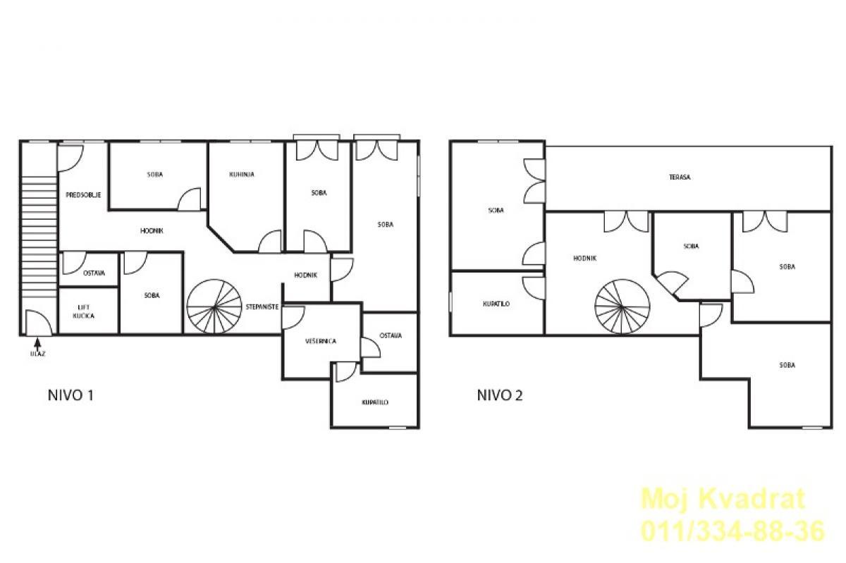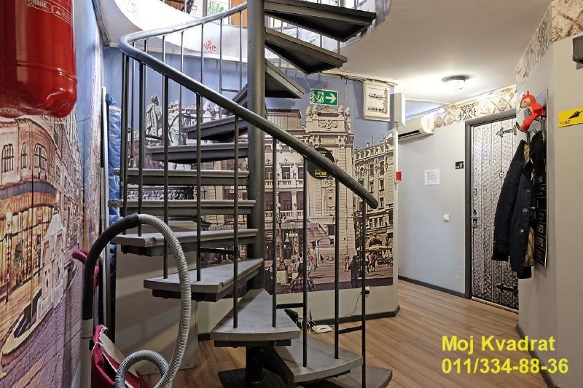 Stari grad, centar - Kneza Mihaila 6.0, 170m2 (terasa 22m2), 5+6/6, CG, klima, lift, telefon, interfon, video nadzor, KATV, internet, podrum U ponudi za prodaju dupleks stan (sa osam soba) koji trenutno radi kao stan na dan, iskorišćenog kapaciteta od 70 do 80 odsto, zavisno od meseca. Sama nepokretnost je trostrano orijentisana, ima izuzetan potencijal; može da se izdeli na dve potpuno nezavisne stambene jedinice (svaka bi imala po 85m2), može da funkcioniše kao dupleks stan, ili da služi kao stan na dan uz razrađen biznis plan i stručnu podršku proverenog menadžmenta. Pozicioniran je na petom od šest spratova u zgradi sa liftom koji ide do četvrtog sprata. Kompletirana je dokumentacija za ugradnju lifta (o trošku kupca) na oba nivoa. Sve instalacije su u stanu zamenjene najkvalitetnijim materijalima, pa su instalirani protočni bojleri, mogućnost ugradnje đakuzi kade u oba kupatila, a izvedena je kompletna instalacija i za postavljanje saune. Postoji izdvojeni prostor za sušenje i pranje veša. Stan trenutno funkcioniše kao osmosoban, uklanjanjem pregradnih zidova dobija strukturu petosobnog ili šestosobnog stana. Na gornjem delu ima veliku terasu koja može da se natkrije, pojedine sobe imaju francuske balkone, stan je dvorišno okrenut, a sam ulaz u zgradu izuzetno lep i dobro očuvan. Zgrada je salonskog tipa, ovaj stan nema salonsku visinu, ali ima izlaz na Obilićev venac. Blizina parkinga na Obilićevom ili Zelenom vencu po povlašćenim cenama, uz nalepnicu. Stan ima osnovno pet soba ( pre nego što što je izvršeno pregrađivanje), po dva kupatila (gornji i donji nivo), gornji nivo ima terasu, francuske balkone. Ima pripadajući podrum. Izuzetan potencijal za život i kao investicija (trenutno je prilagođen za izdavanje). Uknjižen. Agencijska provizija 2% Agent: Svetlana Todorov 066/239-141 (licenca br.6305)