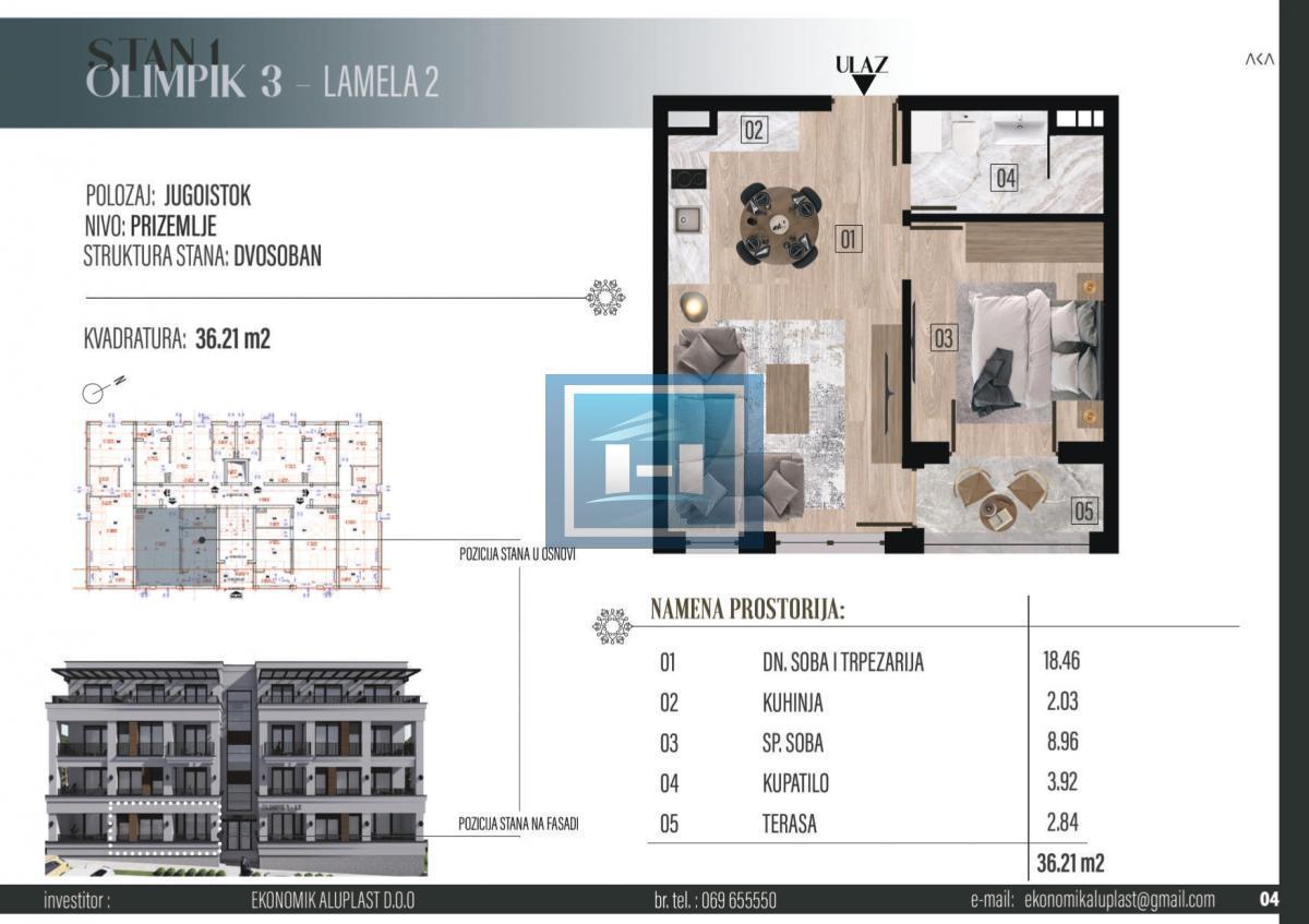 U ponudi je jednosoban stan u modernoj novogradnji koja je trenutno u izgradnji u Vrnjačkoj Banji – najposećenijem turističkom mestu u Srbiji, koje je atraktivno tokom cele godine! Ova nekretnina je savršen izbor za: Investitore koji žele sigurnu i profitabilnu nekretninu Buduće vlasnike koji žele moderan dom u mirnom okruženju One koji žele stan za odmor u najtraženijoj banjskoj destinaciji Lokacija: Mirna zona, samo nekoliko minuta od Akva parka i svih važnih sadržaja Zgrada: Savremena gradnja sa liftom i obezbeđenim parkingom Stan: Jednosoban stan sa funkcionalnim rasporedom – jasno odvojene dnevne i spavaće zone Karakteristike: Crna aluminijumska stolarija Crna keramika modernog dizajna Podno grejanje – komfor tokom cele godine Klima uređaj Električne roletne Lift Parking Kupovina direktno od investitora – moguć povraćaj PDV-a Zgrada je projektovana i građena po najvišim standardima, a odlična lokacija garantuje visok potencijal za izdavanje i stabilan prihod. Iskoristite priliku da kupite stan po povoljnoj ceni u fazi izgradnje! 064/8312081 064/8312064 Heroldo, 13. oktobar br. 5, Ćuprija