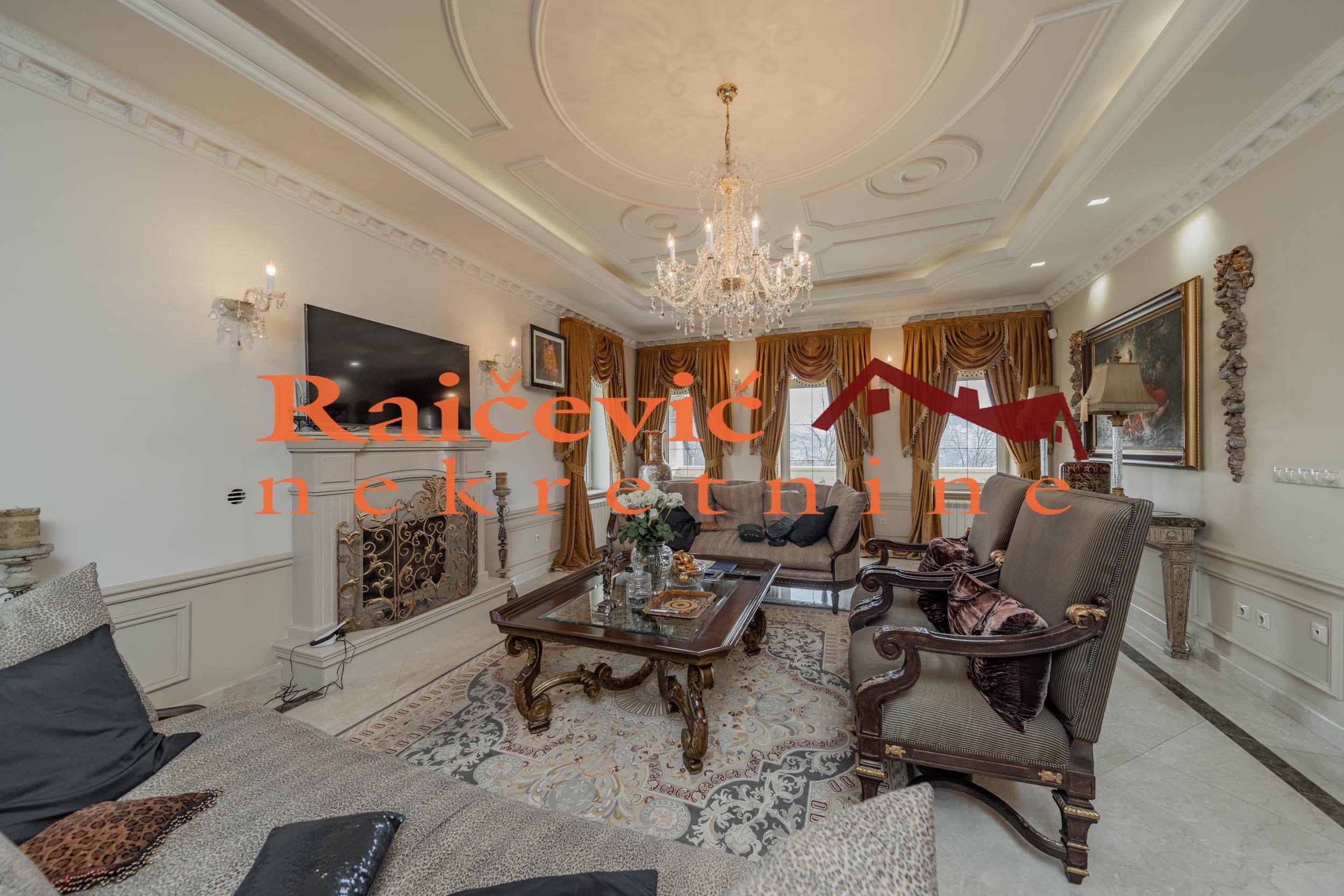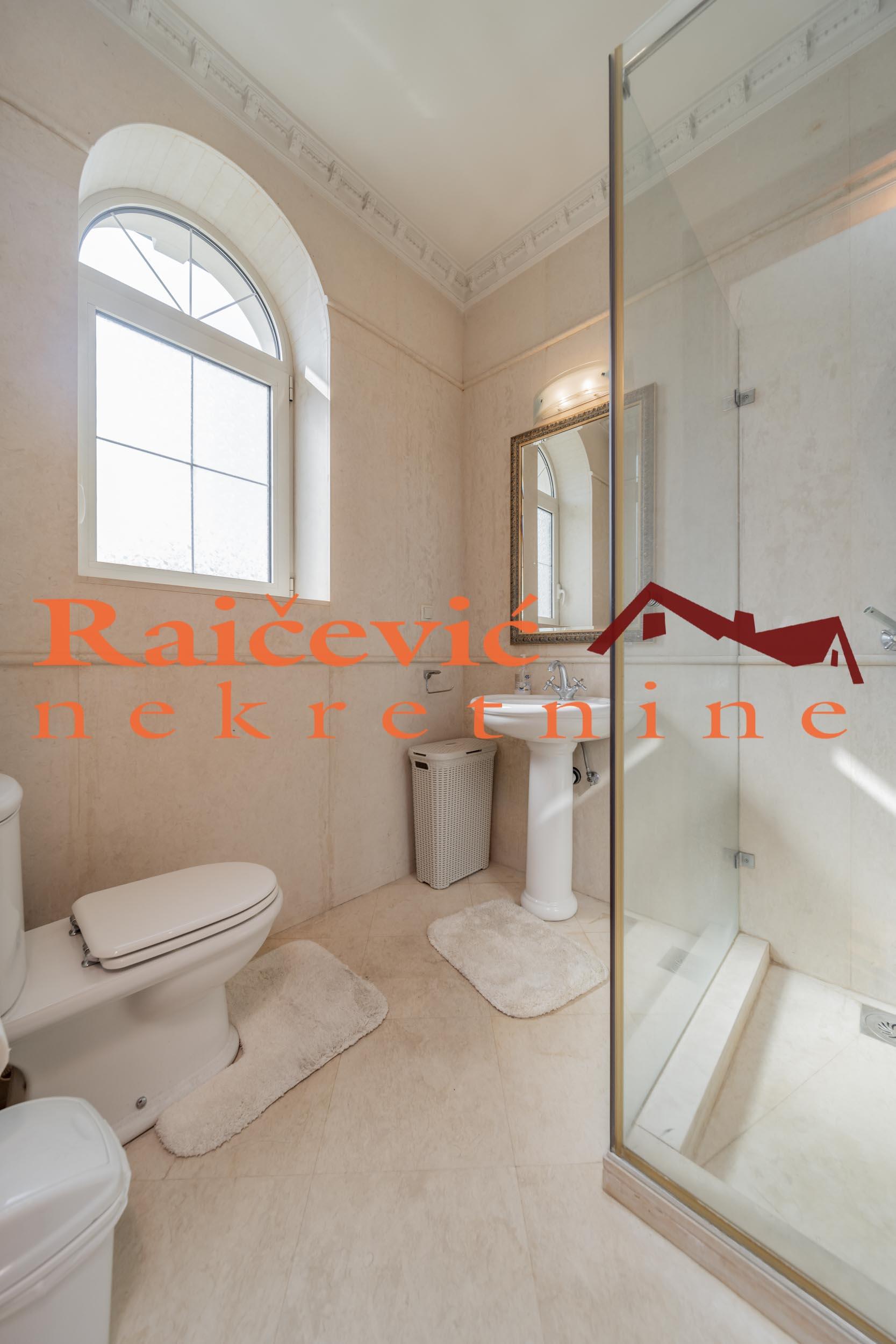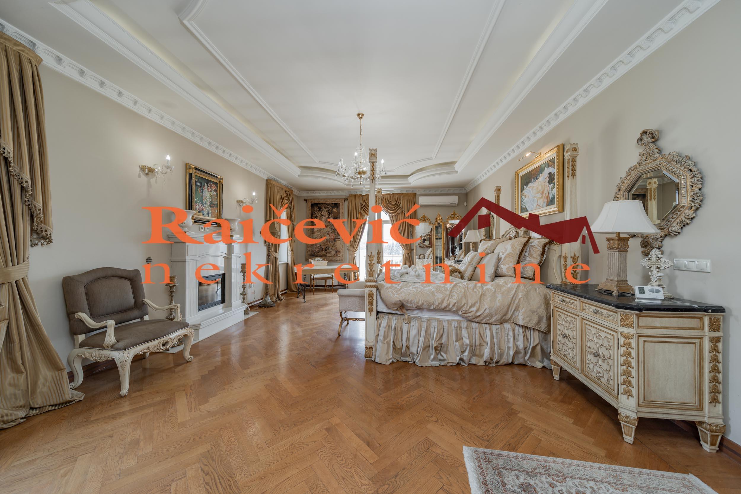 Dedinje, Aleksandra Tirnanica Tirketa, 9.0 kuca od 1.118 m2 sa 4 terase, na placu od 11.39 ari, PSUT + PR + I + PTK, eg-gas, telefon, lift, ktv, klima, odmah useljiva, luks stanje, namestena, uknjizena u osnovi na 389 m2, salonskog tipa, garaza od 90 m2, vise parking mesta, dvoriste, novogradnja. Luksuzna vila na Dedinju. Raskosno zdanje na ogradjenom placu pravilnog oblika, oplemenjenim zelenilom i letnjikovcem. Svetao, komforan prostor sa visinom plafona od 3.20 m. Sa terasa se pruza fantastican pogled. Izuzetno kvalitetna gradnja: sendvic zid, pikovana fasada, bakarni krov, italijanski mermer, ograde od kovanog gvozdja, lift koji povezuje sva cetiri nivoa, grejaci za topljenje snega i leda na prilazu garazi i stepenistu, sve sobe su klimatizovane (centralna spoljna jedinica), podno grejanje u kupatilima, dva kotla za gas, automatske prskalice za zalivanje zelenila. Objekat je projektovan u cetiri nivoa: I nivo (PSUT) - 348 m2: hodnik, lift, stepenisni prostor, dve sobe, sala za bilijar, teretana, kupatilo, tehnicka prostorija, ostave i garaza od 90 m2. II nivo (PR) - 241 m2: ulazni hol sa stepenistem i dva garderobera, lift, dnevni boravak sa kaminom, trpezarija, kuhinja, radna soba, tehnicka prostorija, kupatilo i dve terase. III nivo (I sprat) - 227 m2: hol sa stepenistem, lift, cetiri spavace sobe (svaka ima svoje kupatilo i garderobere), dve terase i stepeniste za potkrovlje. IV nivo (PTK) - 133 m2: otvoren prostor sa liftom. Vila je optemljena raskosnim, pazljivo biranim namestajem. Ona predstavlja savrsen spoj luksuza I funkcionalnosti te pruza izuzetan komfor za one koji u njoj borave. Idealna je za ambasade, konzulate, diplomatska predstavnistva, predstavnistva svetskih brendova, sedista raznih privrednih i drustvenih subjekata, kao i za smestaj porodice koja zeli raskos i luksuz. Obavezan depozit. Zakupac placa porez na zakup nepokretnosti. Cena 12 000 evra. Agencijska provizija koju placa ZAKUPAC iznosi: 50 % od prve mesecne zakupnine za zakup u trajanju od 1 do 12 meseci. 75 % od prve mesecne zakupnine za zakup u trajanju od 13 do 59 meseci. 100 % od prve mesecne zakupnine za zakup u trajanju od 60 meseci (5 god) i vise. prostorije Raicevic nekretnine 060/3056068