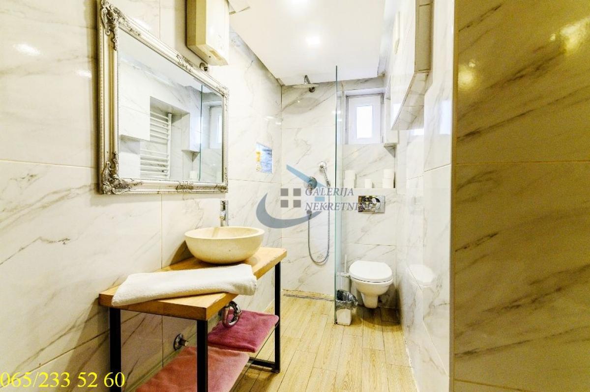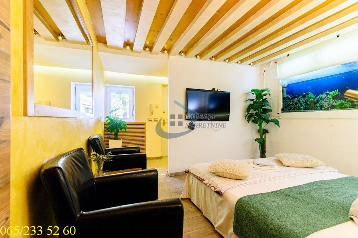 2.0, 44 m2, PR/4, CG, podeljen na dva apartmana, klima, internet, sauna, đakuzi, bazen, akvarijum, KTV Stan se nalazi u najlepšem, mirnom delu ulice Svetozara Markovića, između Njegoševe i Krunske. Ova epicentralna lokacija je infrastrukturno kompletno razvijena, pa se sve što je potrebno za život nalazi na dohvat ruke. U prilici smo da vam ponudimo dvosobni stan u prizemlju četvorospratnice zidane 30-ih godina prošlog veka. Dvorišna pozicija zgrade garantuje potpuni mir. Stan je podeljen na dva luksuzna apartmana za dnevno izdavanje sa zasebnim ulazima. Oba su kvalitetno, luksuzno i moderno opremljena. Manji apartman poseduje bazen sa pumpom i grejanjem, dok veći nudi đakuzi kadu, saunu i akvarijum. Iako je trenutno koncipiran za dnevno izdavanje, adaptacijom se može ponovo spojiti u jednu celinu za stanovanje, izdvanje ili poslovni prostor. U oba apartmana je izvedeno podno centralno grejanje. Stanu pripada i šupa u dvorištu, idealna za odlaganje posteljine i sredstava za održavanje. Ova lokacija je savršen izbor za investiciju (kratkoročno ili dugoročno izdavanje), stanovanje ili poslovni prostor. Od prostorija: dve sobe, kuhinja, dva kupatila i sauna. Stan je uknjižen (površina u katastru nije evidentirana). Po tvrdnji vlasnika stana merena površina je 44 m2. Agent prodaje: Isak Marčetić 064/ 167 53 81