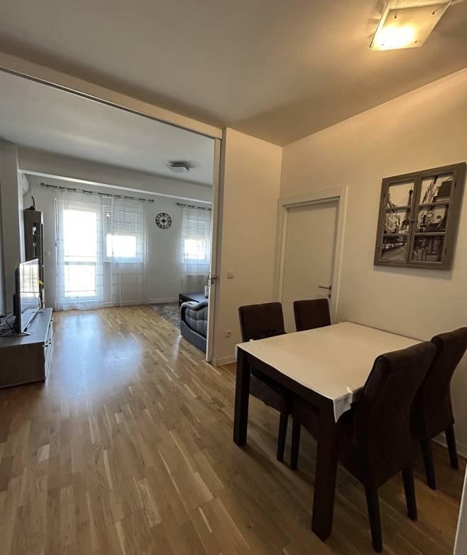 Izdaje se moderan trosoban stan u kompleksu Dunavske terase na Karaburmi, sa terasom i pogledom na Dunav. Sastoji se od ulaznog hodnika, open space kuhinje sa trpezarijom i dnevnim boravkom, koji se po potrebi može odvojiti kliznim vratima, kao i spavaćeg bloka sa dve spavaće sobe i kupatilom. U stanu se nalazi i gostinski toalet, kao i terasa sa prelepim pogledom na Dunav. Grejanje je centralno sa kalorimetrima, što omogućava plaćanje po potrošnji, dok klima uređaj dodatno doprinosi komforu tokom cele godine. Postoji mogućnost zakupa do dva garažna mesta uz stan. Dunavske terase predstavljaju moderan stambeni kompleks sa svim potrebnim sadržajima u neposrednoj blizini – prodavnicama, restoranima, kafićima i stanicama gradskog prevoza. Lokacija je mirna i prijatna za život, a istovremeno odlično povezana sa centrom grada. Posebnu prednost predstavlja blizina šetališta uz Dunav, koje pruža dodatne mogućnosti za rekreaciju i uživanje u prirodi. Stan za izdavanje u kompleksu Dunavske terase na Karaburmi predstavlja odličan izbor za udoban život u modernom stambenom kompleksu sa pogledom na Dunav. Posrednička naknada je u skladu sa Opštim uslovima poslovanja Posrednika "DIVIS NEKRETNINE" d.o.o.