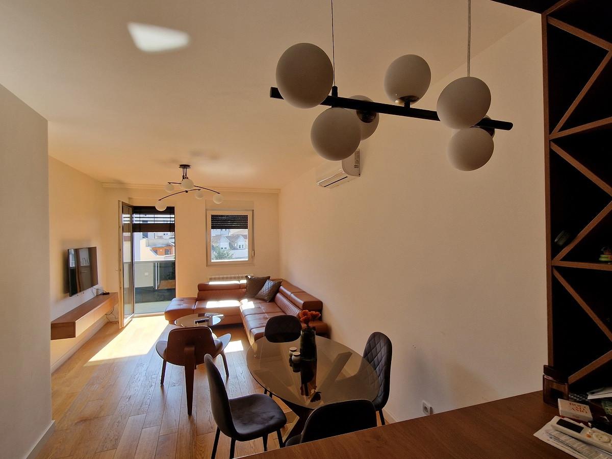 Prodaje se uknjižen dvoiposoban stan na Vračaru, u ulici Mihaila Gavrilovića, u novogradnji iz 2022. godine. Funkcionalno je organizovan i sastoji se od ulaznog hodnika, dnevnog boravka sa kuhinjsko-trpezarijskim delom u open space konceptu, dve spavaće sobe, kupatila i dve terase. Veća spavaća soba poseduje walk-in garderober i izlaz na manju terasu. Stan je dvostrano orijentisan. Dnevni boravak je okrenut ka jugozapadu, što obezbeđuje obilje prirodnog svetla tokom dana. Nekretninu odlikuju kvalitetna gradnja, vrhunski materijali i savremeno uređen enterijer. Grejanje je centralno sa kalorimetrima, a stan poseduje i klima uređaj. Prodaje se kompletno namešten i odmah je useljiv. Postoji mogućnost kupovine garažnog mesta po ceni od 30.000 EUR. Ovaj dvoiposoban stan na Vračaru, u novogradnji, predstavlja odličan izbor za život na jednoj od najtraženijih lokacija u Beogradu. Posrednička naknada je u skladu sa Opštim uslovima poslovanja Posrednika "DIVIS NEKRETNINE" d.o.o