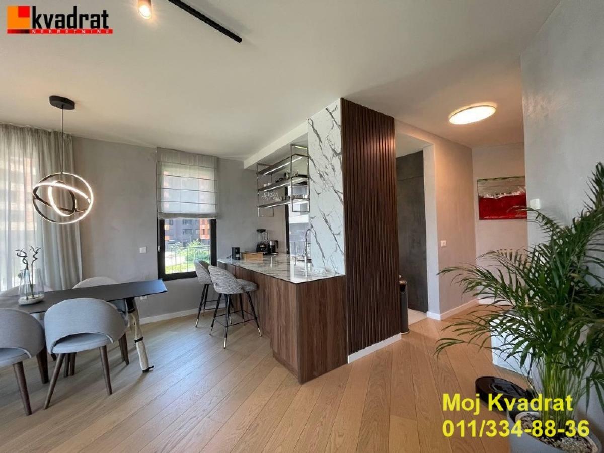 Stari grad, Dorćol - Dunavska - K-District - useljiv, jedinstven životni stil! 4.0, 117m2 (terasa 9m2), 1/4, CG, dva lifta, telefon, interfon, video nadzor, dve garaže U ponudi je komforan i svetao četvorosoban stan, koji se nalazi na jedinstvenoj lokaciji u najstarijem jezgru Beograda - u kulturno istorijskoj celini Kalemegdana, uz Savu i Dunav, u novoizgrađenom stambenom kompleksu K-District na Dorćolu. Stan je na pešačkoj udaljenosti od sportskog centra 25. maj i budućeg linijskog parka. Prodaje se kompletno opremljen nudeći izuzetan komfor i stil života budućim stanarima. Čine ga prostran dnevni boravak povezan sa trpezarijom i kuhinjom, master spavaća soba sa kupatilom, dve spavaće/dečije sobe, kupatilo, toalet za goste sa vešernicom, kao i prelepa terasa sa pogledom na unutrašnjost kompleksa i 25.maj. Prostor je izuzetno svetao, velikih staklenih površina, sa visinom plafona od 2,80 m. Enterijer je moderno dizajniran i opremljen kvalitetnim nameštajem, ugradnom tehnikom, klima uređajem i rasvetom. Stanu pripadaju dva garažna mesta na 1. nivou, sa cenom od 30.000e za svako. Zgrada poseduje dva lifta, obezbeđenje, portira, video nadzor, kao i sopstveni garažni prostor. Pored stambenog i poslovnog, K-District ima sadržaje namenjene deci, odmoru i rekreaciji, dok prodavnice, restorani, kafei, knjižare i galerije kompletno naselje čine udobnim, prijatnim i potpunim. Kompleks je bogat drvećem i zelenilom, a poseban kvalitet donosi mu buduća promenada – široka pešačka zona koja će ostaviti otvoren pogled sa Kalemegdana ka reci, a svojim uređenim šetalištem povezivati Beogradsku tvrđavu sa Beton halom i Dunavom. Kalemegdan i Luka Beograd dobijaju novu, prirodnu sponu. Za deset minuta hoda stižete u Knez Mihaillovu, a za petnaest ste u Narodnom pozorištu. U Zoo vrtu ili parku - za pet. Od Savamale vas deli svega dva kilometra, a od Skadarlije tek kilometer i po. I strogi centar grada i poslovne zone, i kulturnoistorijski spomenici i čvorišne infrastukturne tačke, i druga gradska obala i najpoznatija gradska promenada – sve vam je tu. Građevinska dozvola. Agencijska provizija 2%