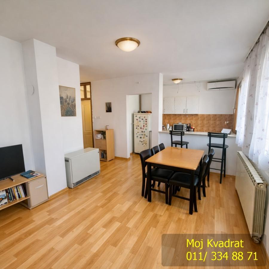 Zemun, Save Kovačevića - Milana Uzelca 2.0, 49m2 (terasa 6m2), 1/2, EG/gas i struja, klima, telefon, interfon, KATV, internet Prodaje se izuzetno svetao i funkcionalan dvosoban stan od 49m2 u naselju Sava Kovačević, u blizini Prvomajske ulice. Stan se nalazi na prvom spratu, od dva, u kući sa ukupno četiri stana. Stan se sastoji od dnevne sobe sa trpezarijom, kuhinje, kupatila, spavaće sobe, hodnika i terase. Grejanje je centralno-etažno za celu kuću, na struju ili gas. Stan ima ugrađen inverter klima uređaj. Izuzetna gradnja, sendvič zid pruža izvanrednu zvučnu i toplotnu izolaciju prostora. Uknjižen na 49m2 korisne površine. Agencijska provizija 2% Agent: Bogdan Obradović 064/29-70-370 (licenca br.5599)