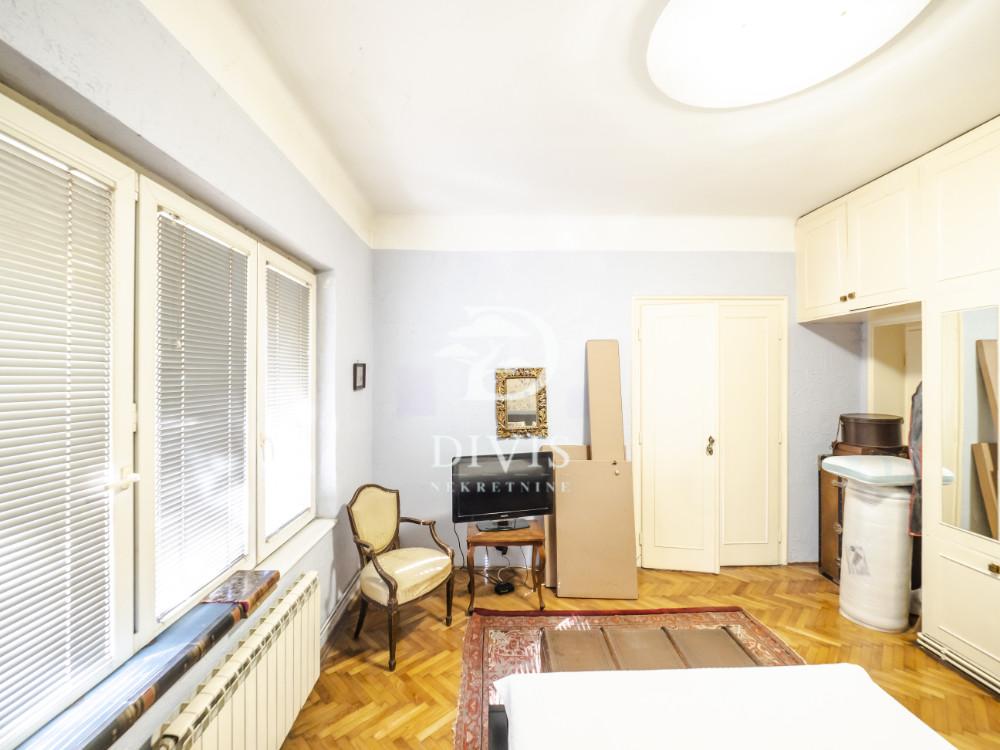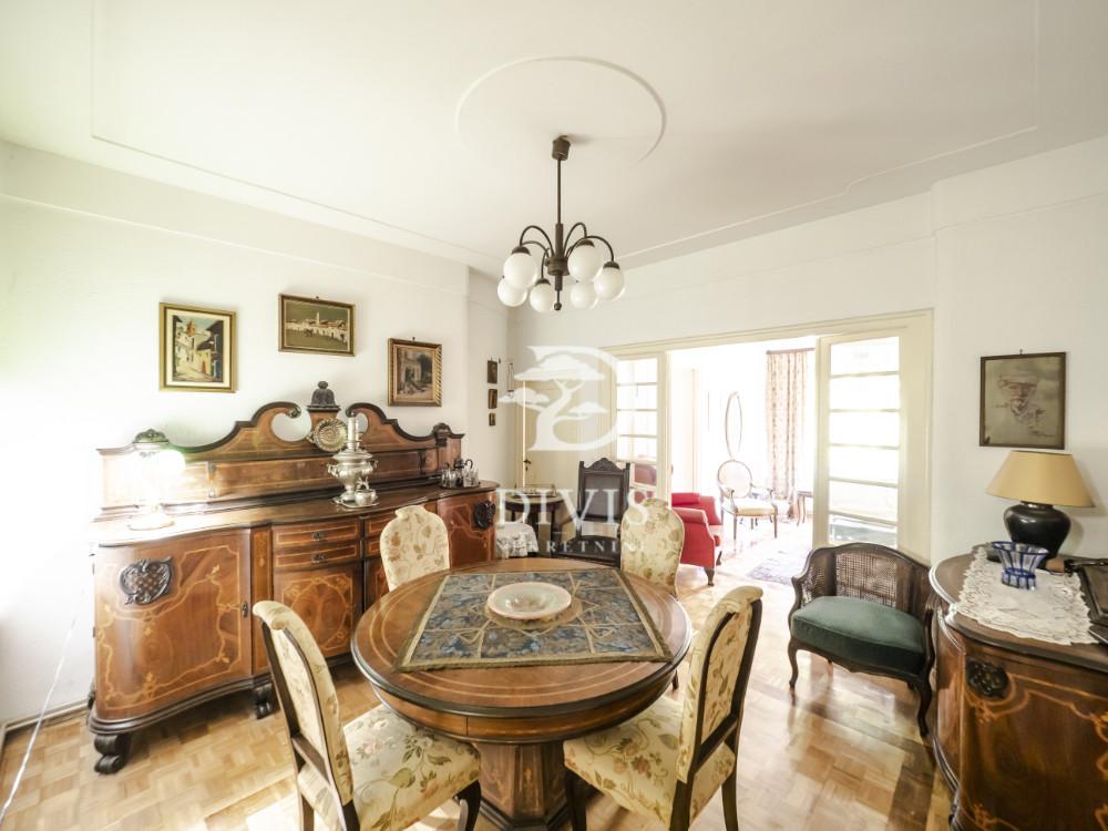 Prodajemo salonski stan na Vračaru, u Njegoševoj ulici, na jednoj od najprestižnijih lokacija u neposrednoj blizini Kalenić pijace. Smešten na prvom spratu reprezentativne zgrade iz 1932. godine, projektovane od strane renomiranog beogradskog arhitekte, ovaj stan nosi sve odlike predratne gradnje, visoke plafone, pravilne proporcije i izražen salonski karakter. Stan je dvostrano orijentisan i funkcionalno organizovan. Sastoji se od ulaznog hodnika, antrea, dva centralna salona orijentisana ka Njegoševoj ulici, toaleta, kupatila, kuhinje i dodatne sobe. Posebnu vrednost ovoj nekretnini daje činjenica da poseduje čak tri terase, sa izlazom iz svake prostorije, što je retkost i dodatno doprinosi osećaju prostranosti, svetlosti i komfora. Ukupna površina stana iznosi 119 m² sa terasama, dok unutrašnja površina ima 108 m². Stan je uknjižen na 1/2, bez tereta i zabeležbi. Zahvaljujući svojoj lokaciji, strukturi i autentičnosti, ova nekretnina predstavlja izuzetnu priliku kako za ekskluzivno stanovanje, tako i za poslovni prostor visokog nivoa, advokatsku kancelariju, predstavništvo ili estetski studio. Retka ponuda na tržištu, za svaku preporuku! Salonski stan na Vračaru, u Njegoševoj ulici, površine 119 m², sa tri terase i autentičnim karakterom, predstavlja izuzetnu nekretninu za stanovanje ili reprezentativan poslovni prostor. Posrednička naknada je u skladu sa Opštim uslovima poslovanja Posrednika "DIVIS NEKRETNINE" d.o.o