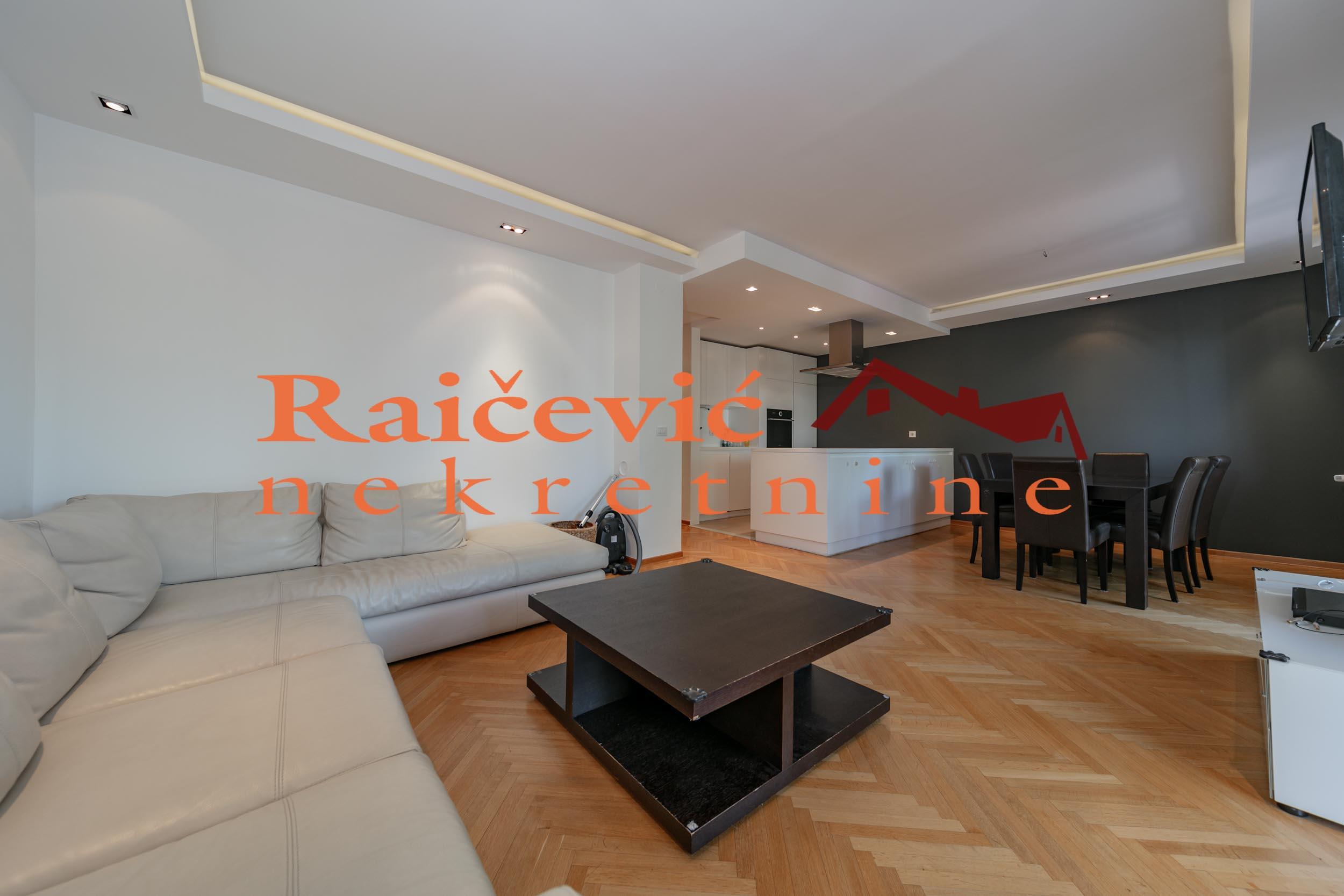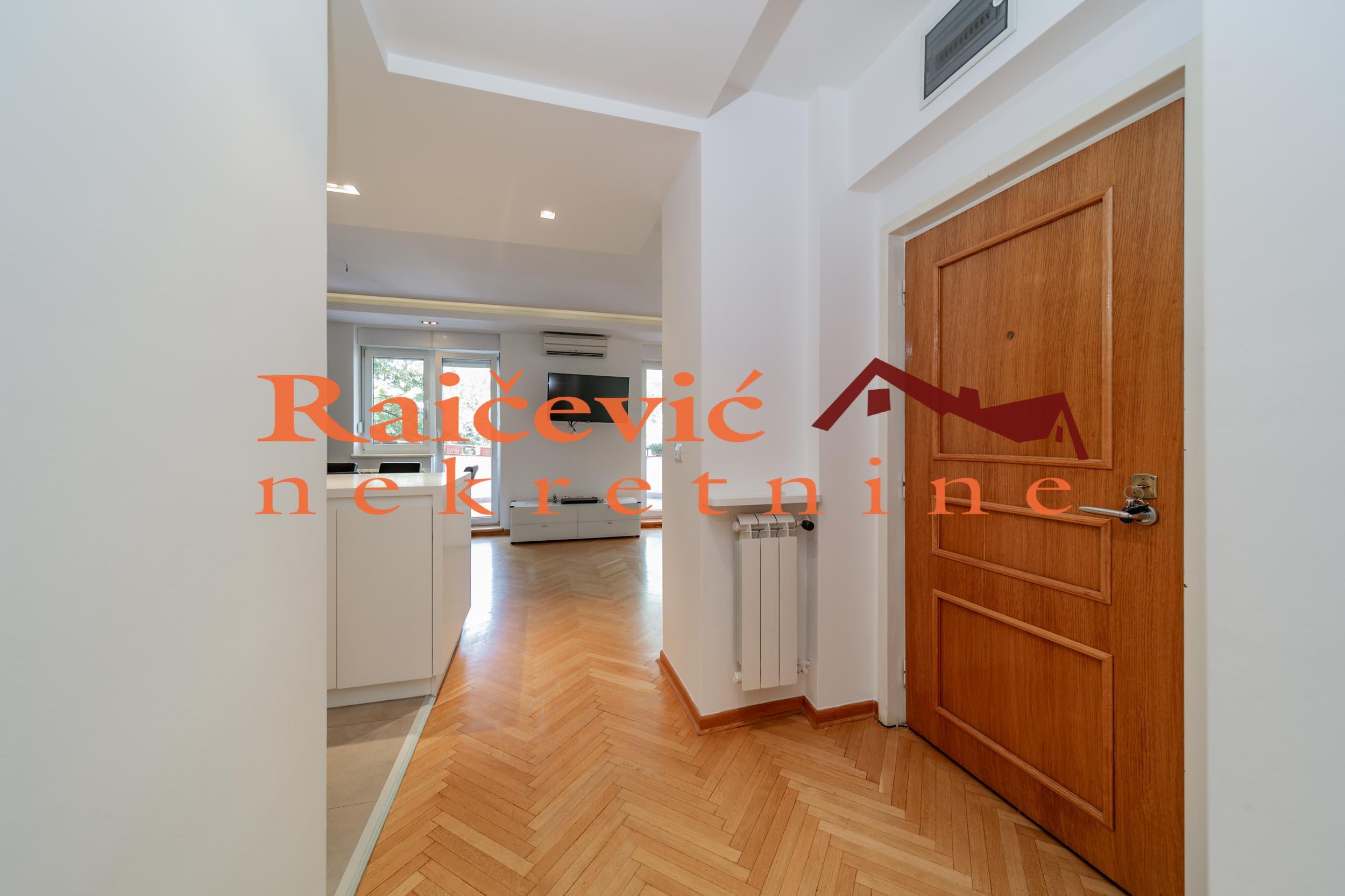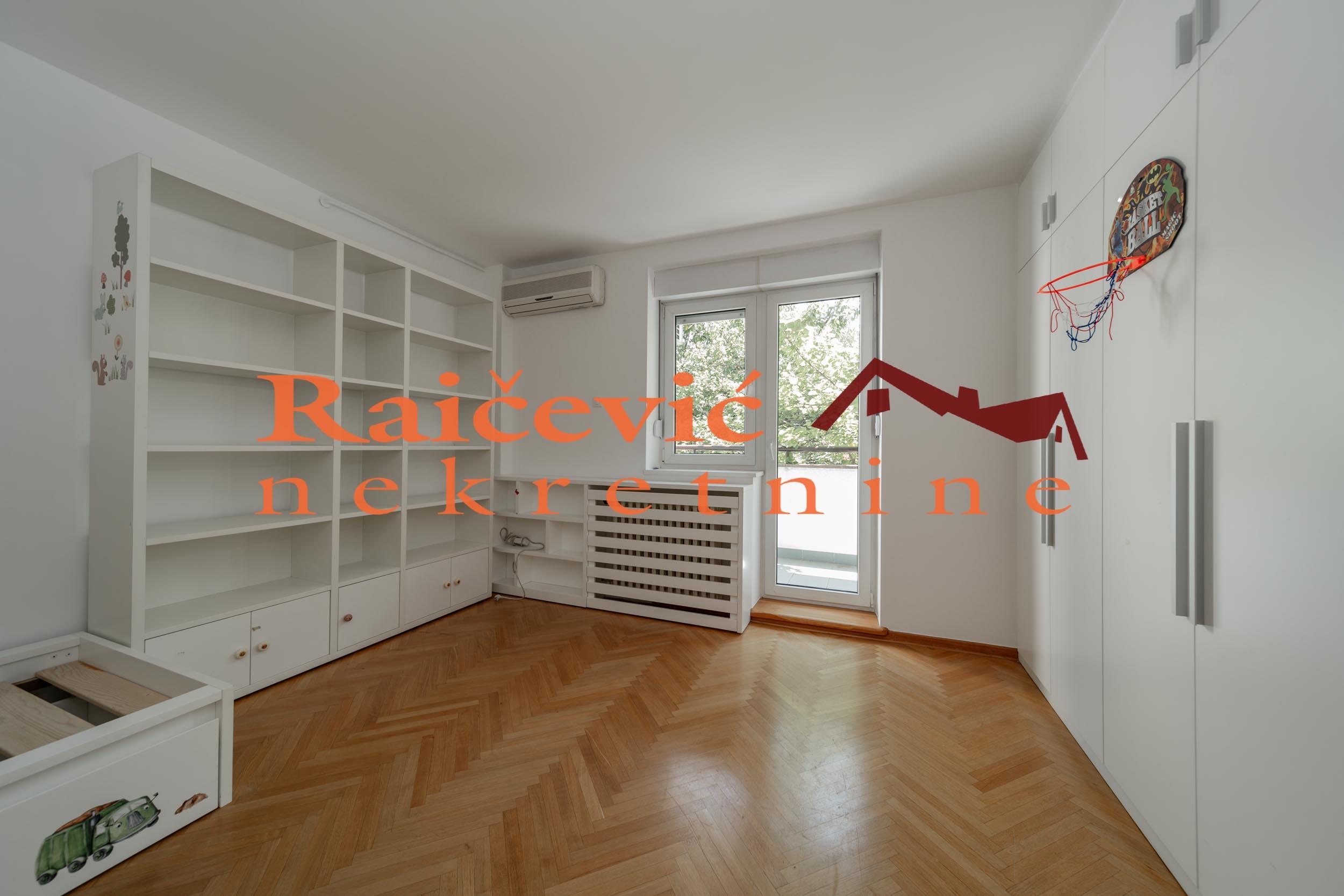 Kosutnjak, Blagoja Parovica, 3.0, 102 m2 sa terasom i lodjom, II od III sprata, cg, telefon, bez lifta, interfon, internet, ktv, useljiv od 01. maja, polunamesten, uknjizen na 102 m2, garaza u ceni zakupa. DIVAN TROSOBAN STAN SA GARAZOM! U ekskluzivnom delu Banovog Brda, nadomak Kosutnjaka, bazena, vrtica i stranih skola u mirnoj ulici u maloj zgradi nalazi se ovaj divan porodicni trosoban stan okruzen zelenilom. Kompletno renoviran, dvostrano orijentisan, svetao, odlicnog rasporeda i komfornih prostorija. Dnevni boravak, trpezarija i kuhinja modernog dizajna cine skladnu celinu koja izlazi na divnu suncanu terasu. Odvojen spavaci blok cine 2 spavace sobe koje izlaze na lodju (7.3 m2), kupatilo i degazman. Stan se izdaje polunamesten (kuhinja, ugradni plakari i kupatilo). Prostorije: dnevni boravak sa trpezarijom i kuhinjom, terasa, hodnik, gostinjski toalet, degazman, 2 spavace sobe, kupatilo i lodja. Stanu pripada i pomocna prostorija u prizemlju objekta. U cenu je uracunata i garaza (15 m2) koja se nalazi u prizemlju objekta. Dozvoljeni su kucni ljubimci! Cena 1 450 evra + depozit. Agencijska provizija koju placa ZAKUPAC iznosi: 50 % od prve mesecne zakupnine za zakup u trajanju od 1 do 12 meseci. 75 % od prve mesecne zakupnine za zakup u trajanju od 13 do 59 meseci. 100 % od prve mesecne zakupnine za zakup u trajanju od 60 meseci (5 godina) i vise. Kosutnjak, Blagoja Parovica, 3.0, 102 m2, terrace and a loggia, II of III floors, cg, telephone, no elevator, intercom, internet, cable TV, habitable from 01. may, registered on 102 m2, garage is included in the rental price. WONDERFUL THREE-ROOM APPARTMENT WITH A GARAGE! In an exclusive part of Banovo Brdo, close to Kosutnjak, swimming pools, kindergartens and foreign schools, in a quiet street, in a small building, surrounded by greenery, there is this wonderful family three-bedroom apartment. Completely renovated, double oriented (east-west), bright, excellent layout and comfortable rooms. The living room, dining room and kitchen of modern design form a harmonious whole that opens onto a wonderful sunny terrace. A separate sleeping block consists of two bedrooms that open onto the loggia, a bathroom and a gas station. The apartment is for rent semi-furnished (kitchen, built-in wardrobes and bathroom). Rooms: living room with dining room and kitchen, terrace, hallway, guest toilet, degassing room, 2 bedrooms, bathroom and loggia. The apartment also has an auxiliary room on the ground floor of the building. The price also includes a garage (15 m2) located on the ground floor of the building. Pets friendly! Price 1 450 euros/month + deposit. The agency commission paid by the TENANT amounts to: 50 % of the first month's rent for a lease lasting from 1 to 12 months. 75 % of the first monthly rent for a lease lasting from 13 to 59 months. 100 % of the first monthly rent for a lease lasting 60 months (5 years) and more. prostorije Raicevic nekretnine 060/3056058