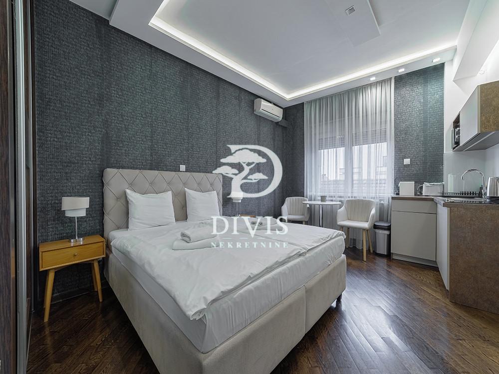 Prodaje se stan kod Trga republike. Prodaje se stan u centru Beograda, u neposrednoj blizini Trga republike, na lokaciji koja pruža autentičan gradski ambijent i neposredan pristup svim važnim sadržajima. Stan je organizovan u više funkcionalnih celina, što omogućava različite načine korišćenja prostora, u skladu sa potrebama budućeg vlasnika. Ovakva struktura daje dodatnu fleksibilnost, kako za stanovanje, tako i za druge namene. Prostor je dvostrano orijentisan i pruža obilje prirodne svetlosti, uz otvorene poglede ka urbanom jezgru grada. Raspored je promišljen i omogućava jasno razdvajanje pojedinačnih zona. Stan je uknjižen na 109m2, dok stvarna površina iznosi 142m2. Nalazi se na 4. spratu predratne zgrade sa liftom. Funkcionalno je organizovan i sastoji se od ulaznog hodnika iz kog se pristupa u četiri odvojene spavaće celine, koncipirane kao zasebni apartmani, što prostoru daje izuzetnu fleksibilnost u korišćenju. Prvi apartman, površine oko 25m2, izdvaja se po posebnom komforu koji pruža đakuzi, kao i kompletno opremljenoj kuhinji. Drugi apartman, od približno 30m2, karakterišu veliki prozori koji prostoru daju obilje prirodne svetlosti, uz potpuno opremljenu kuhinju. Treći apartman, površine oko 20m2, osmišljen je kao kompaktna i funkcionalna celina, idealna za udoban boravak. Četvrti, ujedno i najveći apartman od oko 40m2, poseduje izdvojenu kuhinju i kupatilo, kao i terasu sa direktnim pogledom na Narodno pozorište. Stan je opremljen pažljivo biranim i kvalitetnim materijalima, brazilski parket, aluminijumska stolarija i španska keramika doprinose eleganciji prostora, dok ulazna vrata visokog kvaliteta dodatno naglašavaju sigurnost. Svaka celina poseduje sopstvena sigurnosna vrata sa savremenim načinima otključavanja, odvojenu klimatizaciju i nezavisnu pripremu tople vode. Enterijer je osmišljen sa posebnim akcentom na funkcionalnost i estetiku, uz nameštaj rađen po meri. Ova nekretnina predstavlja izuzetnu priliku kako za investiciju, zahvaljujući svojoj lokaciji i organizaciji prostora, tako i za život u samom centru gradskih dešavanja, spajajući praktičnost, komfor i prestižnu lokaciju. Uknjizen. Stan kod Trga republike, sa fleksibilnom organizacijom prostora i centralnom lokacijom, predstavlja retku priliku na tržištu. Posrednička naknada se obračunava u skladu sa Opštim uslovima poslovanja agencije DIVIS NEKRETNINE DOO.