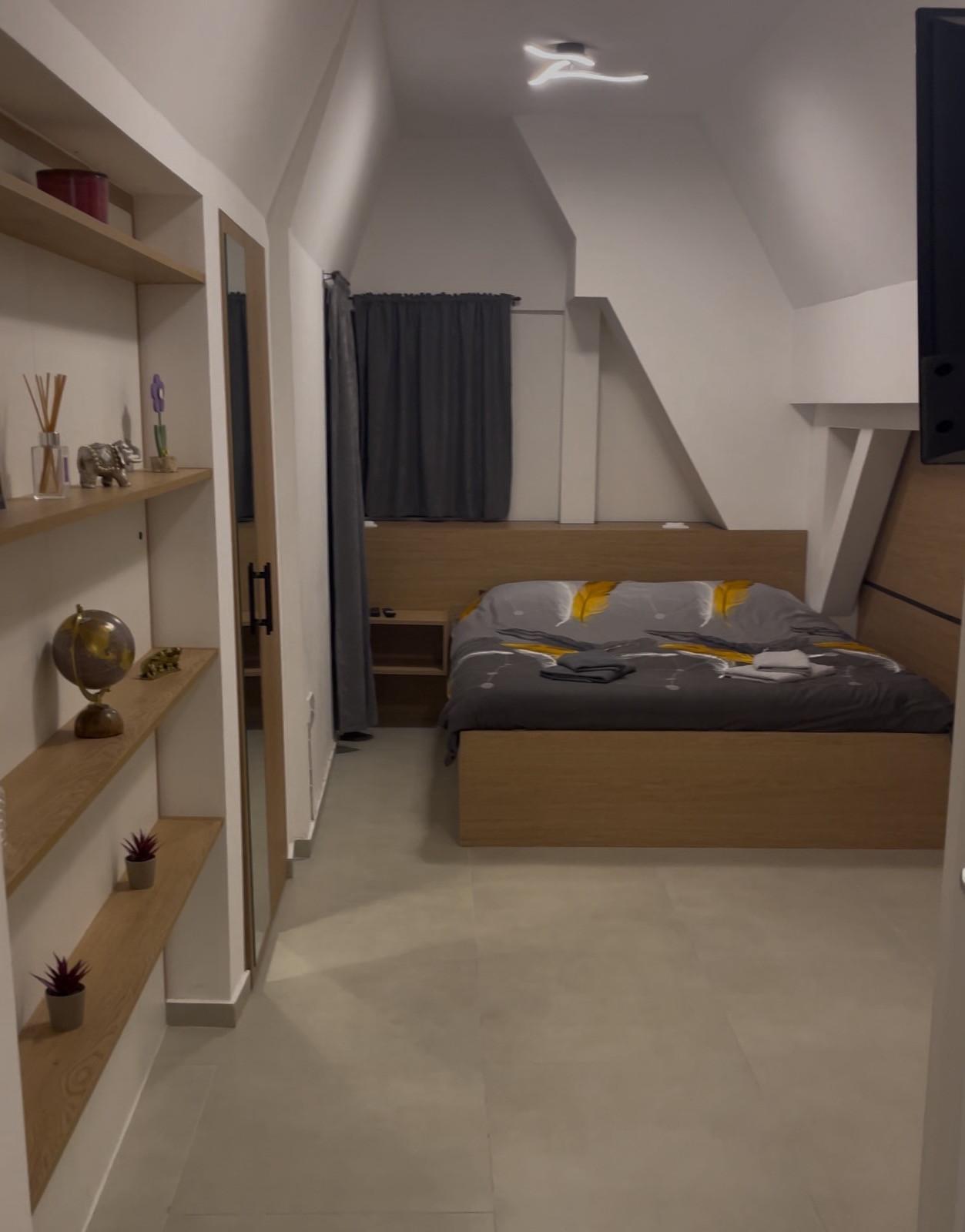 Apartman duplex se nalazi u zgradi na četvrtom spratu (zgrada nema lift) .Zgrada je završena u decembru 2024. Apartman je kompletno opremljen sa nameštajom koji je pravljen po meri. Na donjem nivou apartmana nalazi se dnevni boravak sa ugaonom garniturom na razvlačenje, trpezarijski sto, kompletno opremljena kuhinja sa šporetom ( četiri ringle i rerna), kupatilo, terasa. Na gornjem nivou je predsoblje, veliki deo za spavanje sa francuskim ležajem (sve kosine su zatvorene namenskim ormarima), kupatilo. Ima obezbeđeno parking mesto. Grejanje je podno. Zgrada se nalazi pored hotela Heba na 700m od centra. Prednost lokacije je jer hotel Heba ima svoju stazu za skijanje sa ski liftom i deo staze za sankanje koji se ne naplaćuje. Kontakt 0658745812