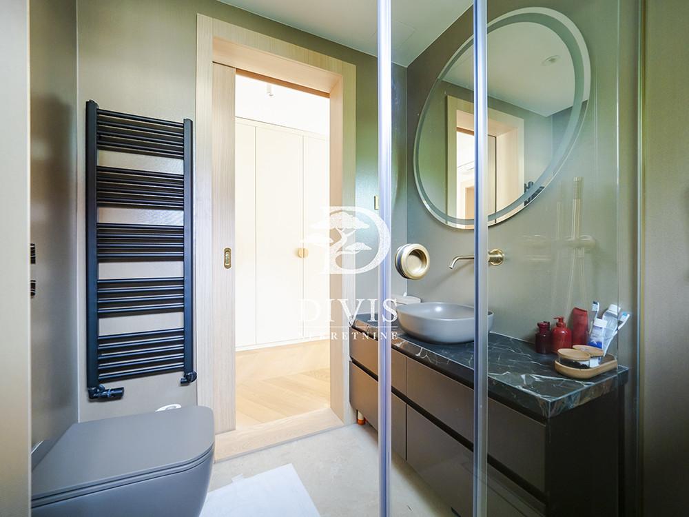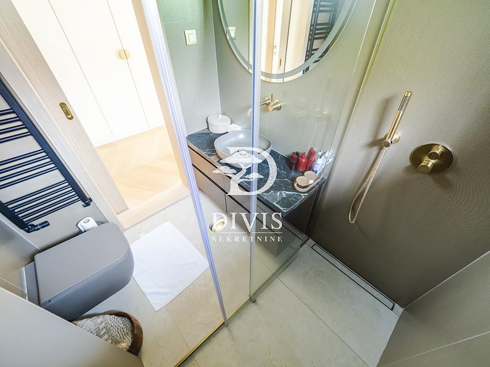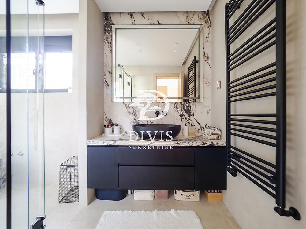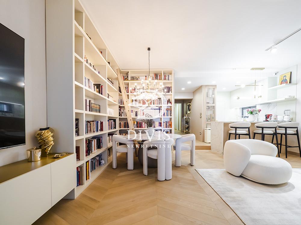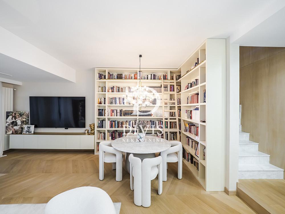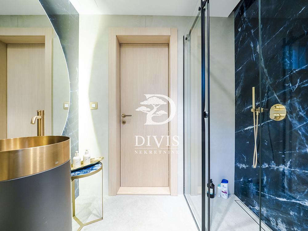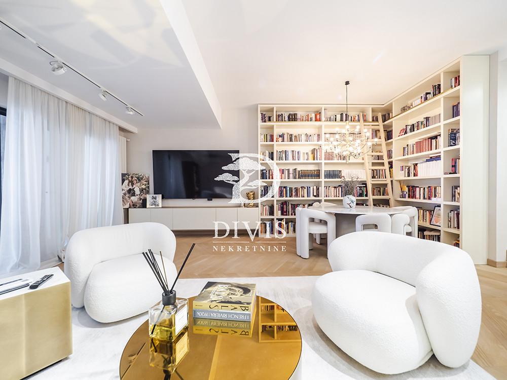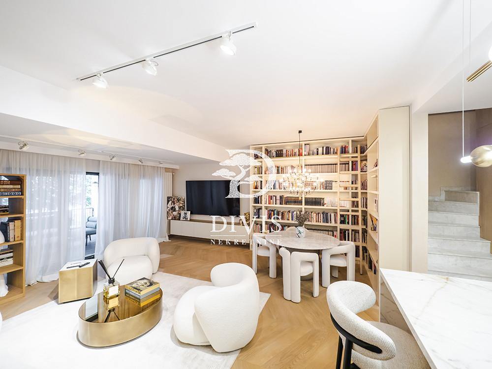 Prodaje se luksuzan četvorosoban stan na Dedinju, u ulici Aleksandra Stamboliskog. Stan se nalazi u maloj zgradi koja pruža apsolutnu intimu i privatnost stanarima, idealno za porodično stanovanje. Stan se prostire na dve etaže, prizemlje i prvi sprat, trostrano je orijentisan i svetao. Na prvoj etaži se nalaze predsoblje, prostran dnevni boravak, kuhinja sa trpezarijom, spavaća soba (koja po potrebi može da bude i radna), garderober, kupatilo i velika, lepa natkrivena terasa. Na drugoj etaži su hodnik i dve fantastične, velike master sobe sa ugradnim garderoberima i kupatilima, od kojih jedna ima i sopstvenu terasu. Ispod stana su dve komforne prostorije koje se mogu koristiti kao vešernica, vinski podrum, ostava i kotlarnica. Grejanje i topla voda su na priključeni na gas, tako da ima protočnu toplu vodu. Kompletno je renoviran 2024. godine. Materijali korisćeni pri renoviranju su vrhunskog kvaliteta. Stan je opremljen kvalitetnim, ugradnim plakarima, garderoberima i ugradnom kuhinjom sa belom tehnikom. Sve prostorije su klimatizovane. Sa terase na prvom nivou se izlazi na zajedničko dvorište površine oko 100m2 ali u realnosti ga koristi samo ovaj stan i izuzetno je lepo i uređeno. Ispred zgrade je pripadajuće prostrano parking mesto na koje bez problema staje i najveći automobil ili možda čak i dva ukoliko stanu jedan iza drugog. Stan je uknjižen na 153m2, premereno ima 170m2, plus dodatnih 20m2 u nivou ispod stana (kotlarnica, vešernica). Izuzetna nekretnina, na atraktivnoj lokaciji. Posrednička naknada je u skladu sa Opštim uslovima poslovanja Posrednika "DIVIS NEKRETNINE" d.o.o