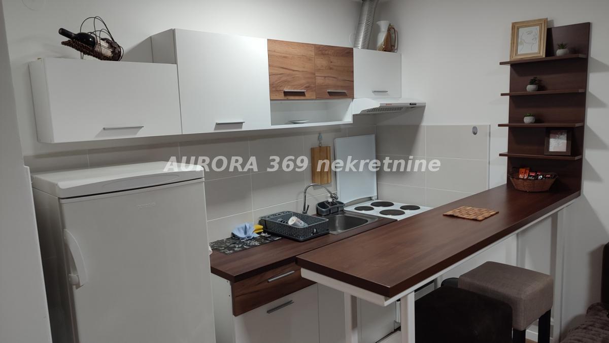Agencija AURORA 369 nekretnine Izdaje stan u Novom Sadu, atraktivna lokacija, Telepska dolina. Stan je kompletno namešten i sve stvari su potpuno nove. Jednosoban je po strukturi. Sastoji se iz open space prostorije, spojene kuhinje, trpezarije i dnevnog boravka. Stan poseduje lepo i komplet opremljeno kupatilo, kao i terasu na koju se izlazi iz dnevnog boravka. Površine je 36m2. Nalazi se na 2. spratu. Zgrada ima dva sprata, nema lift. Parking je ispred zgrade. Grejanje je centralno na struju, a racuni su mali (struja oko 4000, a informatika 2500). Dvorišno je orijentisan, mirno je, nema buke. Stan je od 1.05. spreman za useljavanje. Stan se izdaje na duži period. Može prijava boravka. Cena zakupa je 300eur. Potreban je depozit u visini 1 zakupnine. Agencijska provizija je 150eur. Za više informacija i zakazivanje gledanja, pozovite nas na: 061/300-99-59 Aurora 369 Nekretnine Registarski broj posrednika 1971