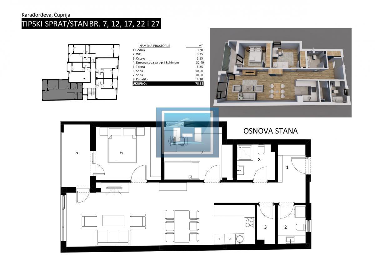 Na prodaju stanovi različitih kvadratura u jednoj od najatraktivnijih lokacija u Ćupriji – sama glavna ulica, idealno za porodično stanovanje ili investiciju. Karakteristike objekta i stanova: PVC stolarija renomirane marke REHAU – vrhunska termo i zvučna izolacija Podno grejanje na gasni kotao – ujednačena toplota tokom cele zime Lift – moderan, pouzdan, prilagođen svim generacijama Interfon i video nadzor – visok nivo sigurnosti Kvalitetna gradnja, funkcionalan raspored prostorija Stanovi raspoloživi u više struktura i kvadratura Lokacija: strogi centar grada, neposredna blizina prodavnica, škole, banaka, pošte i svih ključnih sadržaja. Početak izgradnje Maj 2026., završetak kraj 2027. Za više informacija, cenu i razgledanje stanova — pozovite!