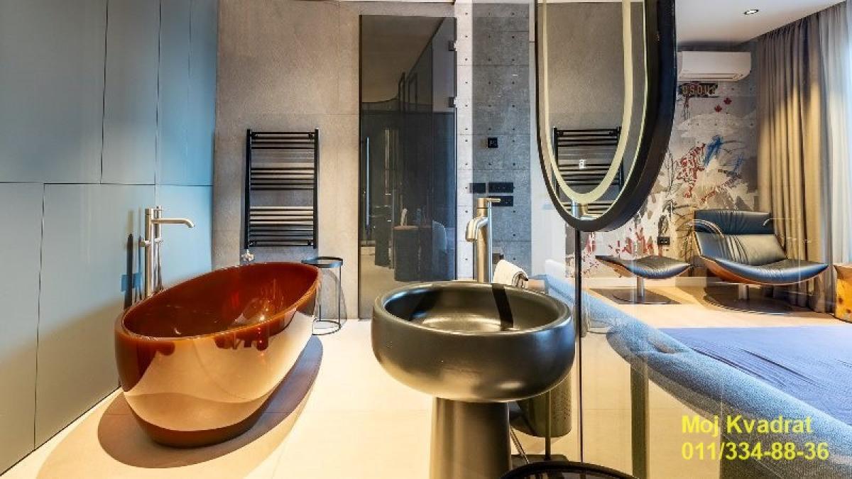 Stari grad, Dunavski kej (Dorćol) - Dunavska 3.0, 193m2 (terasa 70m2), 8/10, CG, tri klime, lift, interfon, internet, obezbeđenje, garaža U ponudi izuzetan trosoban stan u naselju K-District na Dorćolu, sa prelepom terasom i spektakularnim pogledom. Pre dve godine je kompletno opremljen i do detalja opremljen za život. Prostorije: prostrana dnevna soba, veća spavaća soba sa kupatilom, manja soba, kuhinja, hodnik, kupatilo, terasa od 70m2. Dvostrano je orijentisan, ka reci i ka gradu. Izdaje se na minimum godinu i po dana. Depozit je u visini dve mesečne zakupnine. Garažno mesto ulazi u cenu stana. Agencijska provizija u skladu sa Opštim uslovima poslovanja. Agent Svetlana Todorov: 066/239-141 (licenca br.6305) Two bedroom configuration: spacious main bedroom with its own bathroom, another one for children or guest use. Two sides orientation - river and city, all rooms have terrace access. Fully and luxuriously equipped for long-term rent. One parking lot included. Monthly bills around €500. 18 months contract, 2 monthly deposits required.