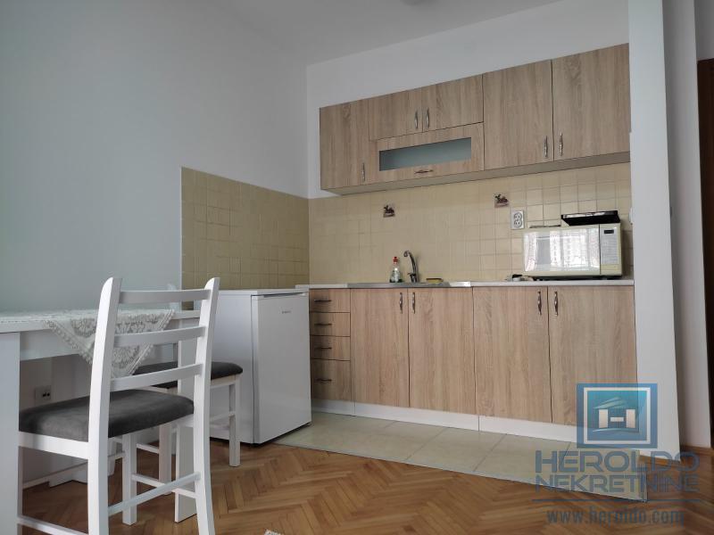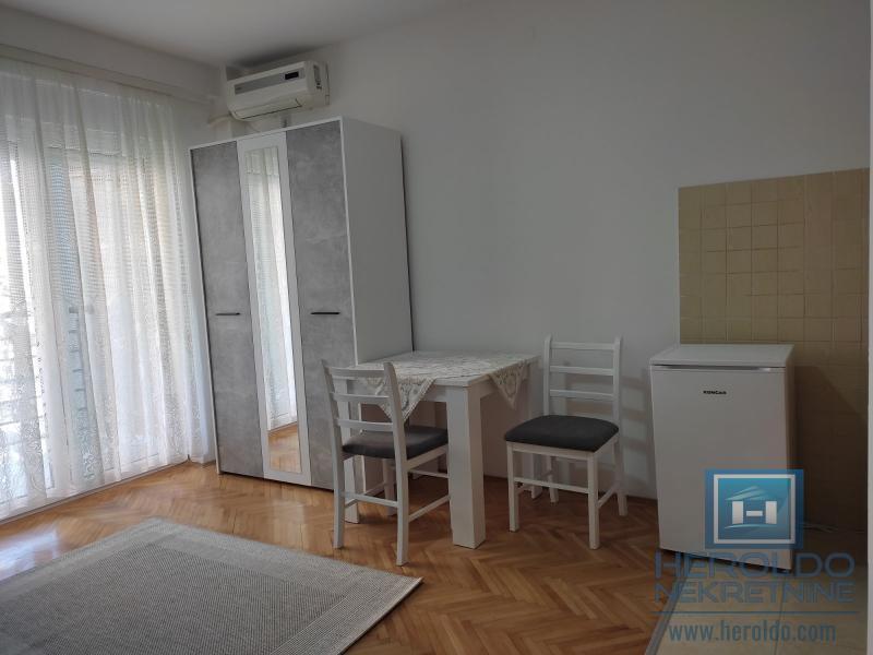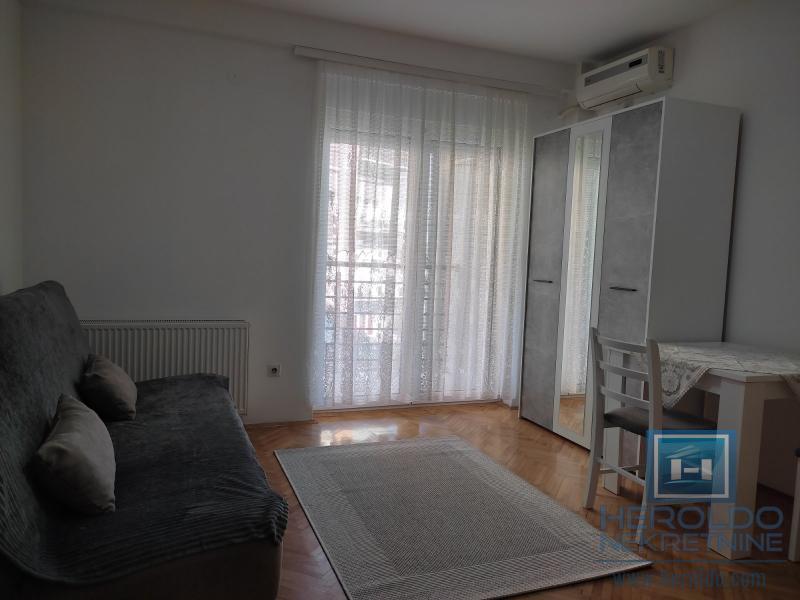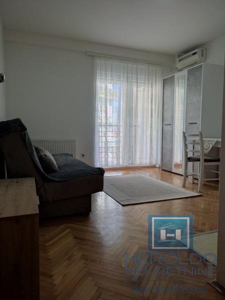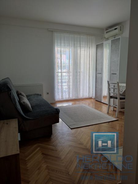 Kompletno nameštena garsonjera na izvanrednoj lokaciji. Uredjaji su u garanciji, kalorimetar, lift, terasa. Slobodan od 01.10.2025