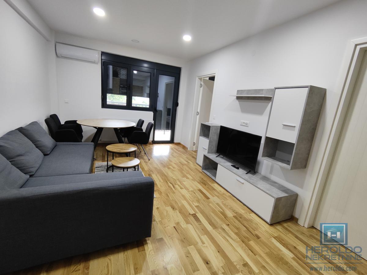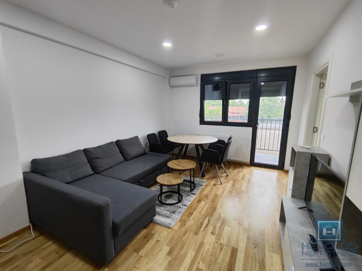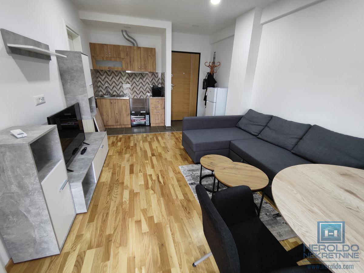 Prelep ,nov,namešten jednosoban stan kod Akva parka. Sastoji se od dnevnog boravka sa kuhinjom i trpezarijom,spavaće sobe,kupatila i terase. U sklopu zgrade su zatvoreni bazeni. U stanu nije dozvoljeno pušenje niti držanje životinja.