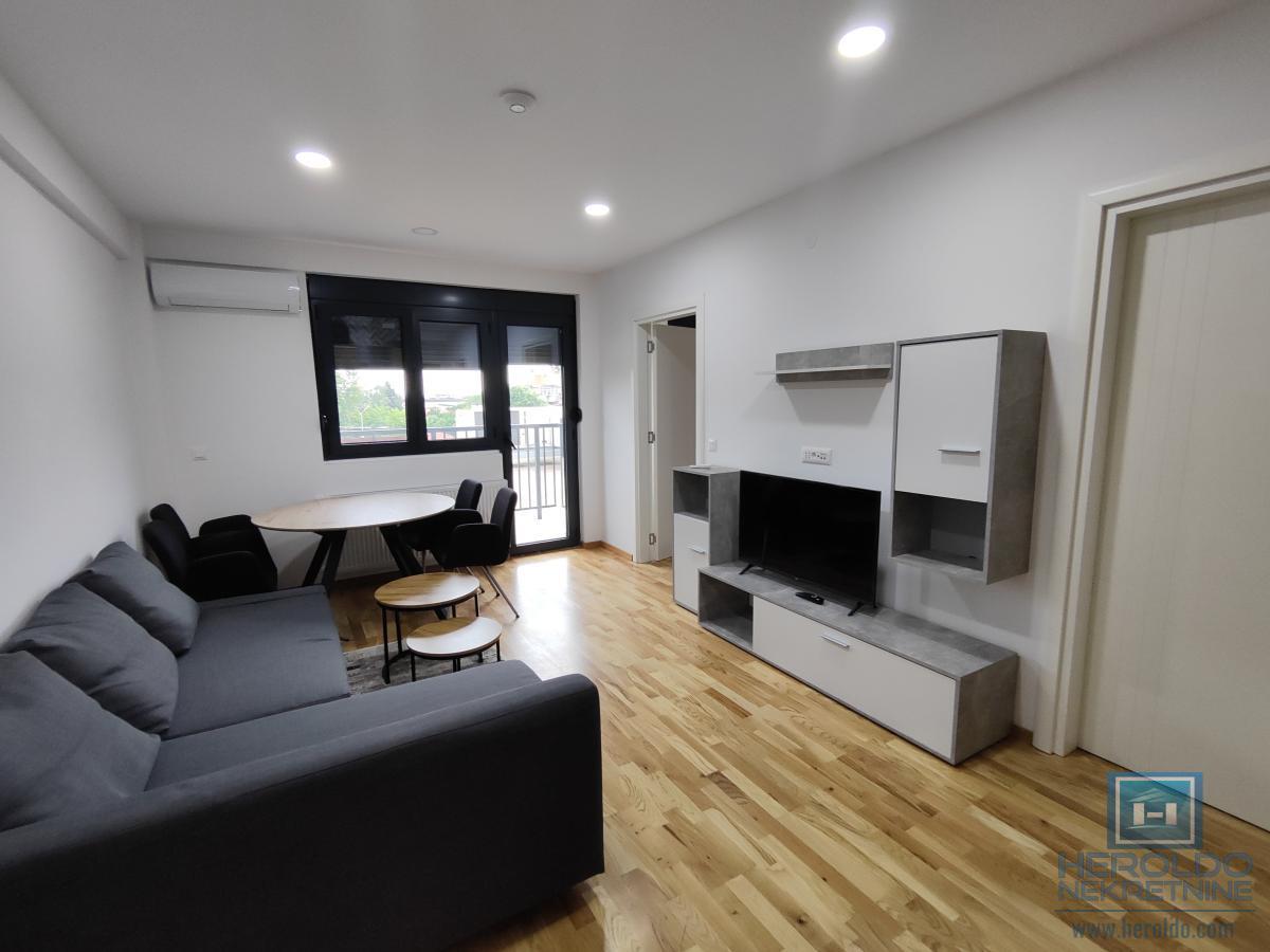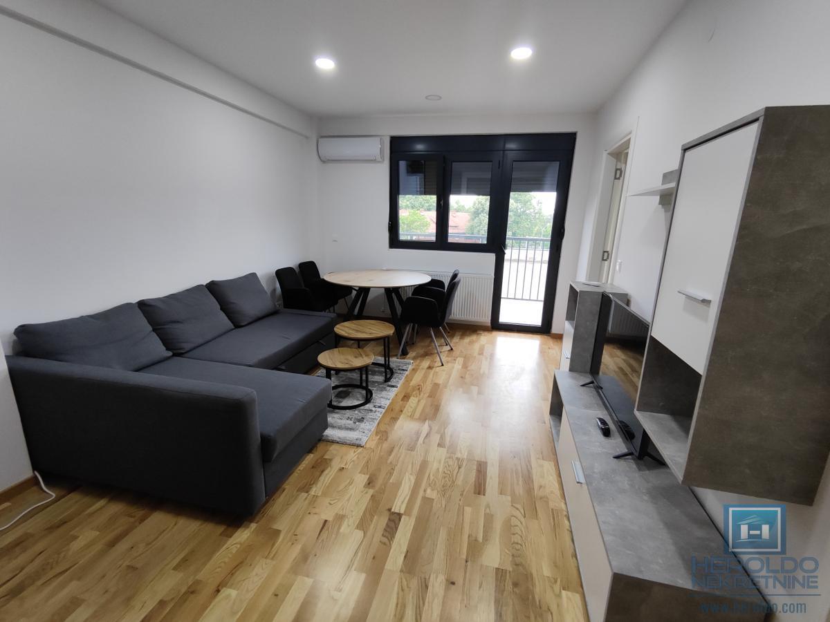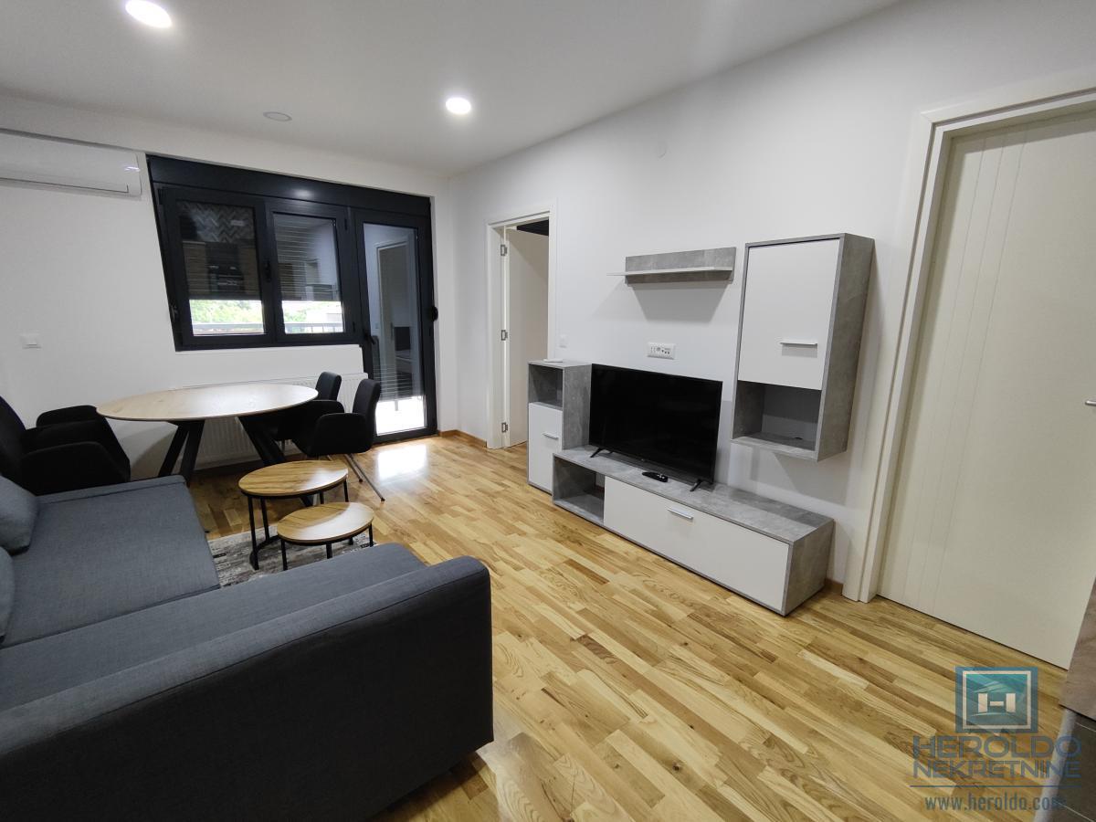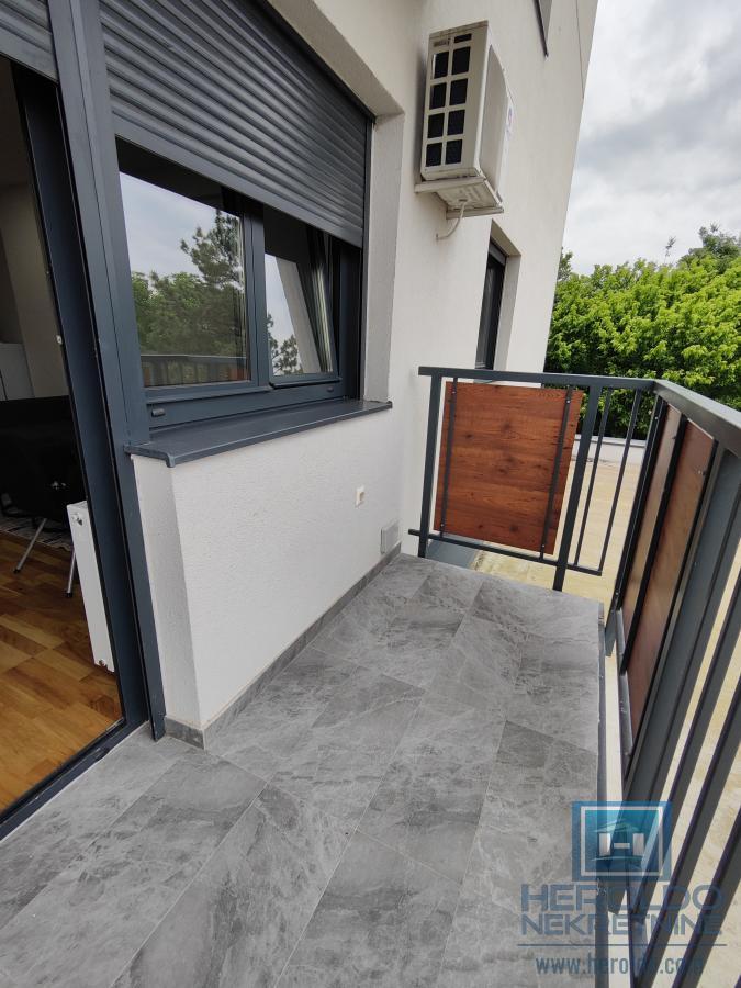 Prelep ,nov,namešten jednosoban stan kod Akva parka. Sastoji se od dnevnog boravka sa kuhinjom i trpezarijom,spavaće sobe,kupatila i terase. U sklopu zgrade su zatvoreni bazeni. U stanu nije dozvoljeno pušenje niti držanje životinja.