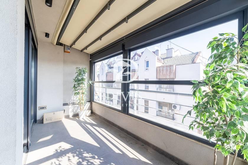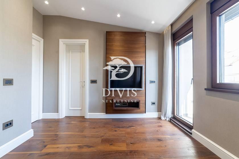 Prodajemo luksuzni penthaus stan, koji se nalazi na jednoj od najtraženijih lokacija u Beogradu. Stan nudi savršen spoj moderne arhitekture, vrhunskog kvaliteta i udobnosti. Stan se nalazi na 5.spratu zgrade novije gradnje i sastoji se od prostrane dnevne sobe sa velikim staklenim površinama koje omogućuju obilje prirodnog svetla, moderne kuhinje, dva kupatila i jednog toaleta, tri spavaće sobe od kojih je jedna master soba sa svojim kupatilom u kome se nalazi i đakuzi kada, (u svim sobama kao i celom stanu ostaju i ugradni ormani ) , dve terase od kojih je velika terasa zastakljena i prozori se otvaraju na daljinski. U opremanju stana je vođeno računa o svakom detalju. Grejanje u stanu je podno i zidno sa toplotnim pumpama, klimatizacija u svim prostorijama, luksuzni parket i pločice, video nadzor i sigurnosni sistemi. Stan je uknjižene površine 152 m2, a stvarna površina je stana je 165m2. Uz stan se prodaju i dva garažna mesta, cena jednog garažnog mesta je 25.000e. Posrednička naknada je u skladu sa Opštim uslovima poslovanja Posrednika "DIVIS NEKRETNINE" d.o.o.