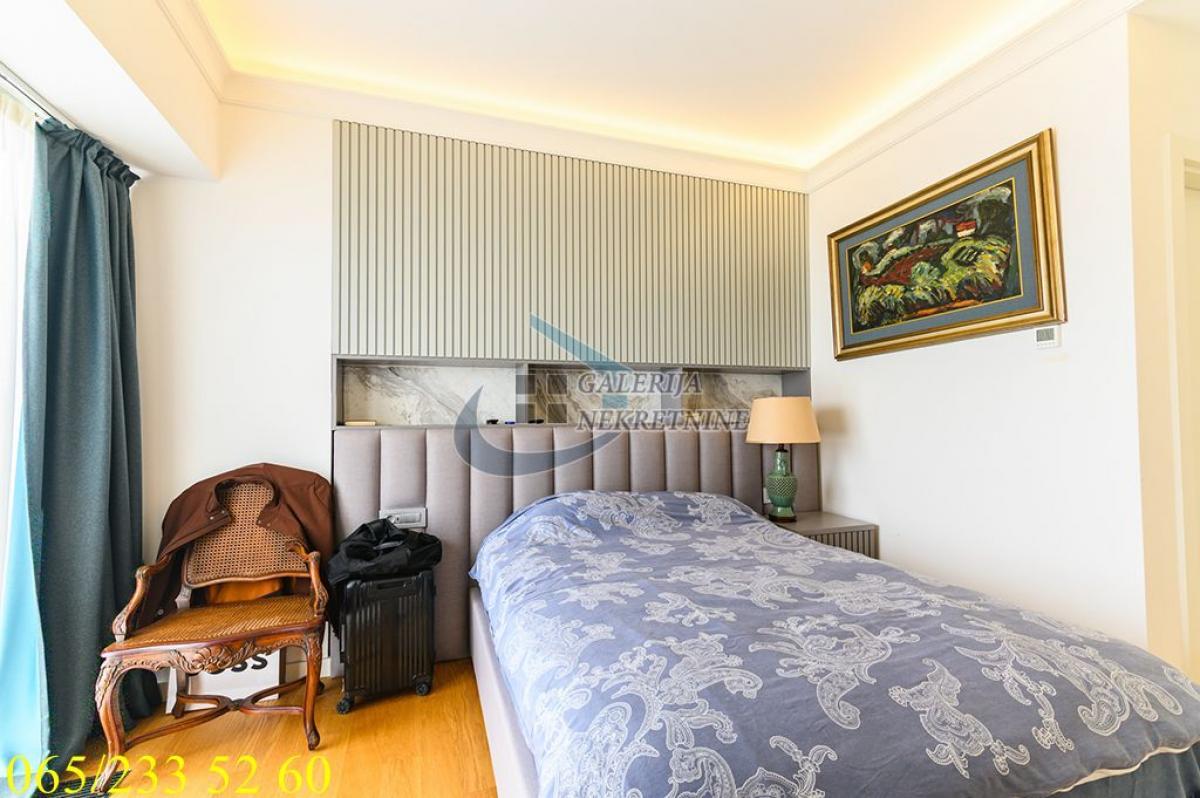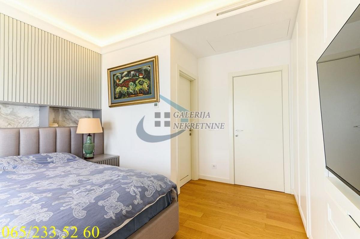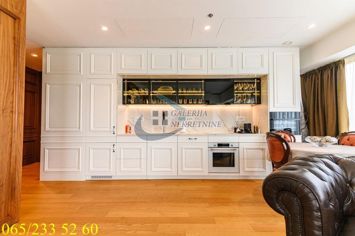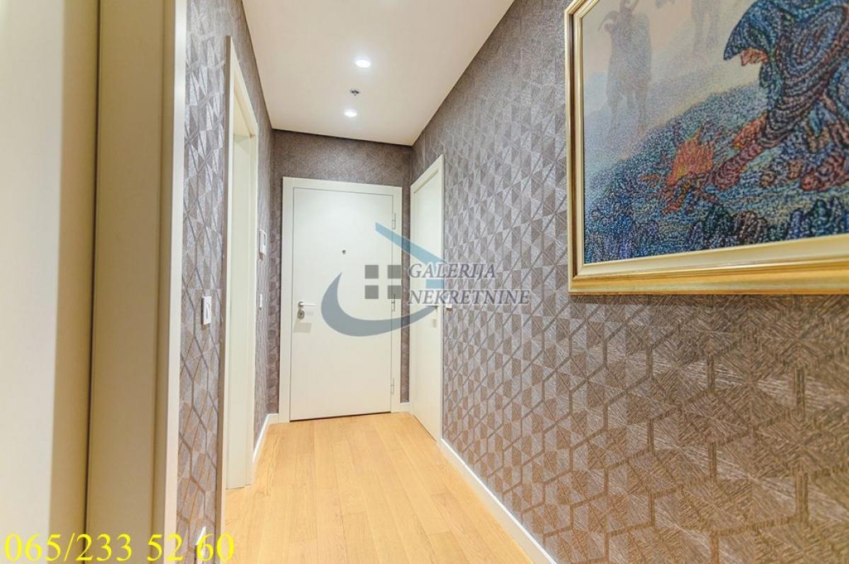 3.0, 95m2, 4/40, CG - gas, KTV, interfon, internet, klimatizovan, 7 liftova, luskuzan, dizajnerski, garaža, bez ulaganja Stan se nalazi na Novom Beogradu, u Bloku 65, u čuvenoj kuli West 65. Ovo je prestižna lokacija koja se ubrzano razvija i urbanistički je isplanirana i zaokružena za akcentom na luksuzan i ugodan život stanovnika, pa je sve što je potrebno u neposrednoj blizini. U prilici smo da Vam ponudimo vrlo komforan i luksuzan trosobni stan na četvrtom spratu nedavno izgrađene kule sa četrdeset spratova i sedam brzih liftova. Na raspolaganju stanarima zgrade je 24/7 obezbeđenje i recepcija, video nadzor, podzemna garaža, bazen, teretana, SPA centar, kozmetički i frizerski salon i direktan pristup shopping centru. Održavanje je redovno i odlično. Stan je ugaono pozicioniran, pretežno istočno orijetnisan i vrlo svetao, čemu doprinose i veliki prozori. Sve prostorije su vrlo komotne i funkcionalno raspoređene, pa je prostor maksimalno iskorišćen. U perfektnom je stanju, dizajnerski uređen, luksuzno opremljen i namešten. Komforu doprinose tri mokra čvora, dva kupatila u za svaku od spavaćih soba, toalet, kao i odvojena prostorija za pranje i sušenje veša. Grejanje i hlađenje je preko centralnog klimatizacionog sistema. U cenu je uključeno garažno mesto u zgradi, lako pristupačno i dovoljno veliko i za veća SUV vozila. Od prostorija: hodnik, dnevno-trpezarijski-kuhinjski deo, dve spavaće sobe, dva kupatila, toalet, vešeraj. Uknjižen na 95m2, brzo useljiv. Agent prodaje: Isak Marčetić 064/1675381
