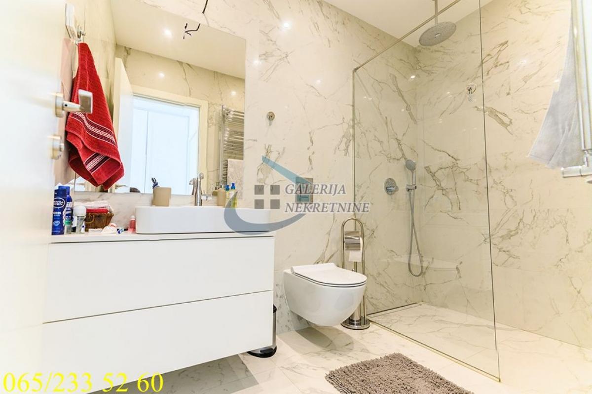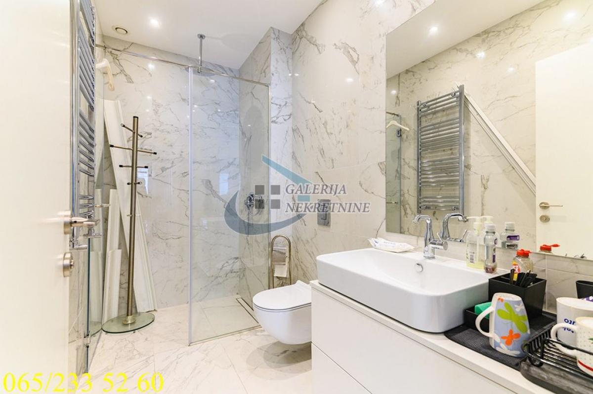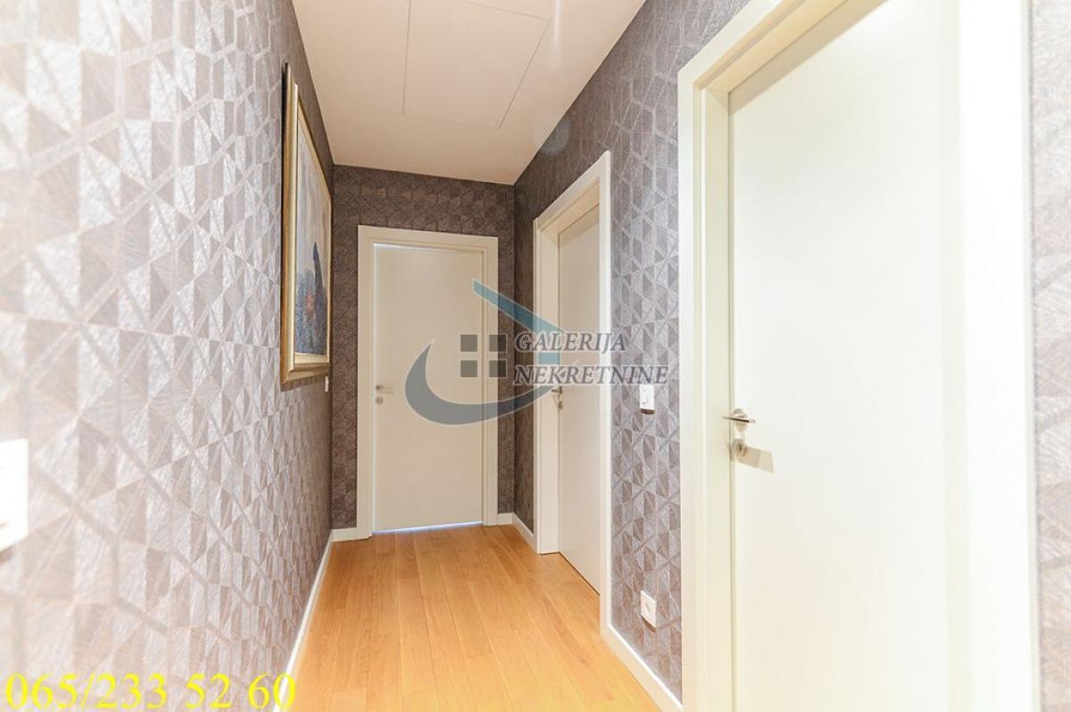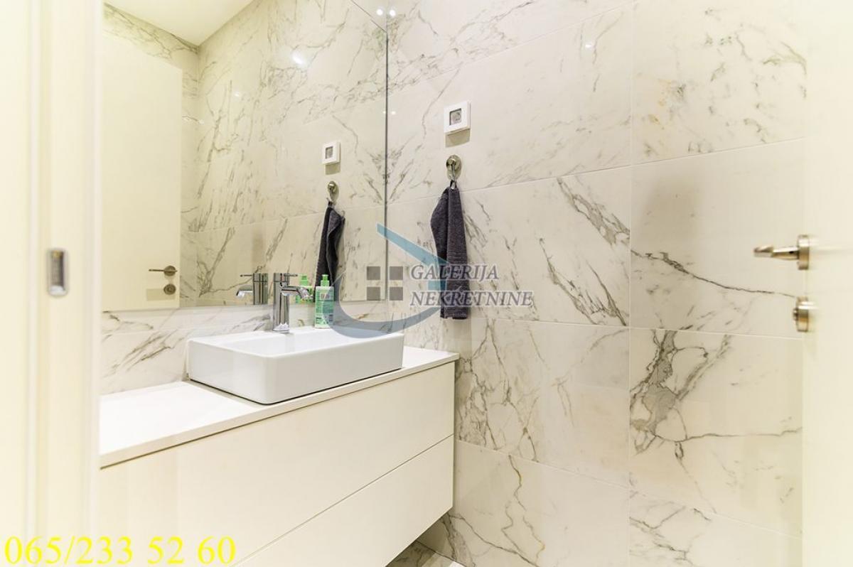 3.0, 95m2, 4/40, CG - gas, KTV, interfon, internet, klimatizovan, 7 liftova, luskuzan, dizajnerski, garaža, bez ulaganja Stan se nalazi na Novom Beogradu, u Bloku 65, u čuvenoj kuli West 65. Ovo je prestižna lokacija koja se ubrzano razvija i urbanistički je isplanirana i zaokružena za akcentom na luksuzan i ugodan život stanovnika, pa je sve što je potrebno u neposrednoj blizini. U prilici smo da Vam ponudimo vrlo komforan i luksuzan trosobni stan na četvrtom spratu nedavno izgrađene kule sa četrdeset spratova i sedam brzih liftova. Na raspolaganju stanarima zgrade je 24/7 obezbeđenje i recepcija, video nadzor, podzemna garaža, bazen, teretana, SPA centar, kozmetički i frizerski salon i direktan pristup shopping centru. Održavanje je redovno i odlično. Stan je ugaono pozicioniran, pretežno istočno orijetnisan i vrlo svetao, čemu doprinose i veliki prozori. Sve prostorije su vrlo komotne i funkcionalno raspoređene, pa je prostor maksimalno iskorišćen. U perfektnom je stanju, dizajnerski uređen, luksuzno opremljen i namešten. Komforu doprinose tri mokra čvora, dva kupatila u za svaku od spavaćih soba, toalet, kao i odvojena prostorija za pranje i sušenje veša. Grejanje i hlađenje je preko centralnog klimatizacionog sistema. U cenu je uključeno garažno mesto u zgradi, lako pristupačno i dovoljno veliko i za veća SUV vozila. Od prostorija: hodnik, dnevno-trpezarijski-kuhinjski deo, dve spavaće sobe, dva kupatila, toalet, vešeraj. Uknjižen na 95m2, brzo useljiv. Agent prodaje: Isak Marčetić 064/1675381