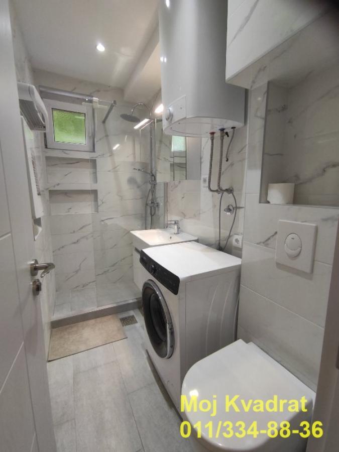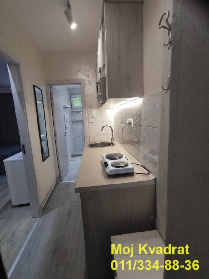 Palilula, Karaburma - Vojvode Micka Krstića 1.0, 25m2, VPR/6, grejanje na struju, interfon Izdaje se odličan jednosoban stan na Karaburmi, u neposrednoj blizini Bogoslovije. Stan se nalazi na visokom prizemlju, dvorišno je orijentisan ka parku zgrade. Potpuno je nov i opremljen za život. Prostorije: prostrana dnevna soba koja sadrži spavaći i deo za boravak, kupatilo i ulazni deo gde je smeštena kuhinja. Grejanje u stanu je na struju. Autobuska stanica jer ispred zgrade, odakle saobraćaju linije 23, 16, 25. Odlična povezanost kako sa centrom, tako i sa drugim delovima grada. U neposrednoj blizini su škole, vrtići, prodavnice... Kućni ljubimcu nisu dozvoljeni! Izdaje se na duži vremenski period. Cena važi za jednu osobu. Depozit u visini jedan mesečne zakupnine. Agencijska provizija u skladu sa Opštim uslovima poslovanja. Agent: Svetlana Todorov 066/239-141 (licenca br.6305)