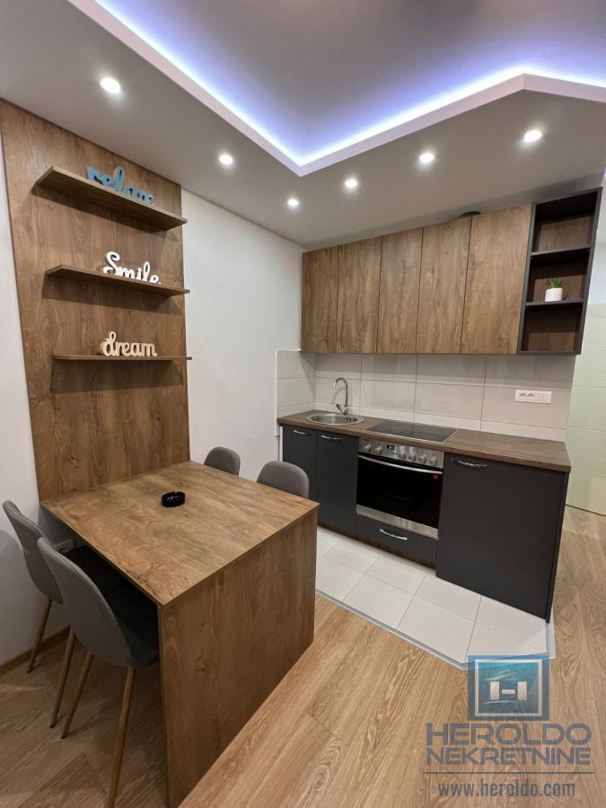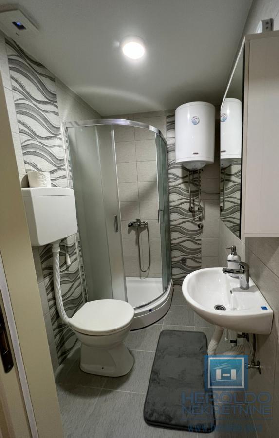 Stan se nalazi u neposrednoj blizini Akva parka,idealan za izdavanje. Prodaje se kompletno namešten. Sastoji se od dnevnog boravka sa kuhinjom, jedne spavaće sobe, hodnika, kupatila i terase. Grejanje je na norveške radijatore. Minimalni mesečni troškovi.