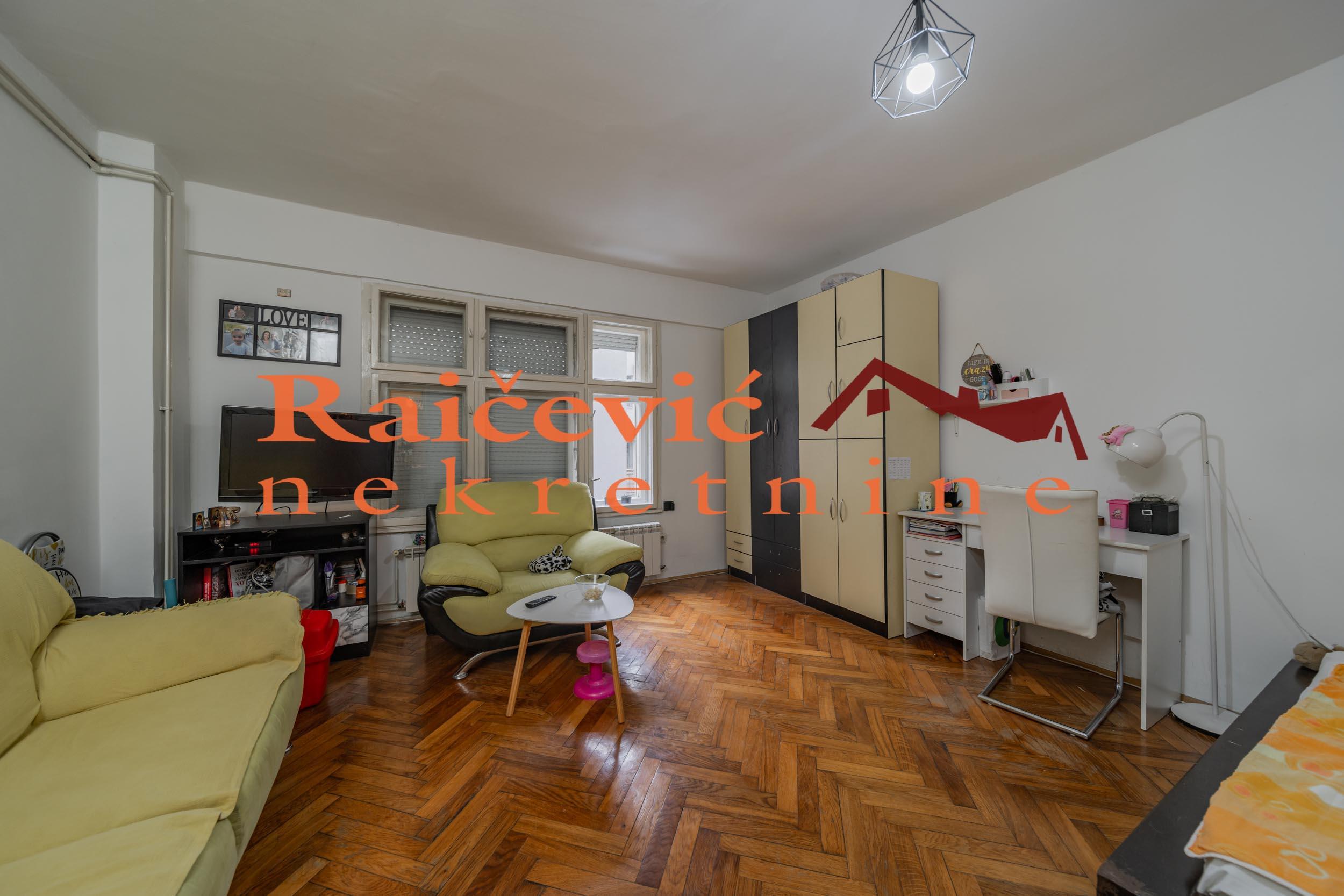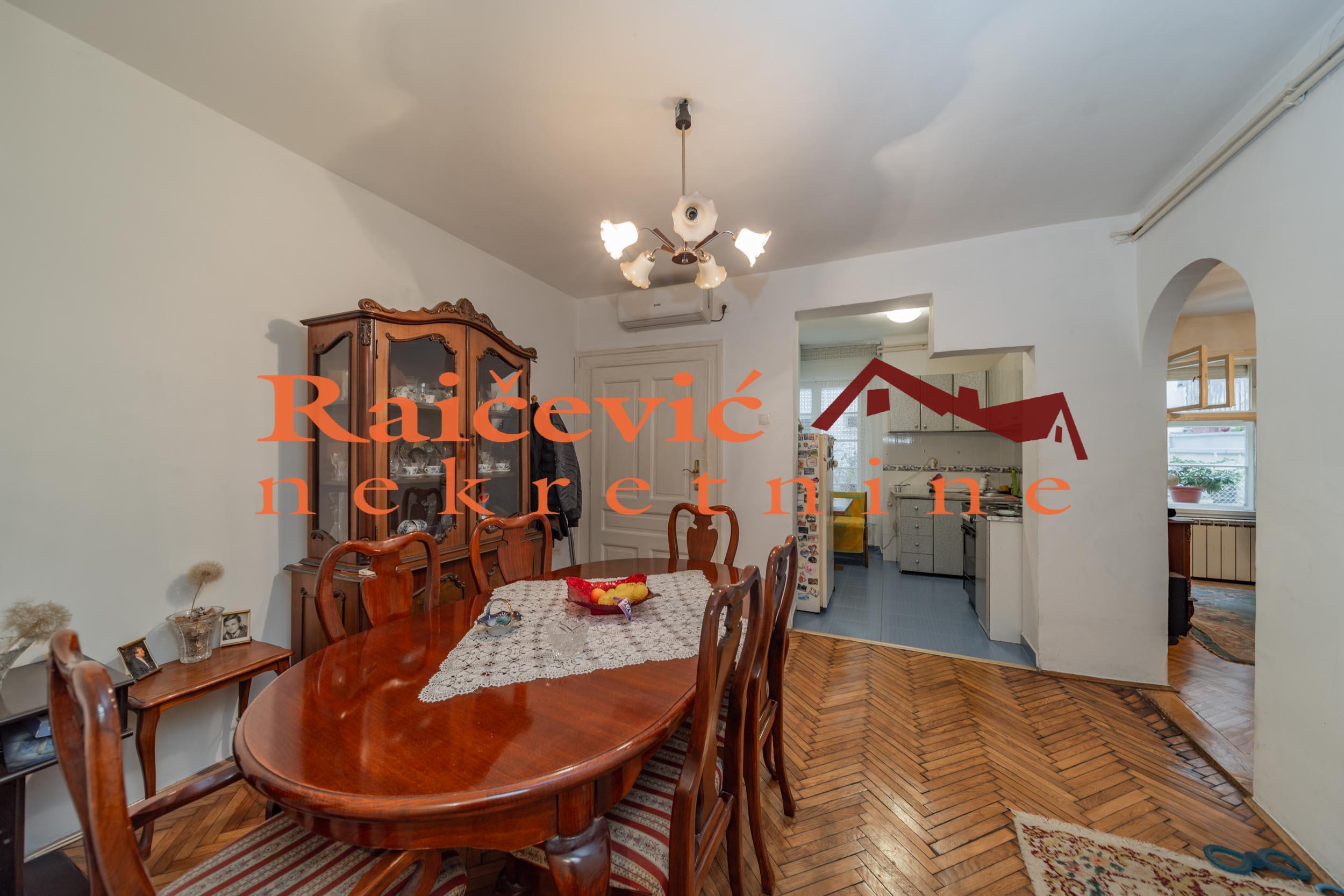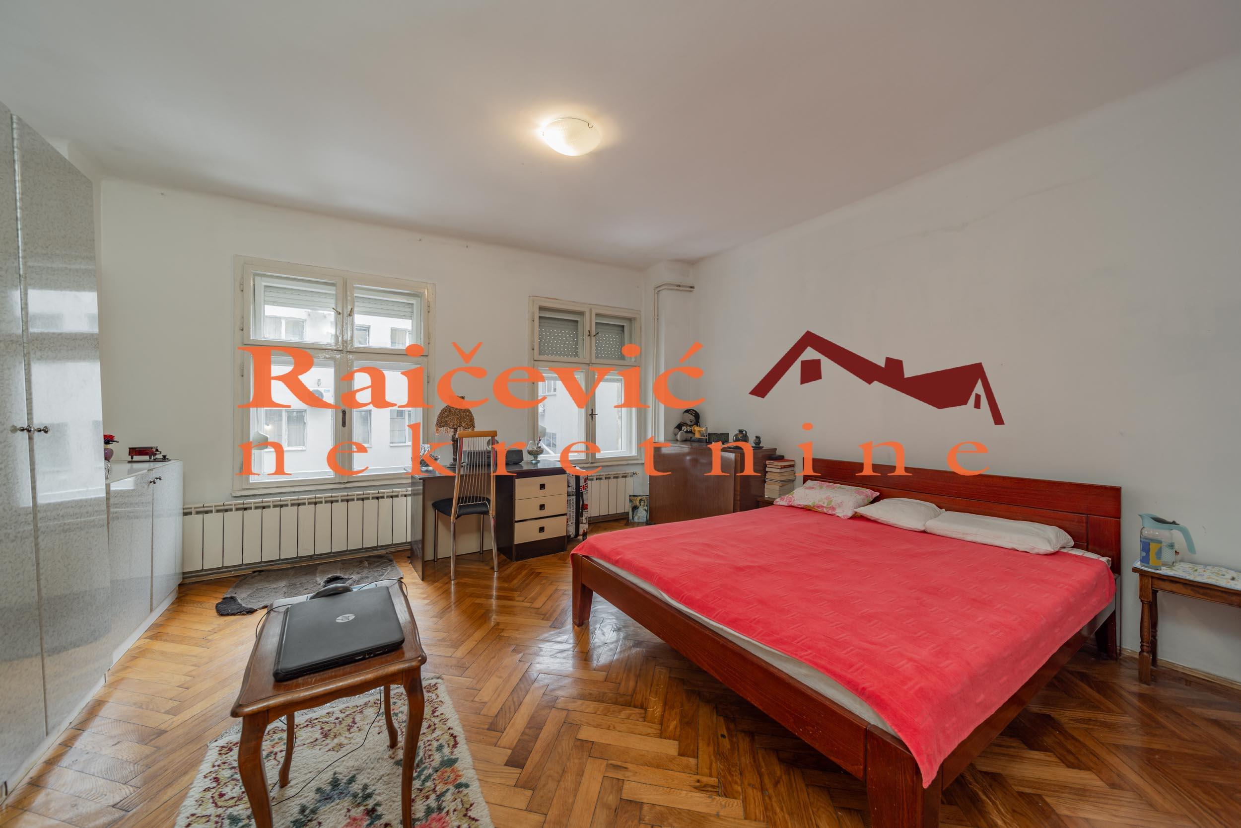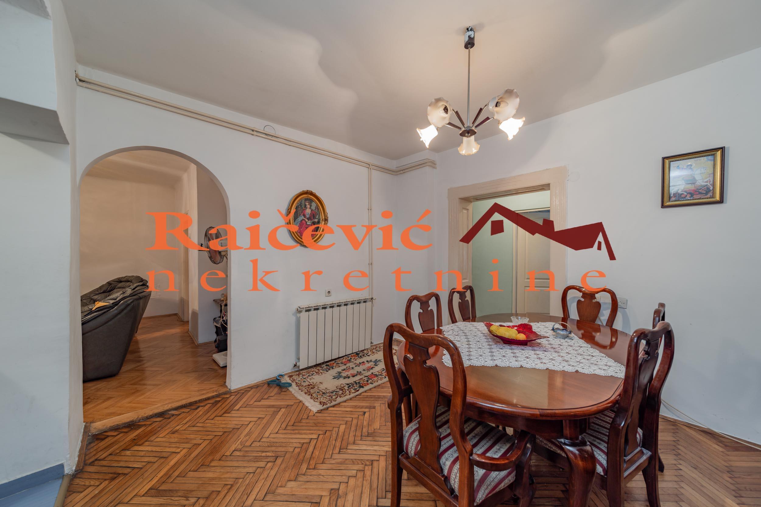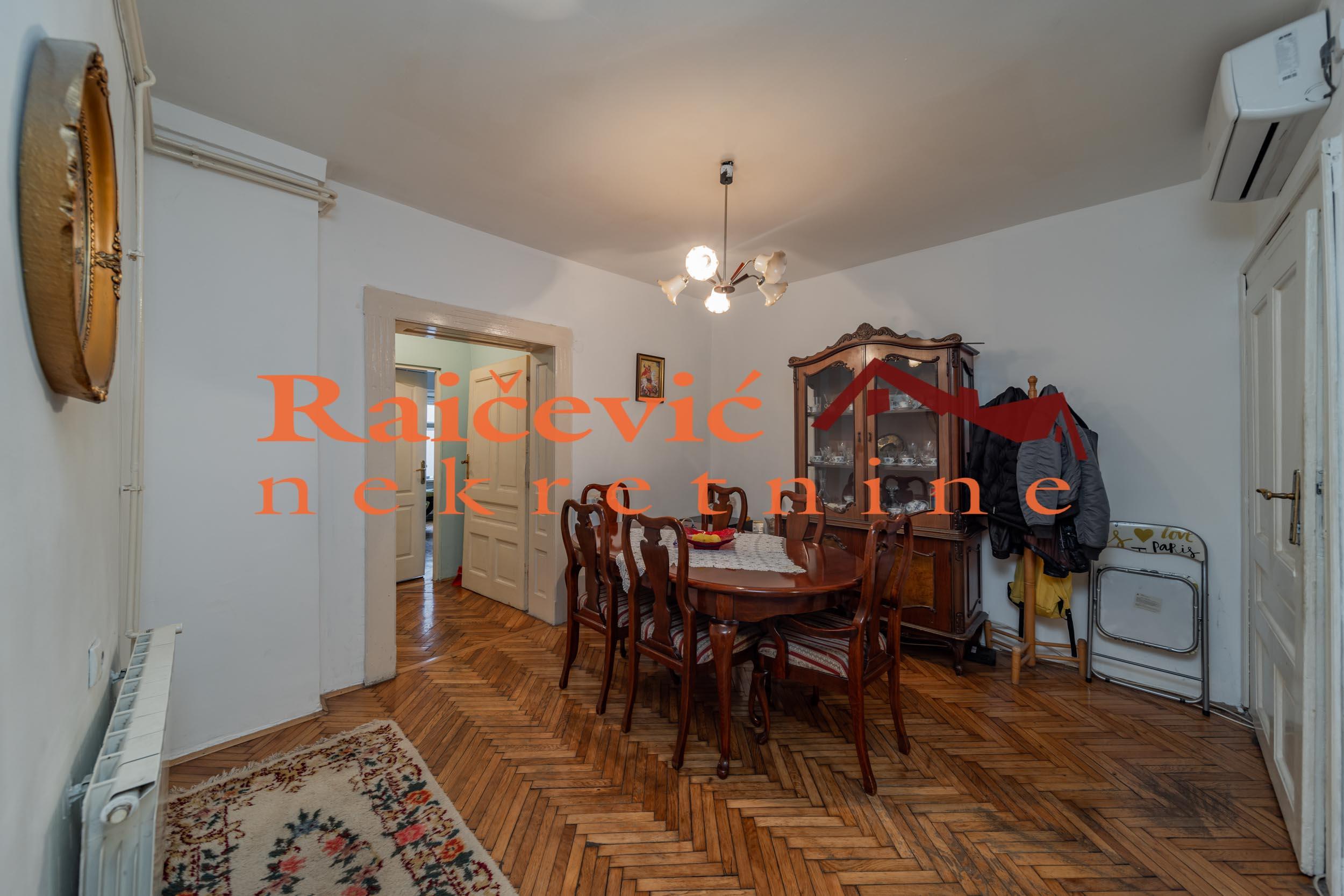 SVI NASI KUPCI DOBIJAJU VREDAN POKLON! Centar, Karadjordjeva, 3.0 (adaptibilan u 4.0), 95 m2, terasa, VPR od V spratova, cg, bez lifta, interfon, video nadzor, ktv, klima, useljiv po dogovoru, delimicno renoviran, uknjizen na 95 m2, podrum, parking mesto za stanare u dvoristu zgrade, starogradnja iz 1921. godine. Funkcionalan stan na atraktivnoj lokaciji. Dvostran, dvorisno orijentisan, bez buke. Kruzan, prostran, sa mnogo potencijala za adaptaciju. Parking mesto u dvoristu sa rampom, samo za stanare zgrade. Glavni ulaz je iz hodnika, drugi ulaz u stan je sa zajednicke terase. Prostorije: hodnik, dnevni boravak, kuhinja, trpezarija, drugi hodnik, 2 spavace sobe, kupatilo i prolazna ostava sa 2 ulaza. Adaptacijom spavacih soba mogu da se dobiju 3 manje sobe. U blizini hotela Bristol, Geozavoda, Beograda na vodi, Starog savskog i Brankovog mosta, Ekonomskog fakulteta, Zelenog venca, mnogih komercijalnih, usluznih i trgovackih sadrzaja. Cena 270 000 evra. Kupite ovu nekretninu preko agencije Raicevic nekretnine i POKLANJAMO VAM idejno resenje dizajna enterijera! Pozovite nas za vise informacija. Agencijska provizija koju placa KUPAC iznosi 2 % od dogovorene kupoprodajne cene. Raicevic nekretnine 064/1959991