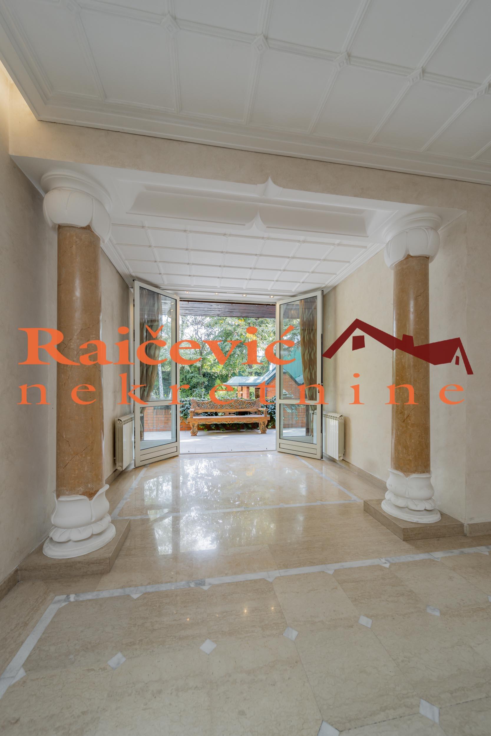 SVI NASI KUPCI DOBIJAJU VREDAN POKLON! RETKO U PONUDI! Senjak, Banjickih zrtava, kuca povrsine 593 m2, terasa, na placu od 12 ari, PR + I + PTK, eg-gas, bez lifta, interfon, ktv, klima, uknjizena, parking mesta za vise vozila. U najlepsem delu Senjaka, u sigurnoj i mirnoj stambenoj zoni okruzenoj diplomatskim rezidencijama, prodajemo ekskluzivnu, luksuznu i veoma kvalitetnu kucu sa placem od 12 ari. Kuca ima tri nivoa, osnova prizemlja je 180 m2. Plac je ravan, idealnog oblika, sa prelepom bastom i visedecenijskim stablima koja okruzuju bazen. Poseban kvalitet ove neobicno lepe nekretnine je visoka ograda kojom je plac ogradjen. Zaklonjenost od pogleda, mir i tisina doprinose osecaju potpune intime. Sa sprata se pruza divan pogled na Kosutnjak. Kuca je u odlicnom stanju, zidana najkvalitetnijim materijalima, trenutno idealno podeljena u tri nezavisne celine koje se bez dodatnih intervencija mogu povezati u jedan prostor u skladu sa potrebama. Kuca ima cetiri ulaza, pet kupatila, tri kuhinje, saunu. U dvoristu ima parking mesta za vise vozila. Cena 3 400 000 evra. Kupite ovu nekretninu preko agencije Raicevic nekretnine i POKLANJAMO VAM idejno resenje dizajna enterijera! Pozovite nas za vise informacija. Agencijska provizija koju placa KUPAC iznosi 2 % od dogovorene kupoprodajne cene. Raicevic nekretnine 063/380184