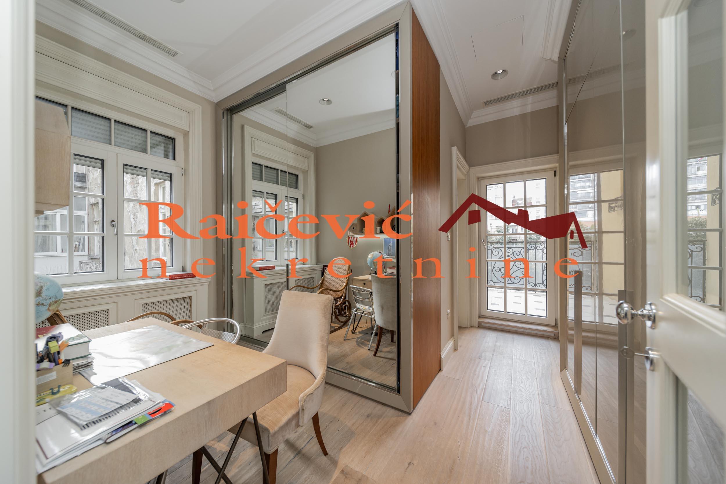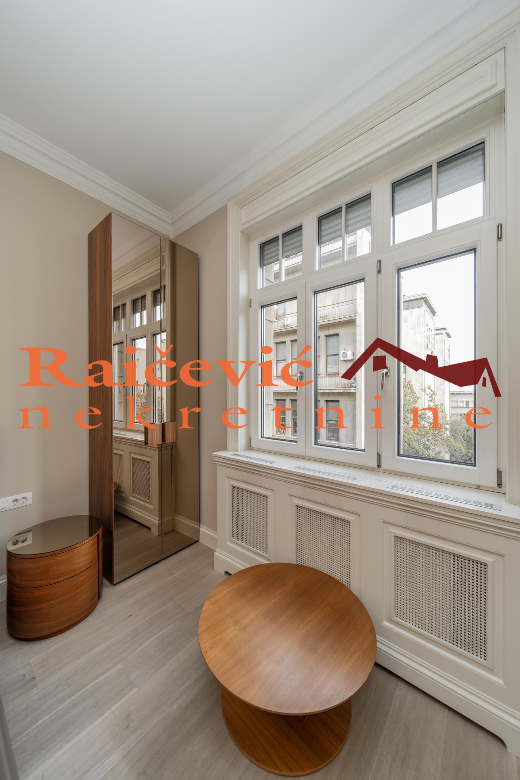 Stari grad, Brace Jugovica, 3.0, 150 m2 sa lodjama, III od IV sprata, cg, podno grejanje, lift, interfon, klima, uknjizen na 132 m2, odlicna predratna zgrada. Na prestiznoj lokaciji, u reprezentativnoj i izuzetno lepoj i masivnoj salonskoj zgradi sa liftom, iznajmljujemo luksuzan, raskosan stan trosobne strukture. Originalno je stan imao jos jednu sobu koja je trenutno pripojena dnevnom boravku. Dvostrano je orijentisan i svetao. U stan su ugradjeni najsavremeniji i najkvalitetniji materijali i oprema. Raspored stana je odlican, iz sirokog ulaznog antrea ulazi se u dnevni boravak koji je otvorenim planom povezan sa kuhinjom. Spavaci blok sa dve spavace sobe i dva kupatila hodnikom je odvojen od ostalog dela stana. Cena 1 800 evra + depozit. Agencijska provizija koju placa ZAKUPAC iznosi: 50 % od prve mesecne zakupnine za zakup u trajanju od 1 do 12 meseci. 75 % od prve mesecne zakupnine za zakup u trajanju od 13 do 59 meseci. 100 % od prve mesecne zakupnine za zakup u trajanju od 60 meseci (5 godina) i vise. prostorije Raicevic nekretnine 063/380184