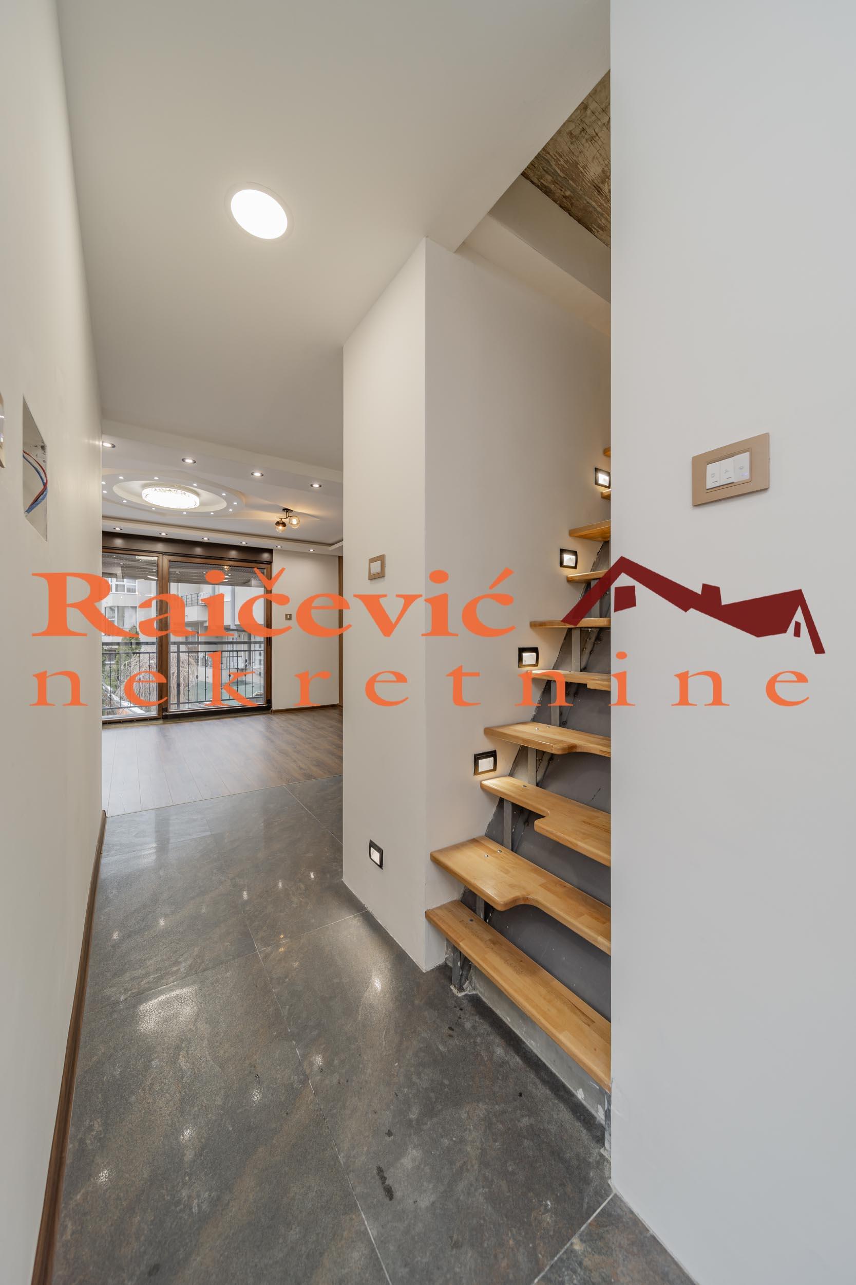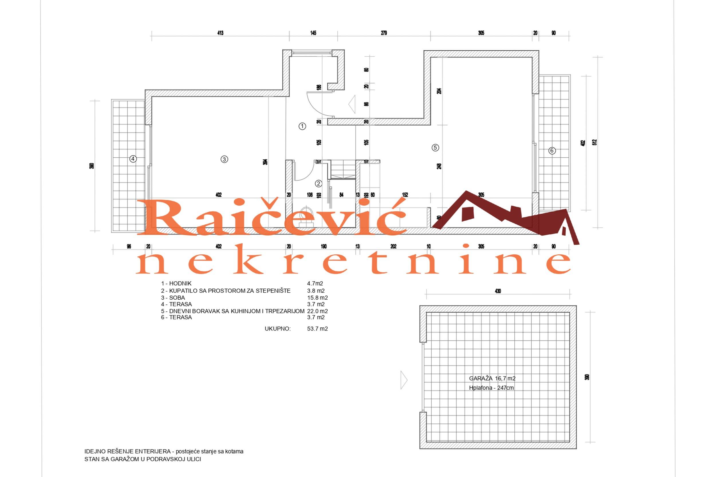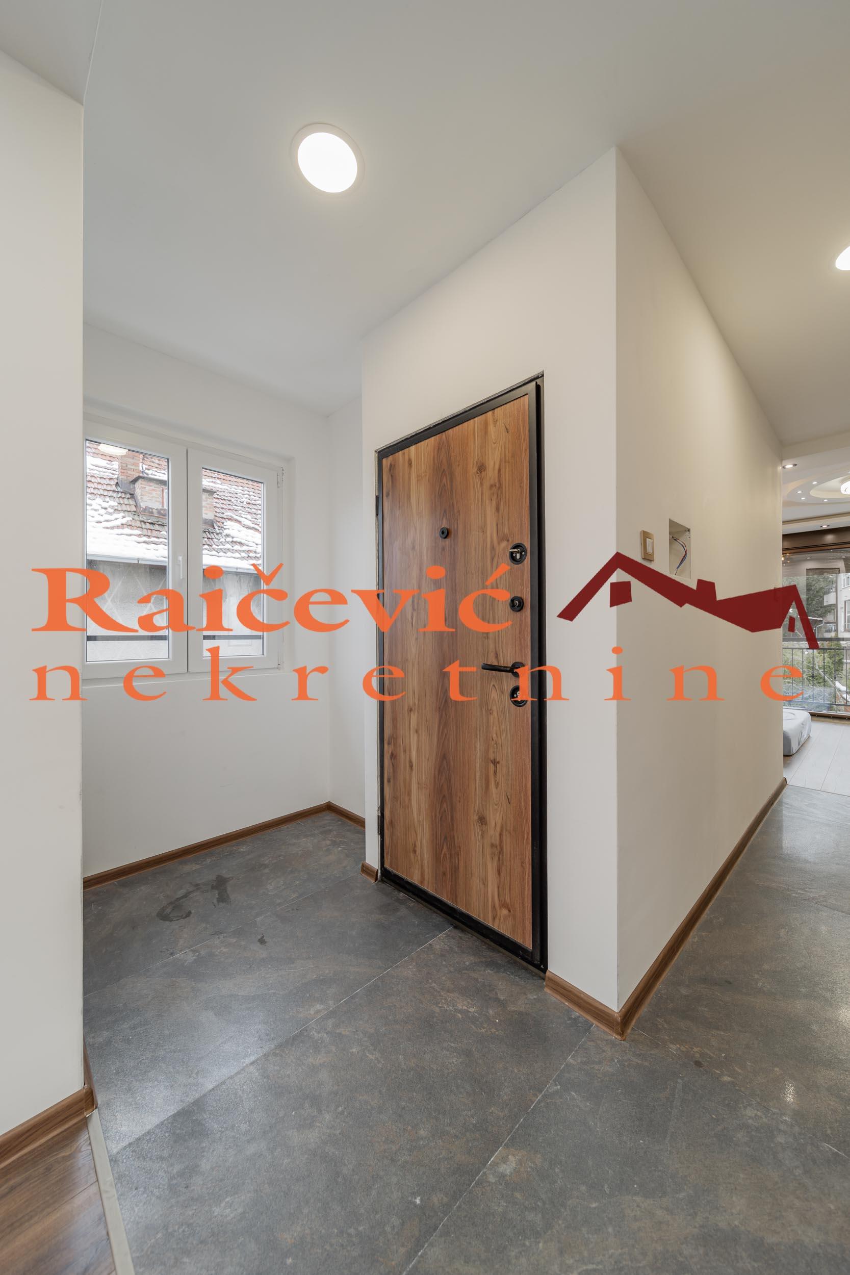 SVI NASI KUPCI DOBIJAJU VREDAN POKLON! Vozdovac, Podravska, 2.0, 54 m2 sa 2 terase, I od I sprata (iznad je tavanski prostor), eg (klima), tel, bez lifta, useljiv po dogovoru, uknjizen kao idealni deo, garaza i parking mesto ispred garaze u ceni stana, starogradnja. Luksuzno renoviran stan - postavljen nov tarket - parket, renovirano kupatilo, renovirana kuhinja, nova pvc stolarija (od poda do plafona) sa imitacijom drveta. Trostrano je orijentisan. Prostorije: ulazni hodnik, dnevna soba sa kuhinjom i trpezarijom, spavaca soba, kupatilo i 2 terase. Mogucnost koriscenja tavanskog prostora iznad ovog stana, a koji je povezan sa stanom stepenistem. Garaza i parking mesto ispred garaze su u ceni stana. Cena 170 000 evra. Kupite ovu nekretninu preko agencije Raicevic nekretnine i POKLANJAMO VAM idejno resenje dizajna enterijera! Pozovite nas za vise informacija. Agencijska provizija koju placa KUPAC iznosi 2 % od dogovorene kupoprodajne cene. Raicevic nekretnine 065/452-77-77