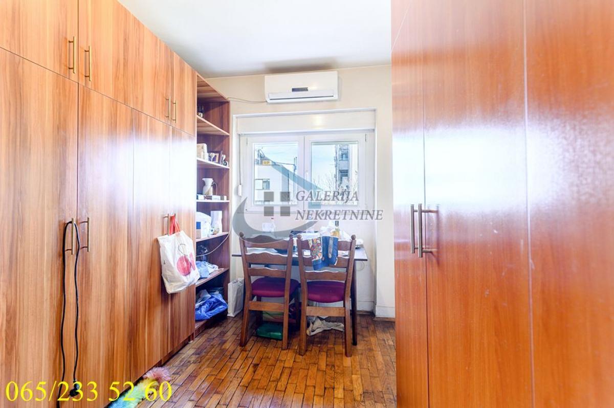 1.0, 38m2 plus lođa, 4/5, TA, lift, interfon, internet, klima, ktv, adaptibilan u dvosoban Nepokretnost se nalazi u središnjem delu ulice Strahinjića Bana. Obzirom da je ovo epicentralna lokacija, infrastrukturno je kompletno razvijena a lepo i mirno okruženje u strogom centru grada je prava retkost. Ovaj kraj je uvek bio jedan od najtraženijih na tržištu nekretnina. U prilici smo da Vam ponudimo jednosobni stan koji se nalazi na četvrtom spratu petospratnice sa liftom iz 50-ih godina prošlog veka. Zgrada je u dobrom stanju i odlično održavana. Stan je komforan, funkcionalnog rasporedoa prostorija i maksimalno iskorišćene kvadrature. Dvostrano je orijentisan, severoistok-jugozapad, i vrlo svetao. Svaka prostorija ima prozor, odnosno prirodnu ventilaciiju. Kompletnim renoviranjem, osim spoljašnje PVC stolarija, iz stana bi se izvukao maksimum. Lako je adaptibilan u dvosobni stan, pretvaranjem kuhinje u spavaću sobu, ostave u garderober, a kuhinja bi mogla da se dobije skraćivanjem kupatila. Grejanje je na struju (TA). Od prostorija: hodnik, kuhinja, ostava, soba, kupatilo, lođa. Stan je uknjižen na 38m2. Po navodima vlasnika stana, mereno sa lođom stan ima oko 42m2. Agent prodaje: Isak Marčetić 064/167 53 81