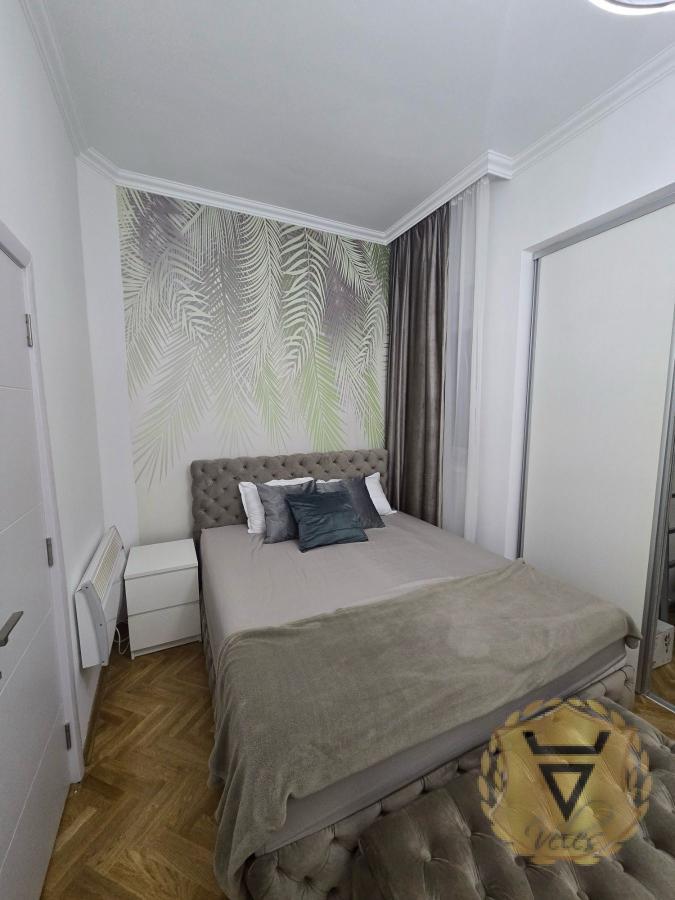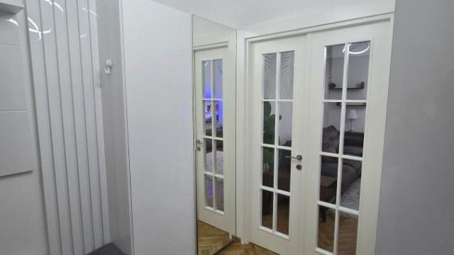 U neposrednoj blizini taṣ̌majdanskog parka, u blizini bazena, gimnazije, fakulteta, pošte i brojnih kafica, u dobro održvanoj predratnoj zgradi izdaje se renoviran dvosoban salonski stan sa velikom i svetlom dnevnom sobom, odvojenom kuhinjom, spavaćom sobom sa plakarom od medijapana po meri, radnim kutkom i walk in plakarom, predsobljem sa plakarima po meri od medijapana i kupatilom sa tuš kabinom. Stanu pripada i ostava u prizemlju. Lux nameštaj, nova stolarija, lakiran parket, tek okrečen stan, komarnici, sigurnosna vrata. Grejanje na elektične bosch radijatore.Klima. TV 60" sa pozadinskim svetlom, kompletno opremljena kuhinja, usisivač, pegla, led rasveta.... Agencija za nekretnine Veles broj u registru posrednika 1149 Agencijska provizija 50%* Način plaćanja: kirija+depozit+ag.provizija